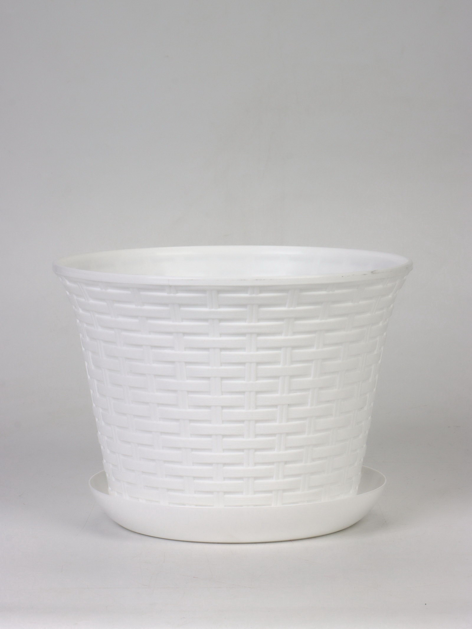 Кашпо для цветов "Ротанг", 8 л, d=27.5 см, h=20.5 см, пластиковое, с поддоном, белое, 27.5 см., Виолет, Россия