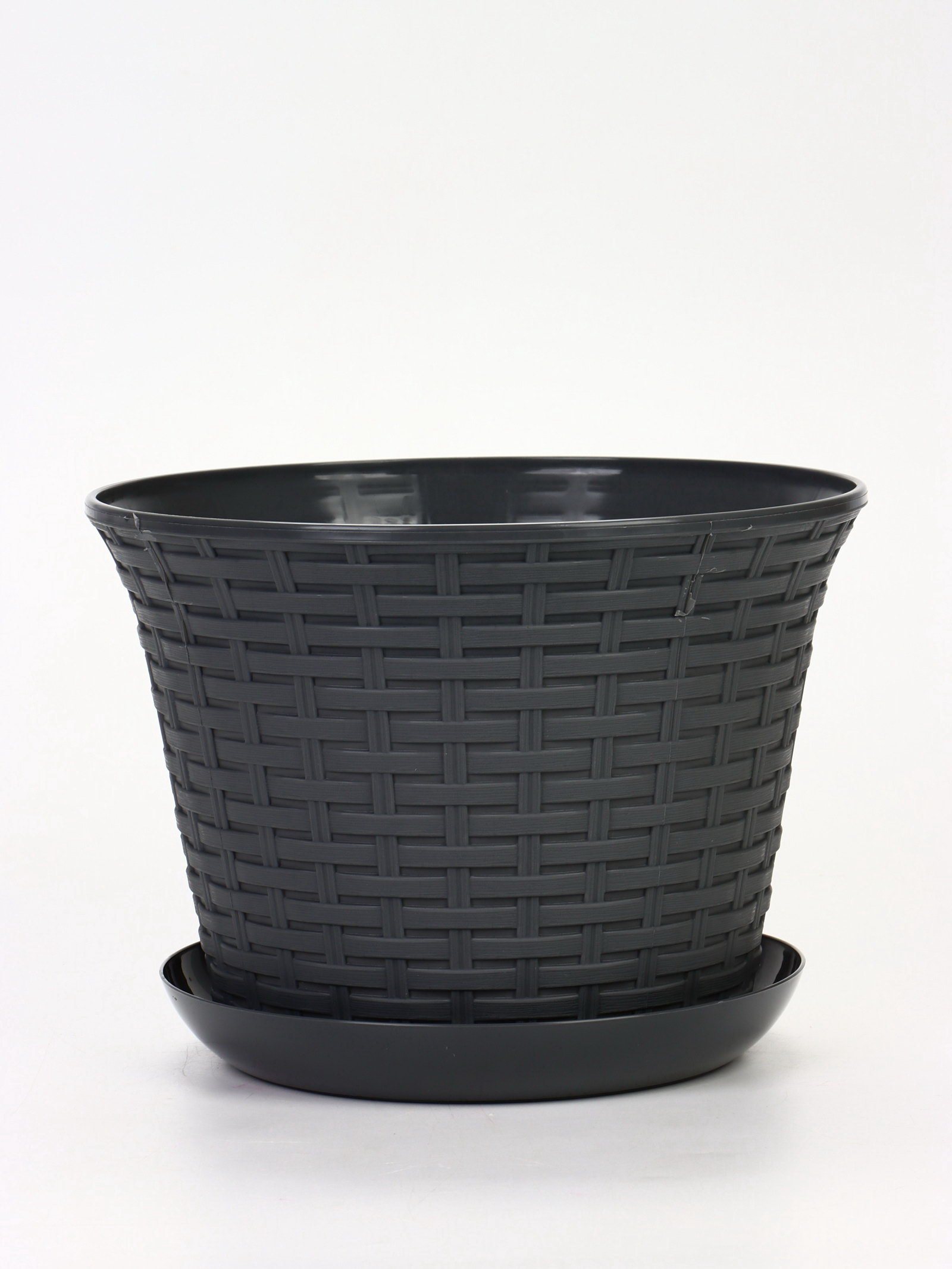 Кашпо для цветов "Ротанг", 8 л, d=27.5 см, h=20.5 см, пластиковое, с поддоном, серое, 27.5 см., Виолет, Россия