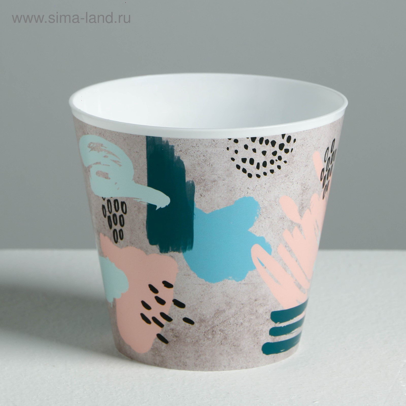 Кашпо для цветов "Яркие мазки", 800 мл, d=12 см, h=11 см, пластиковое, 12 см., Дарите Счастье, Россия