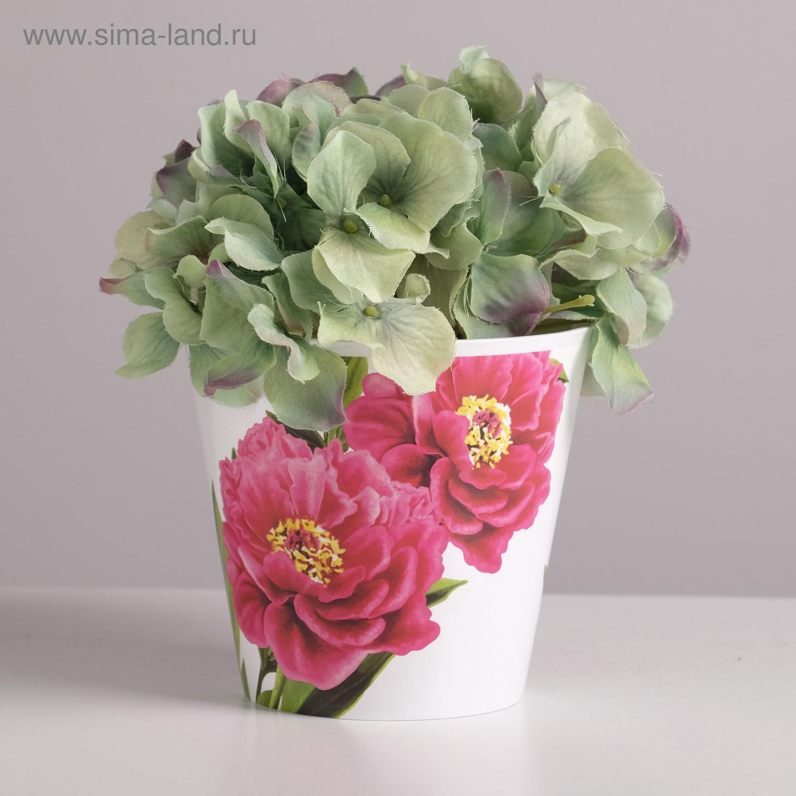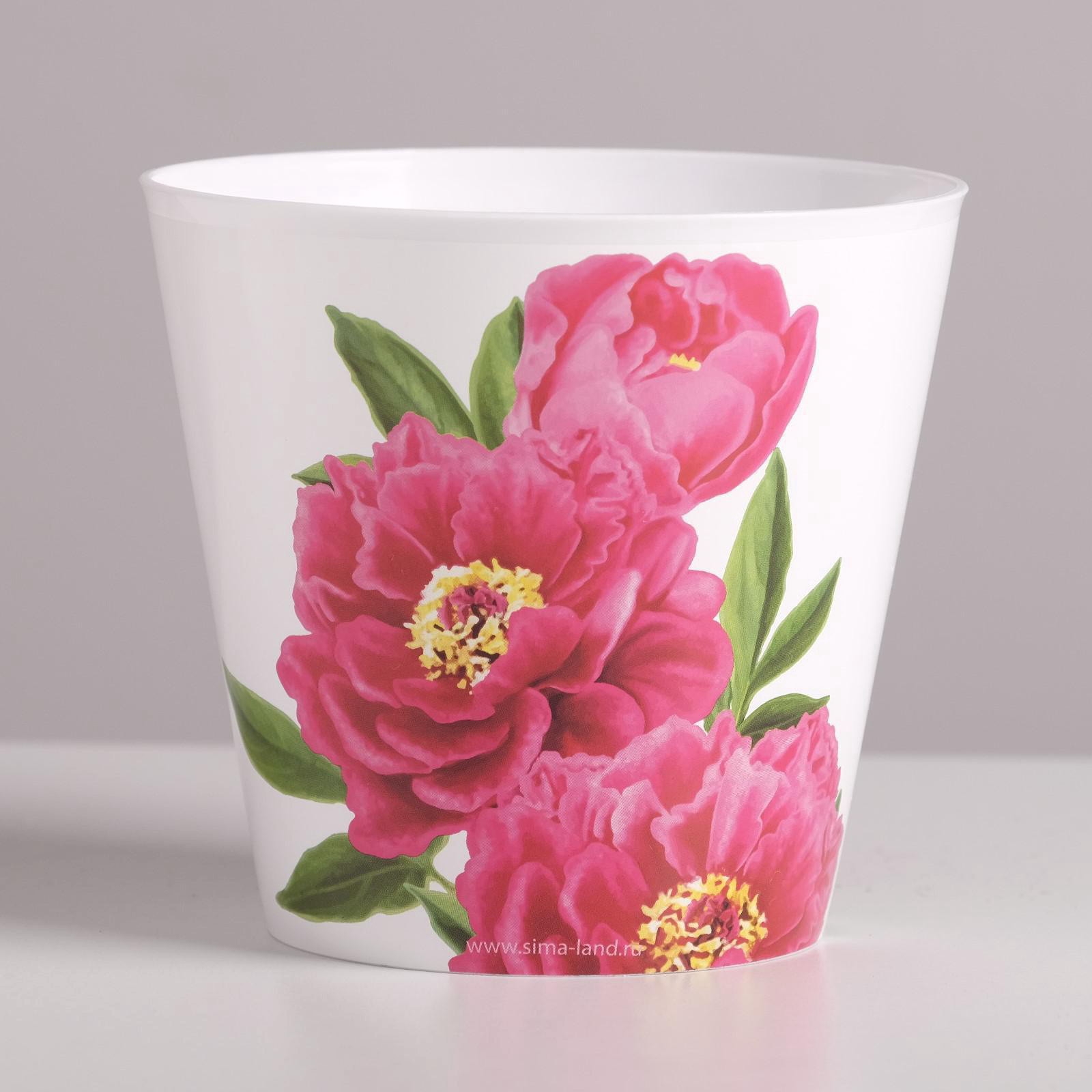 Кашпо для цветов "Пионы", 800 мл, d=12 см, h=11 см, пластиковое, 12х12х11 см., Дарите Счастье, Россия