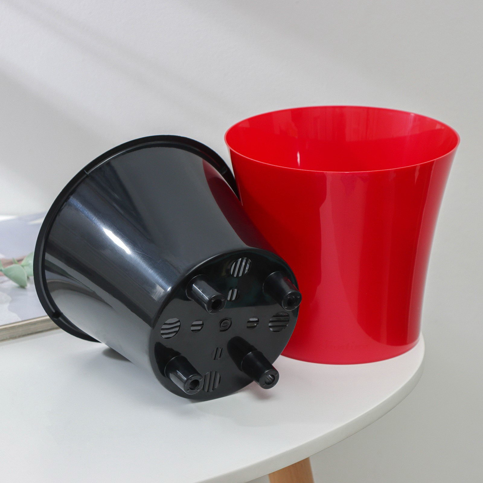 Кашпо для цветов со вставкой "Арте", 2 л, цвет красно-чёрный, 17х17х15 см., Santino, Россия