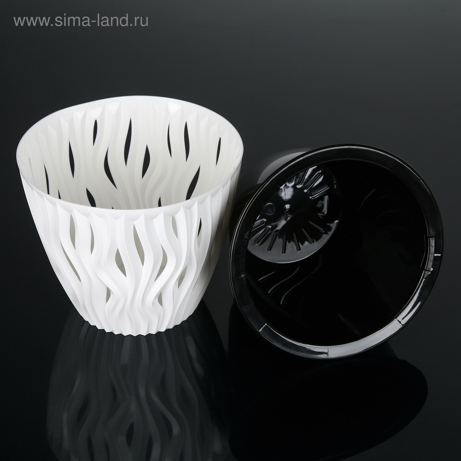 Кашпо для цветов со вставкой "Вдохновение", 3 л, бело-чёрное, 3000 мл., Россия