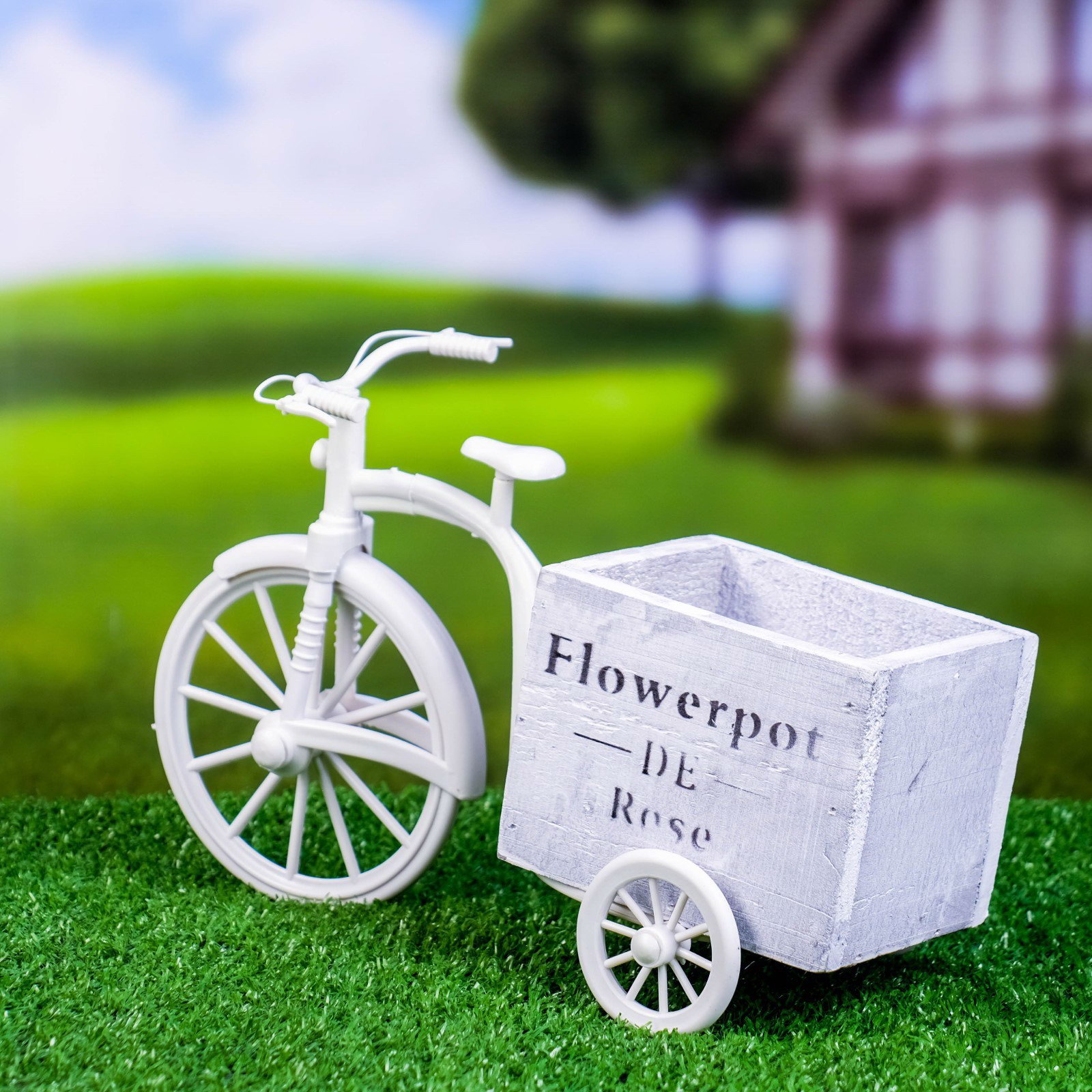 Декоративное кашпо для цветов "Велосипед Flowerpot de Rose", 26x12x18 см, дерево, пластик, белое, 12x26x18 см., TAKE IT EASY, Китай
