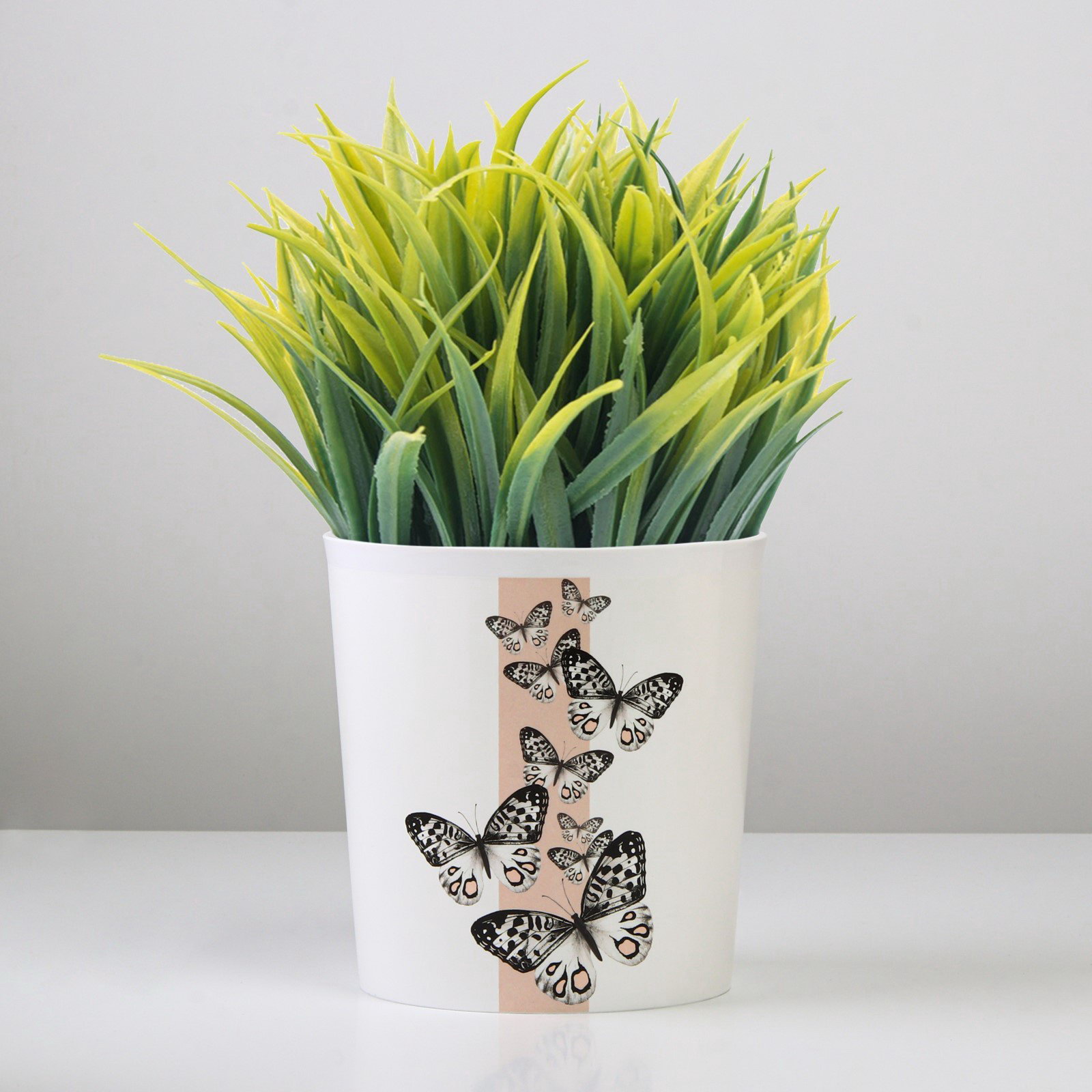 Кашпо для цветов "Бабочки", 1.6 л, d=14 см, h=14 см, пластиковое, 14 см., Дарите Счастье, Россия
