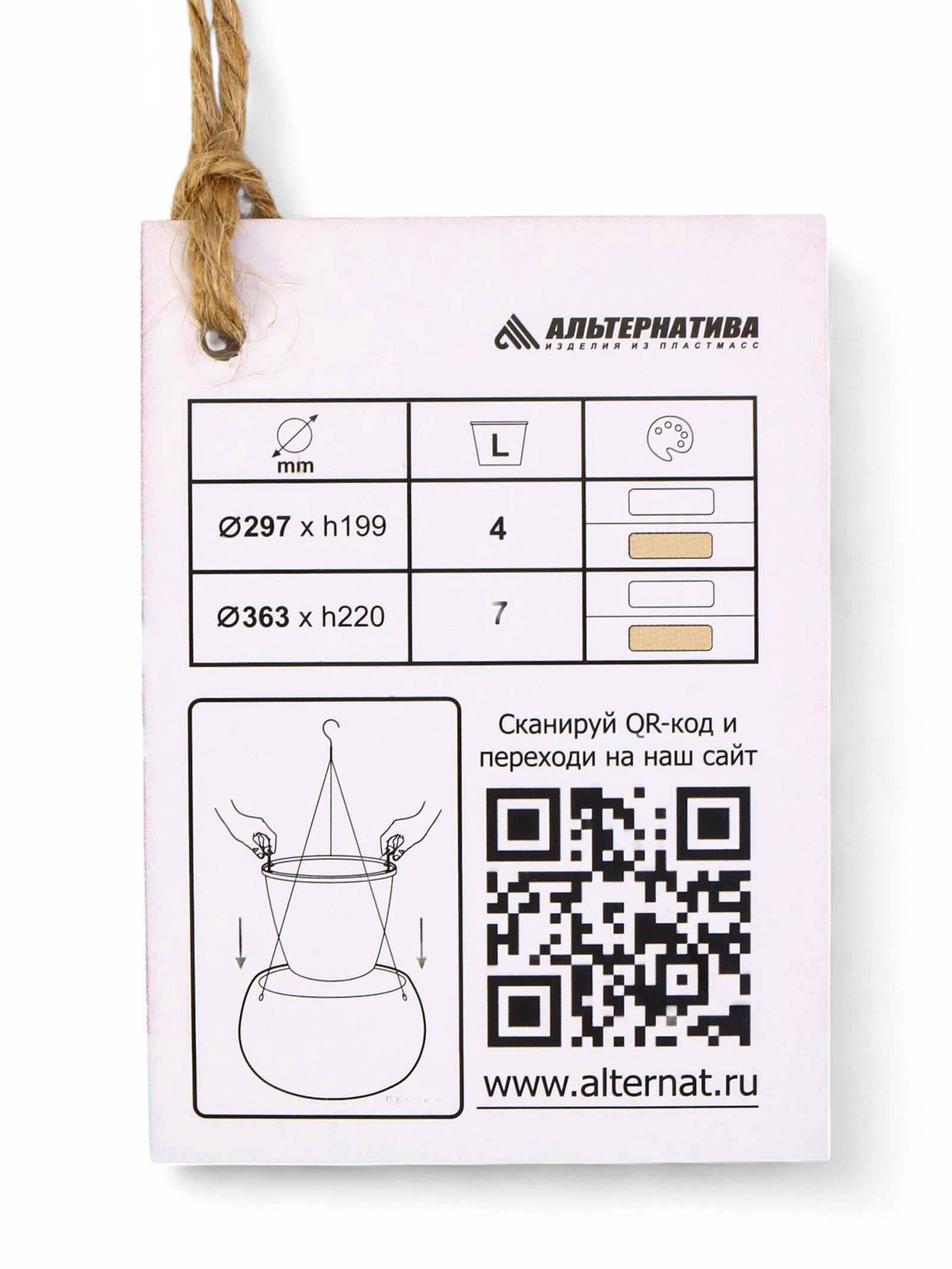 Высота, см: 22, 78 Вид установки: Настольное, Подвесное Размер упаковки: 36 x 21 x 36 см. Температурное ограничение: Нет tnved: 3926909700 Можно оставлять зимой на улице: Нет Цвет: Серый Форма фигуры: Полусфера Тип полива: Без системы полива Особенности: Со вставкой Подвесное кашпо объемом 7 литров (36x22 см) из прочного пластика с удобной вставкой. Стильная округлая форма и благородный графитовый цвет органично дополнят любой интерьер. Подходит для подвесного и настольного размещения. Преимущества