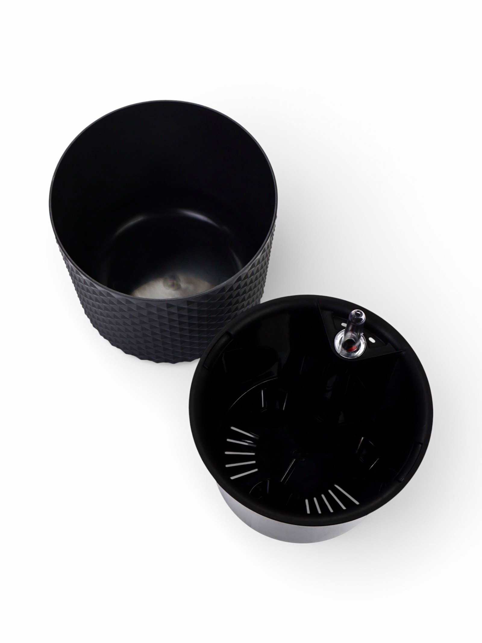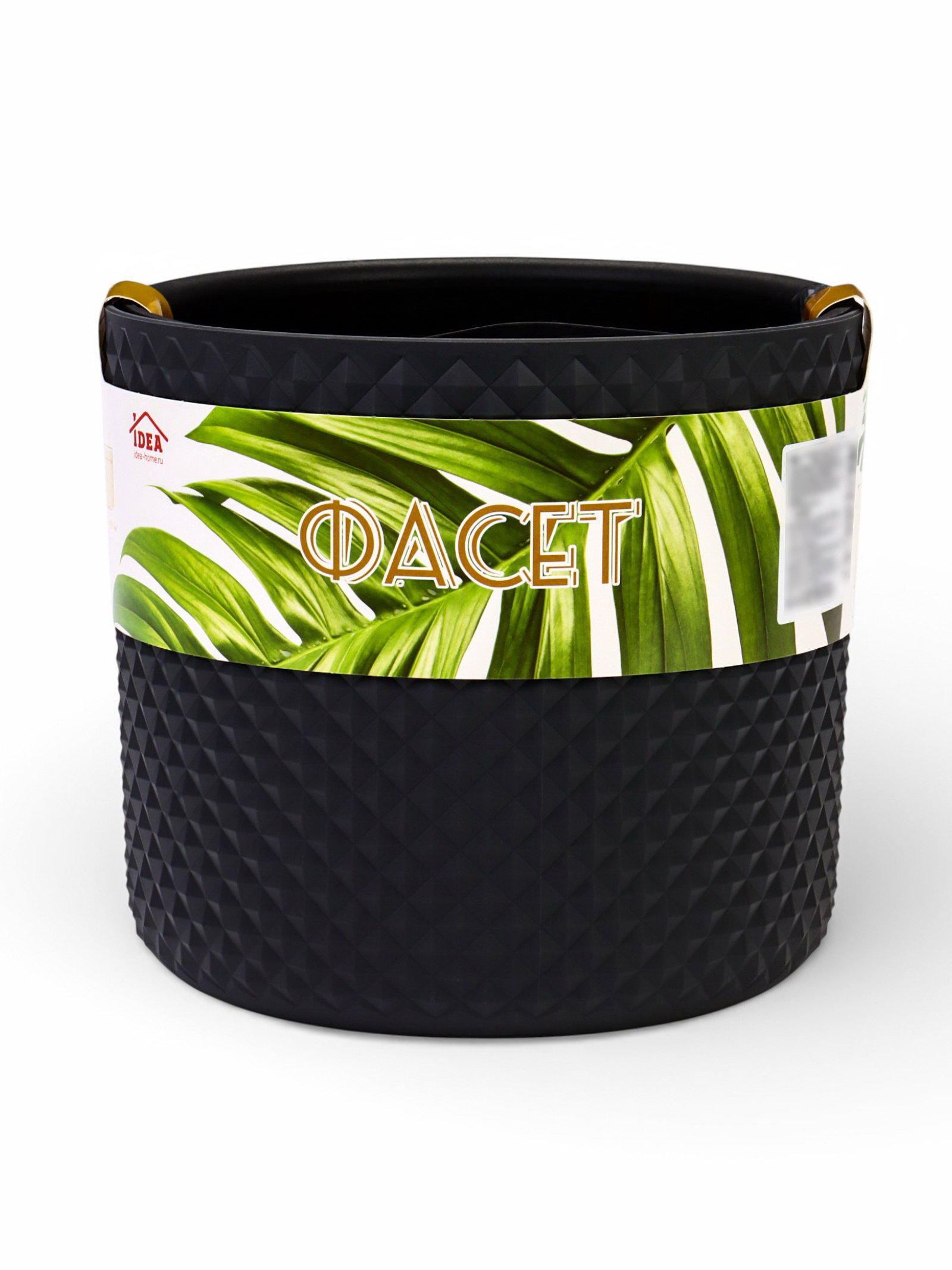 Кашпо для цветов "Фасет", 6.2 л, d=22 см, h=20 см, пластиковое, с автополивом, со вставкой, серое, 6200 мл., Россия