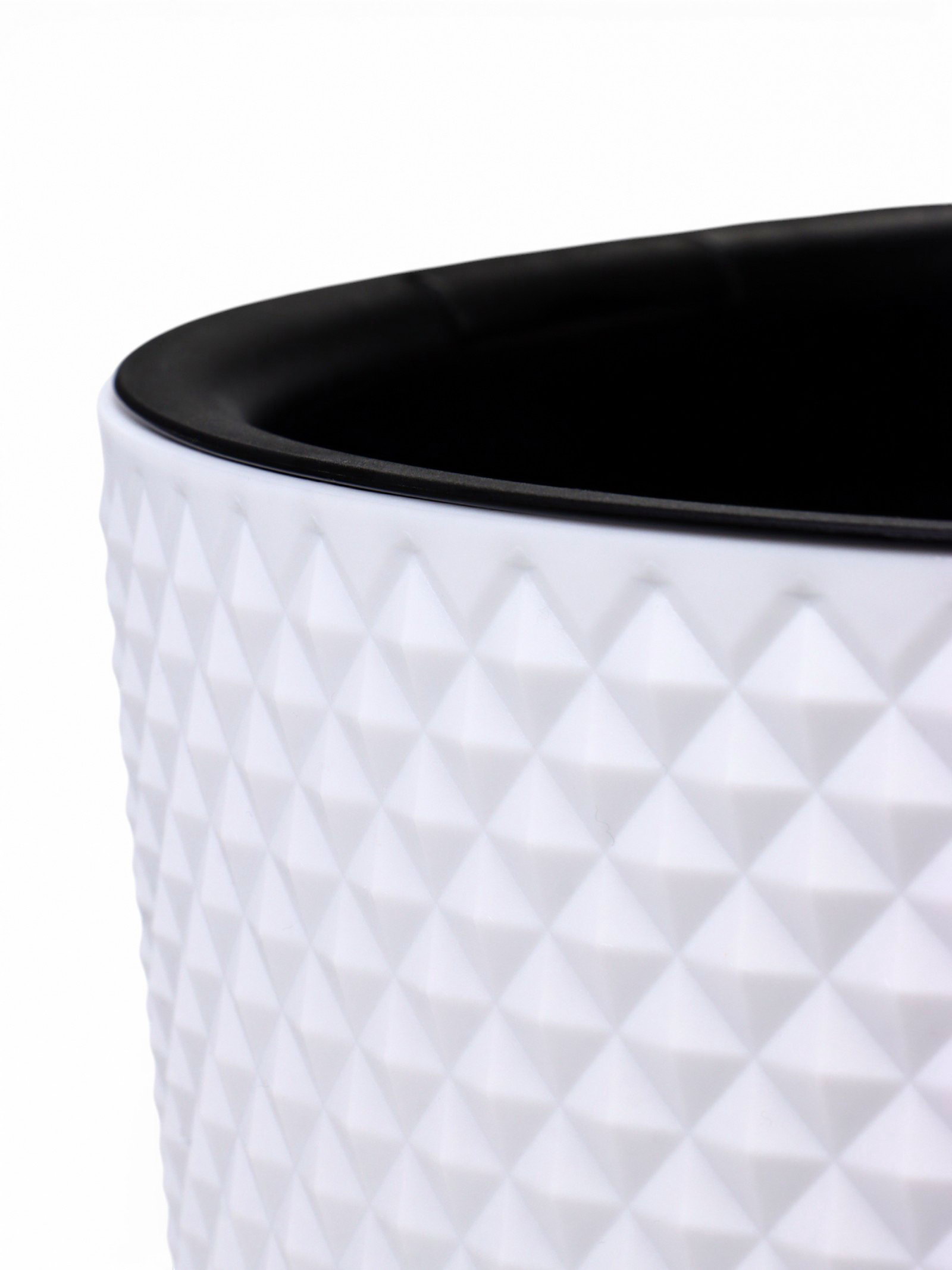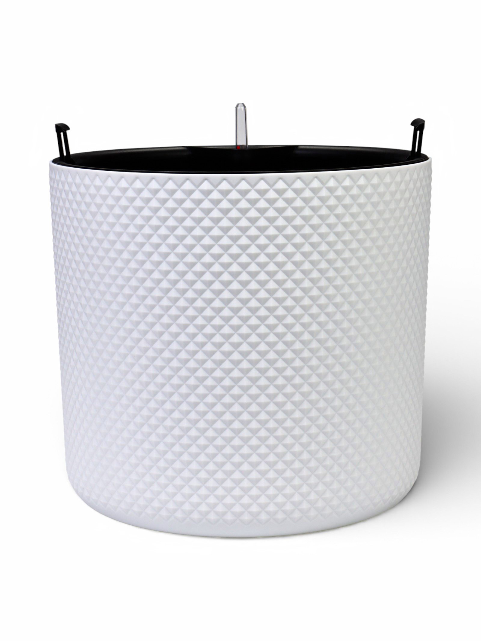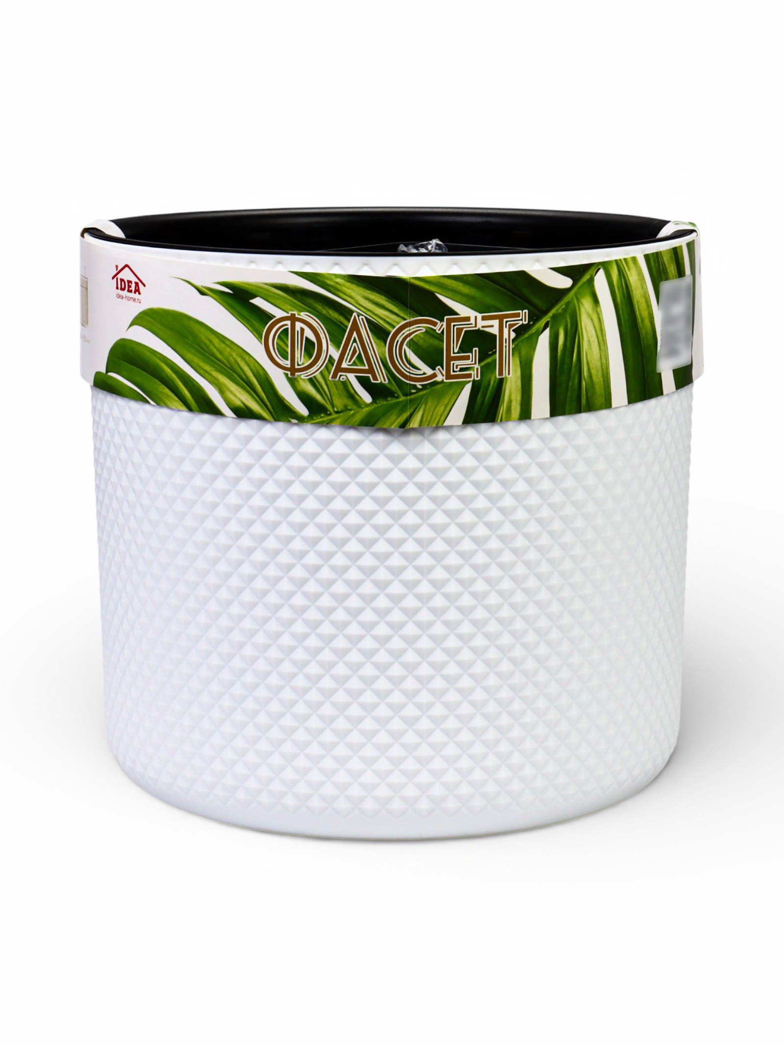 Кашпо для цветов "Фасет", 13.5 л, d=28 см, h=25.5 см, пластиковое, с автополивом, со вставкой, белое, 13500 мл., Россия
