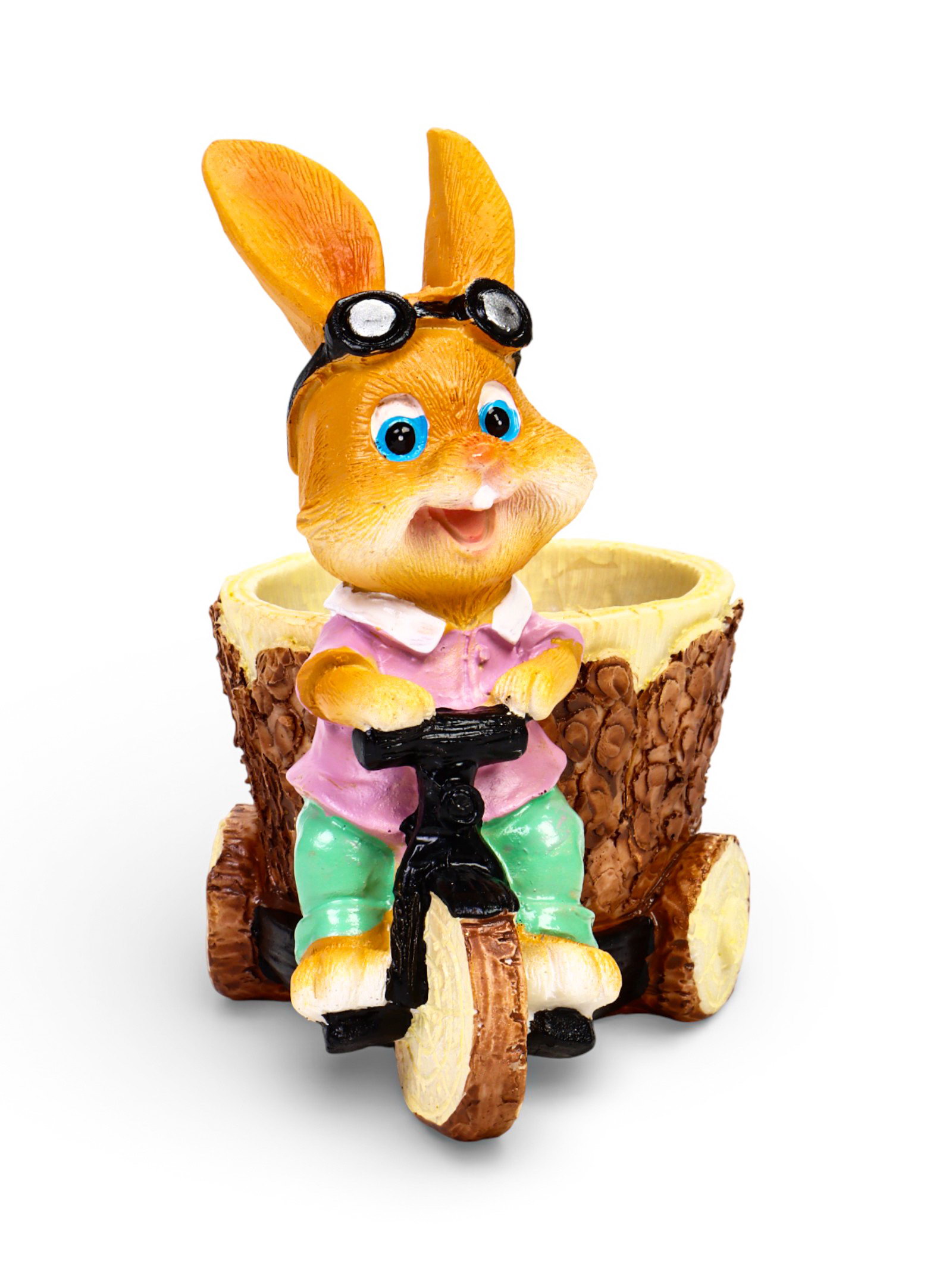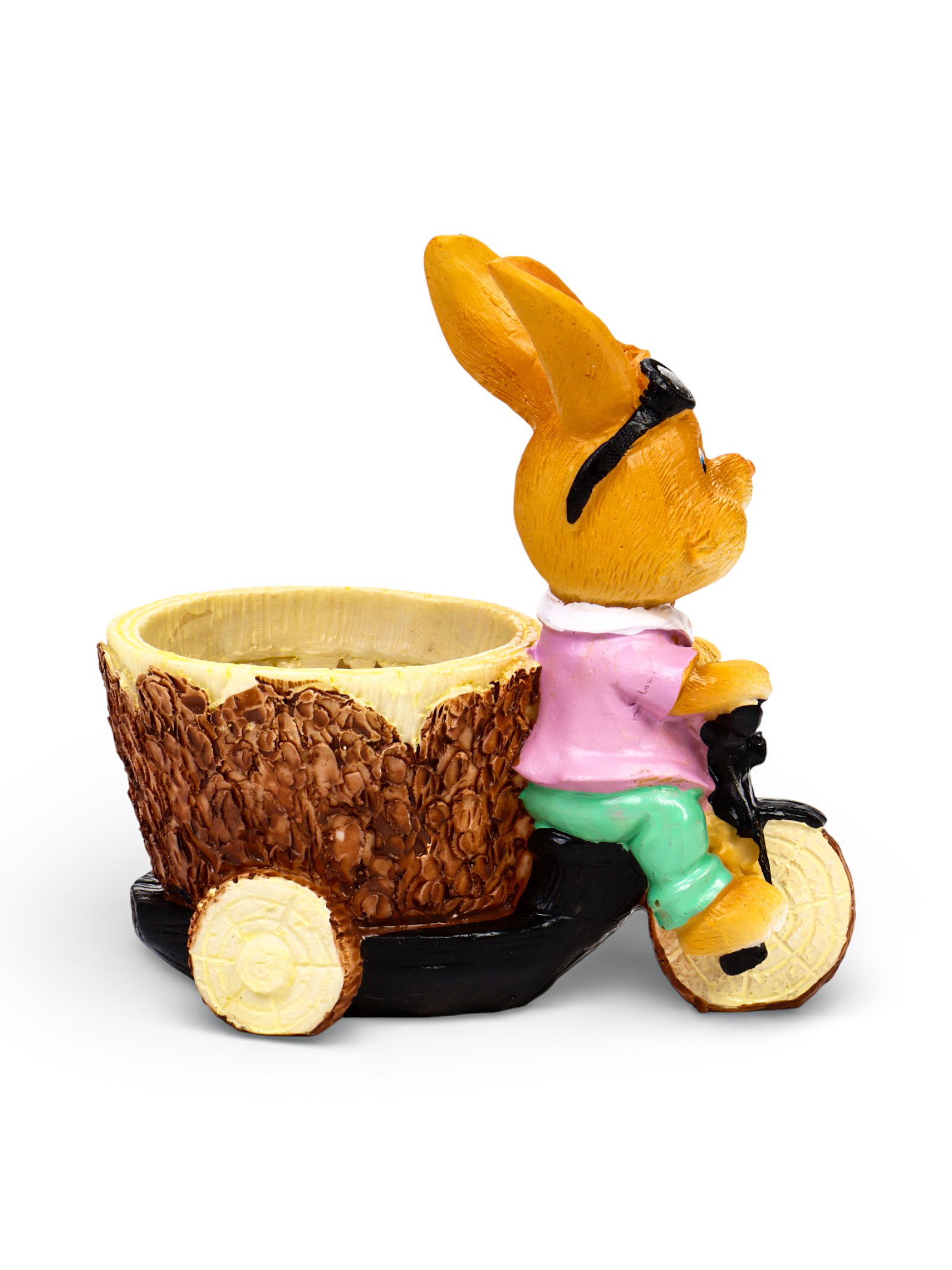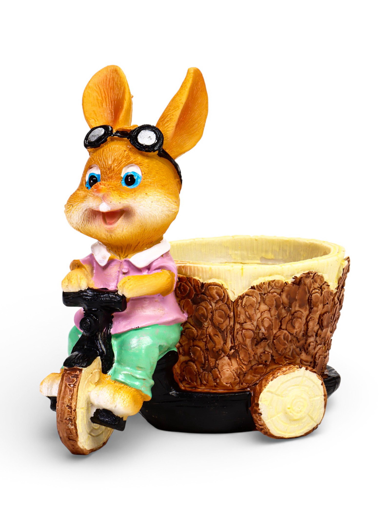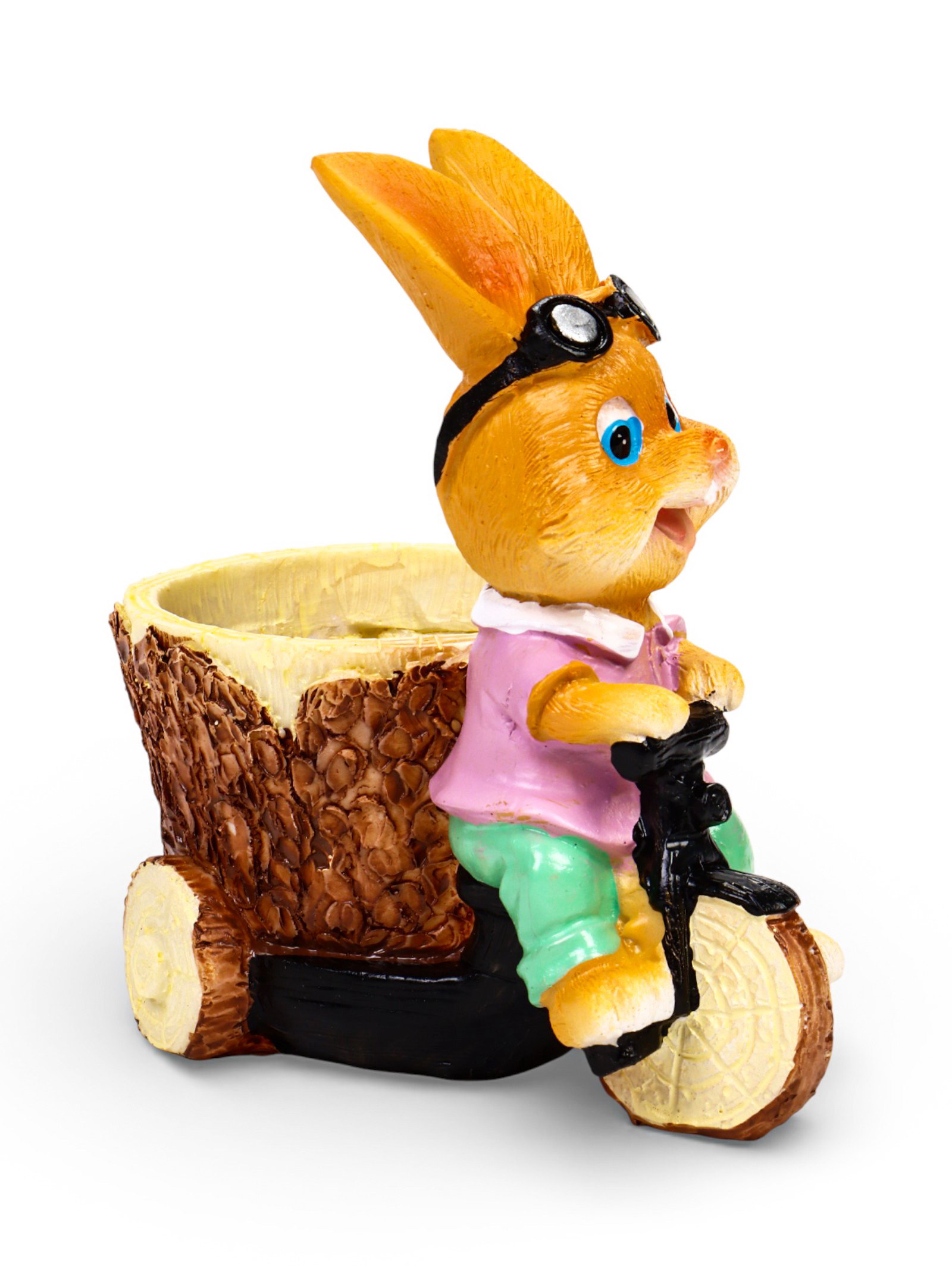 Декоративное кашпо для цветов "Зайка на велосипеде", 300 мл, 13x9x15 см, полистоун, 9x13x15 см., Greengo, Китай