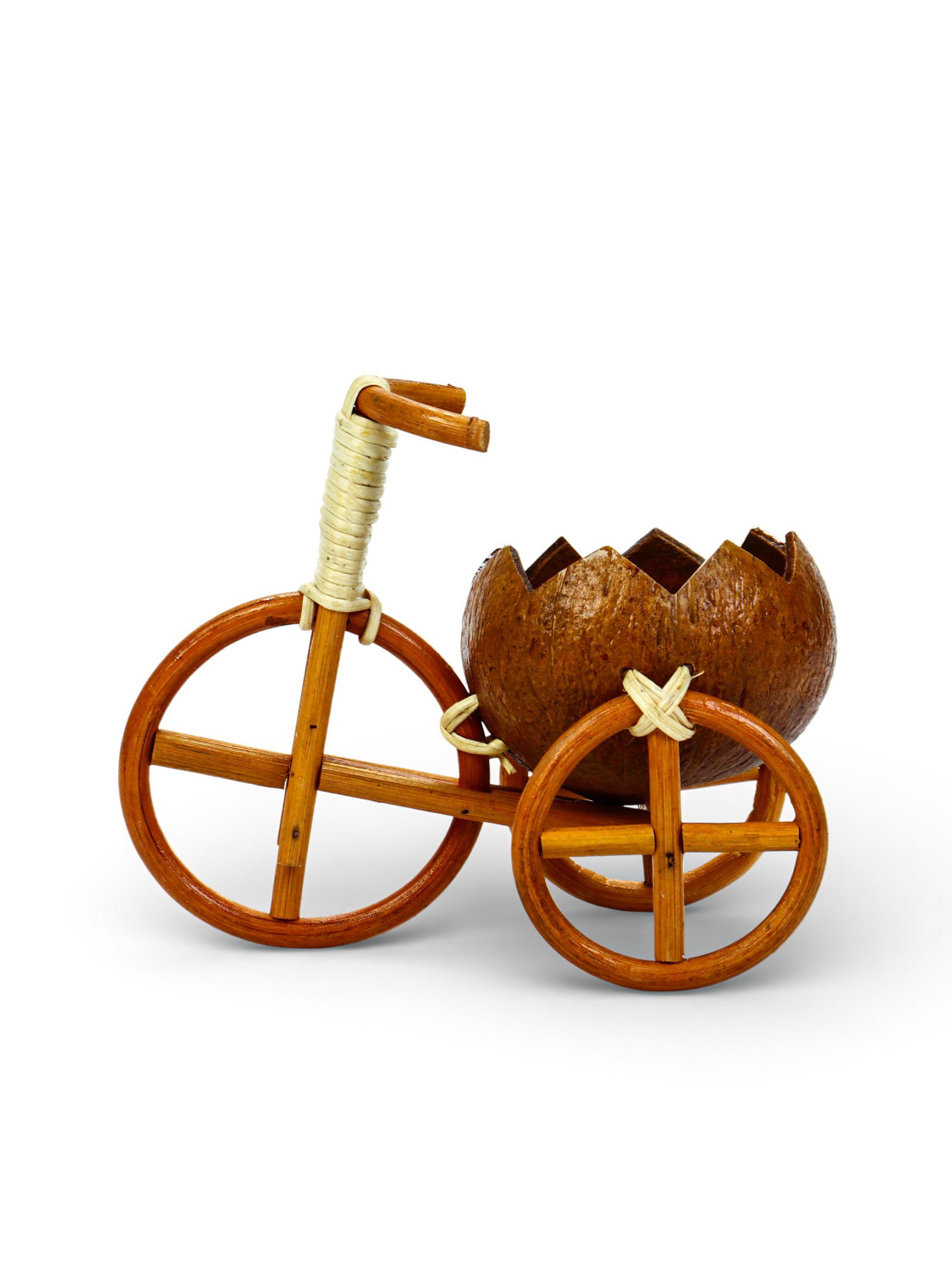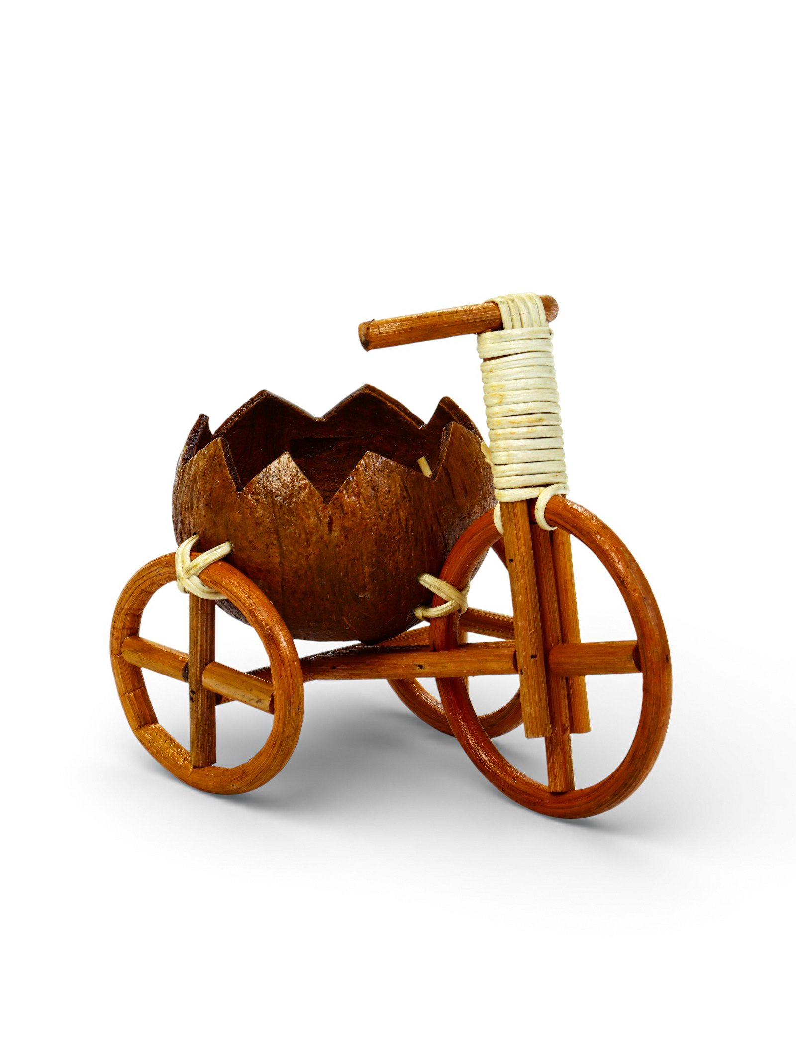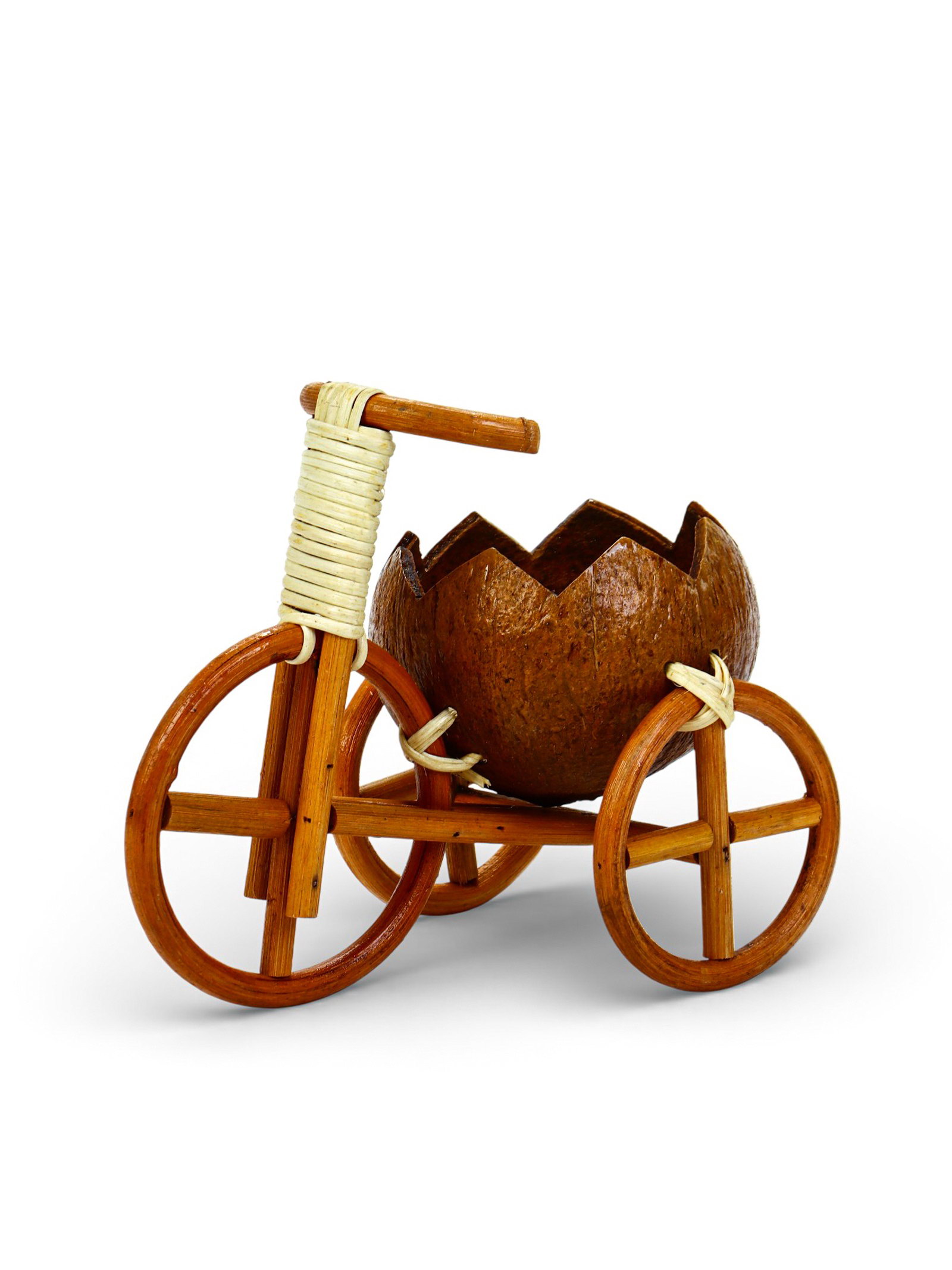 Декоративное кашпо - кокос "Велосипед резной", 20x12x17 см, деревянное, 11.5 см., Вьетнам