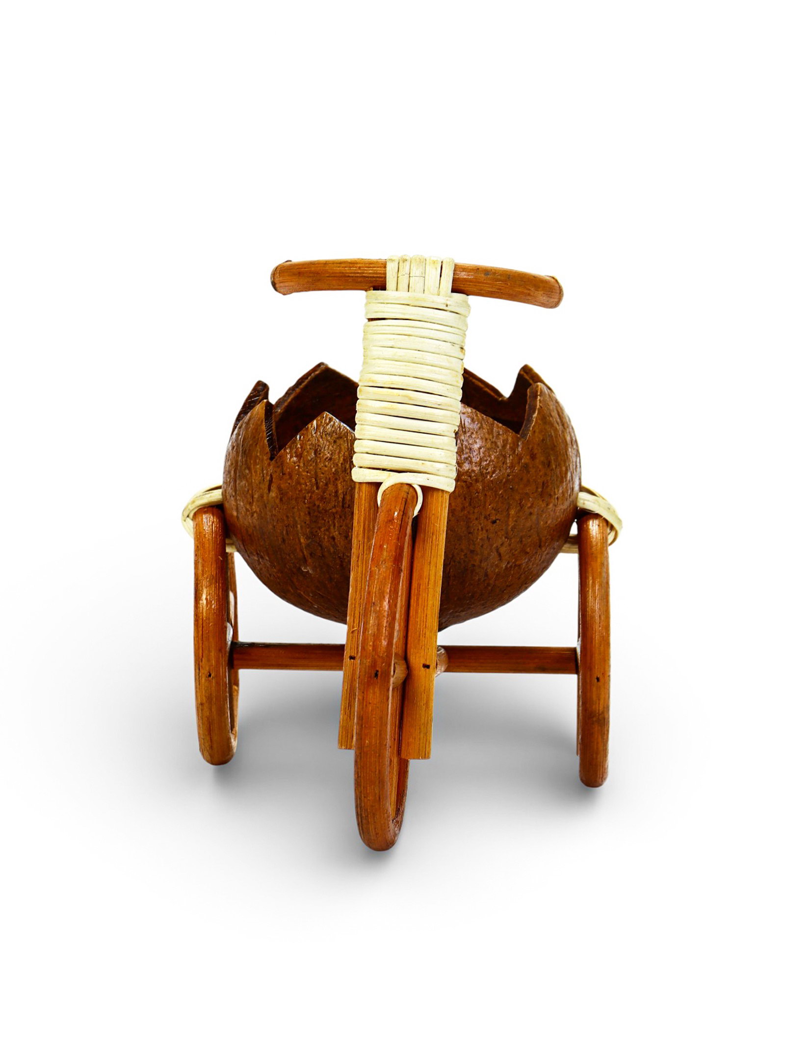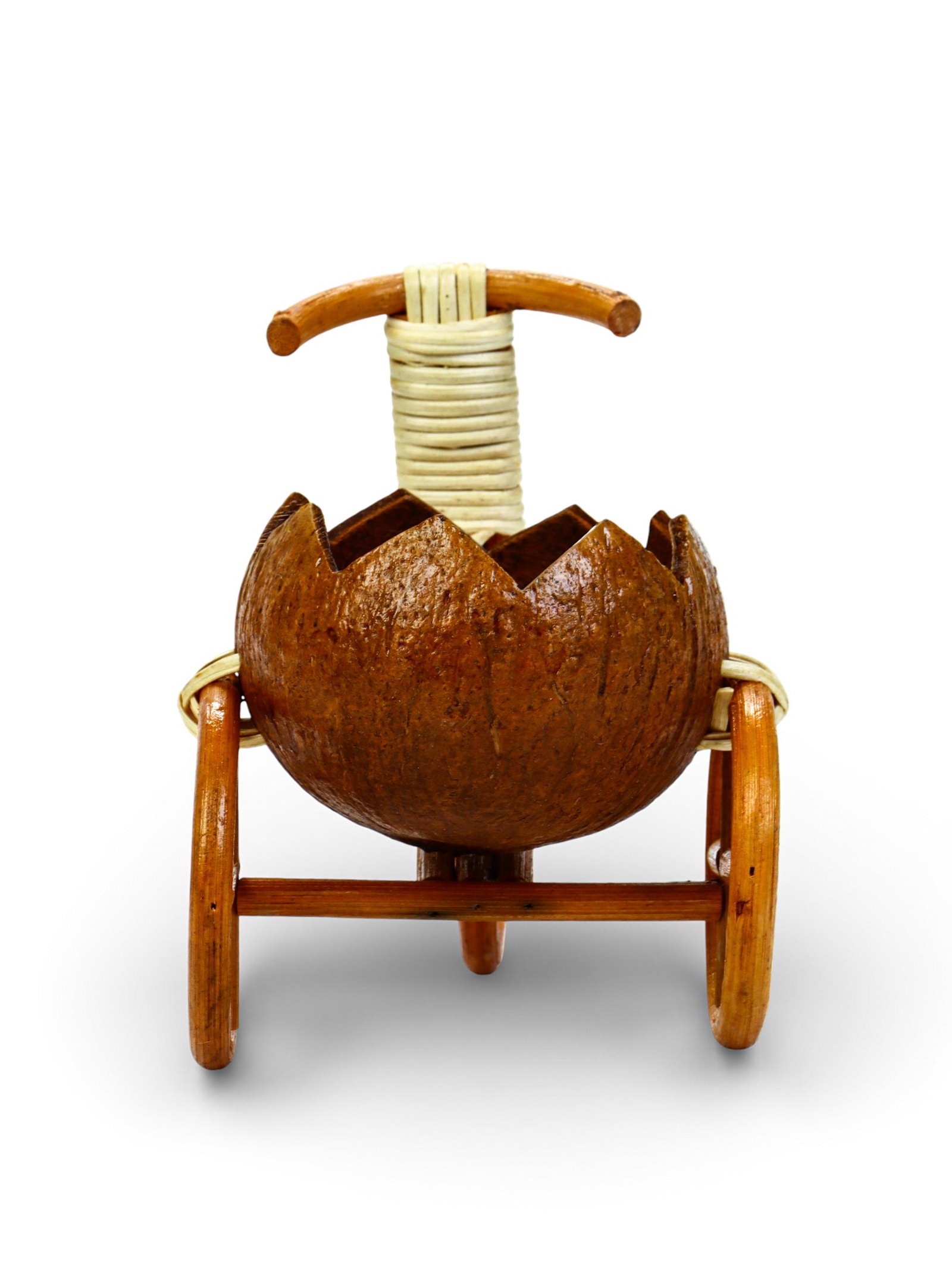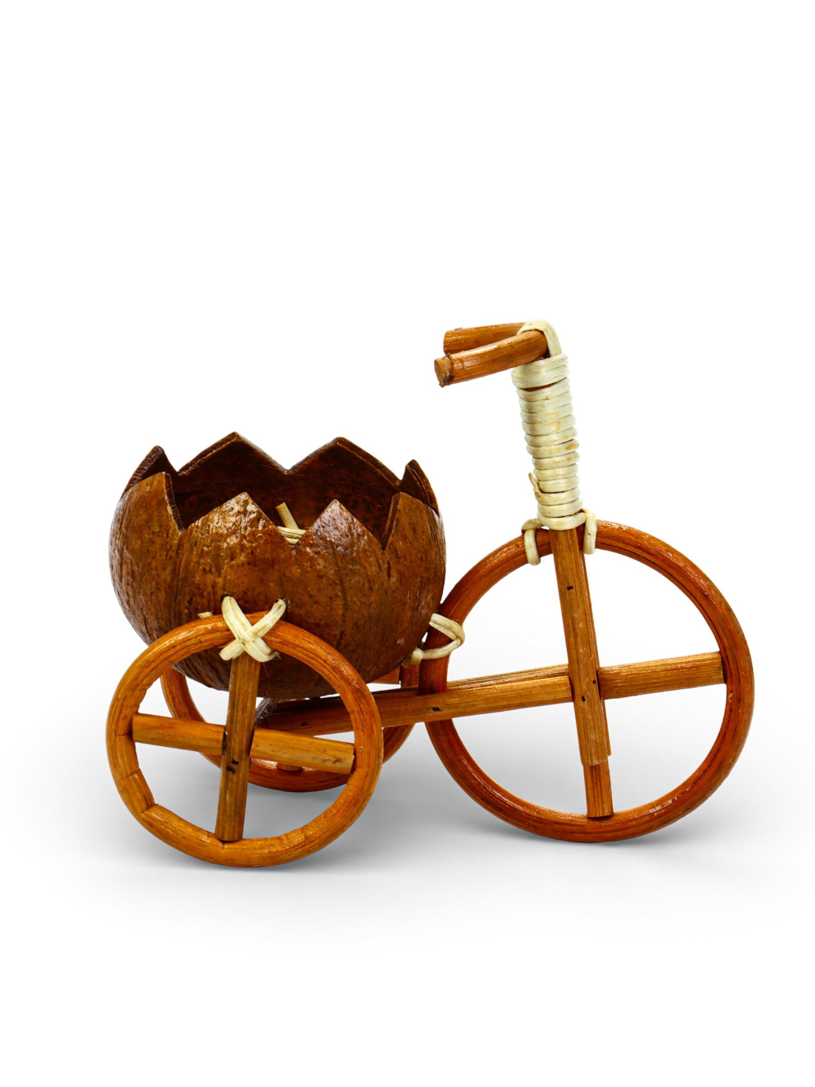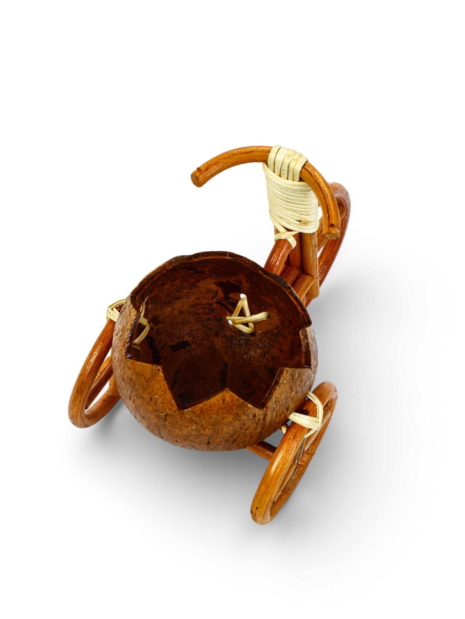 Декоративное кашпо - кокос "Велосипед резной", 20x12x17 см, деревянное, 11.5 см., Вьетнам