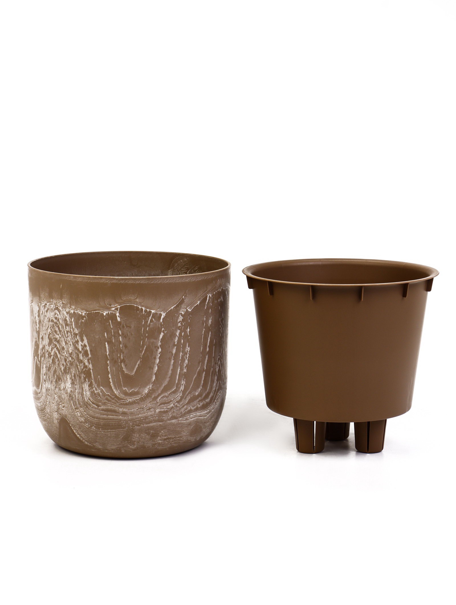 Кашпо для цветов "Микрит", 3.7 л, d=22 см, h=20 см, со вставкой, пластиковое, бежевое, 22 см., IDEA, Россия