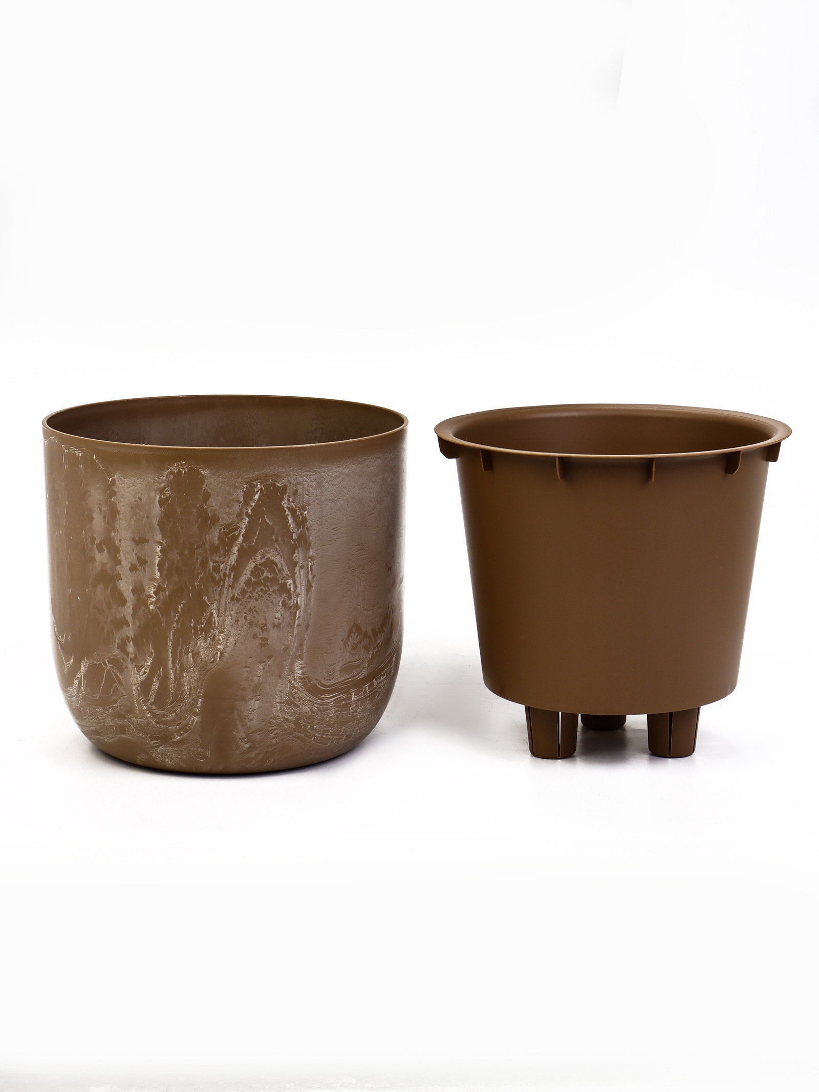 Кашпо для цветов "Микрит", 7.8 л, d=28 см, h=25.5 см, со вставкой, пластиковое, бежевое, 28 см., IDEA, Россия