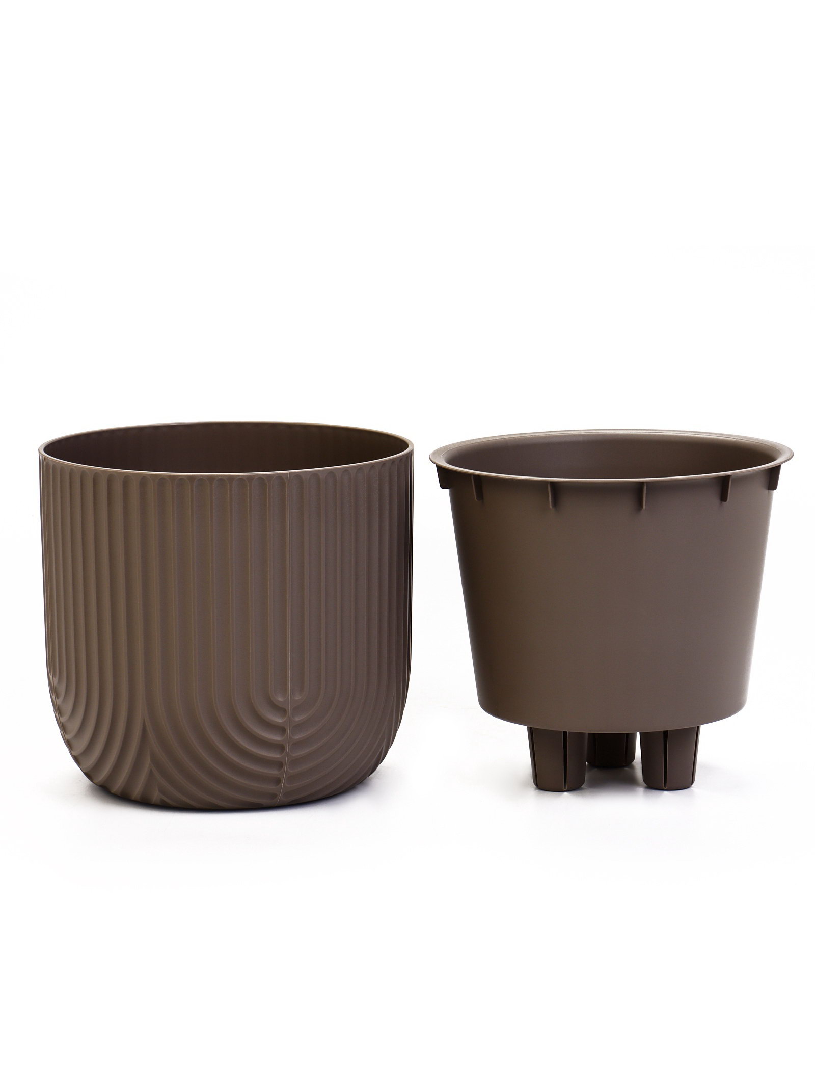 Размер упаковки: 22 x 20 x 22 см. tnved: 3926909700 Температурное ограничение: Нет Можно оставлять зимой на улице: Нет Форма фигуры: Цилиндр Высота, см: 20 Вид установки: Настольное Тип полива: Без системы полива Особенности: Со вставкой Цвет: Коричневый Поддон в комплекте: Нет Форма: Цилиндрическая Кашпо для цветов "Рамона", 3.7 л, серое вместительная ёмкость со вставкой для комнатных растений. Модель подойдёт для установки на широком подоконнике, устойчивой тумбе или напольной подставке. Конструкция обеспечивает корням доступ воздуха и защиту от избытка влаги.