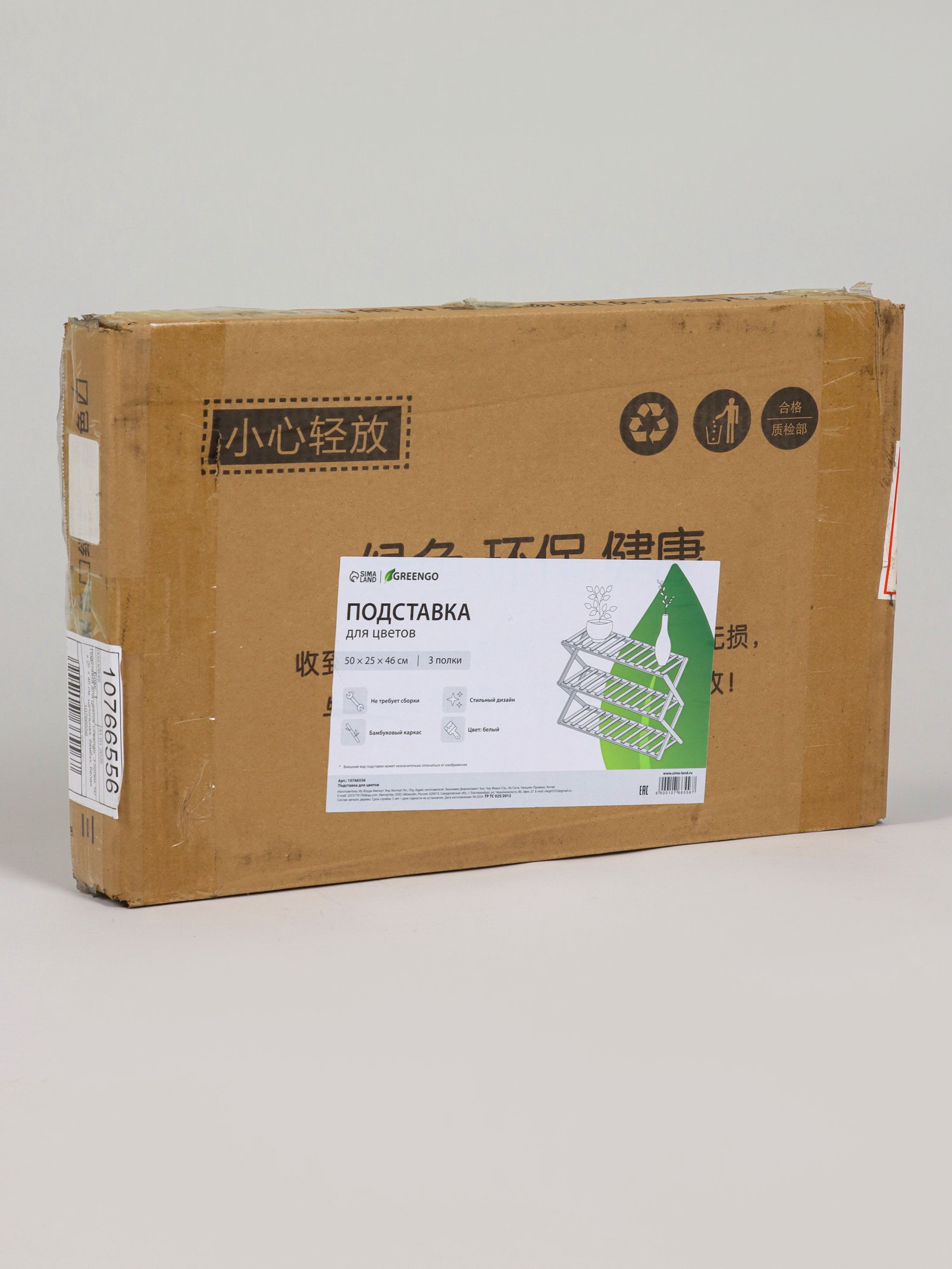 Подставка для цветов 3 полки, 50x25x46 см, напольная, бамбук, белая, 46х46х46 см., Greengo, КИТАЙ
