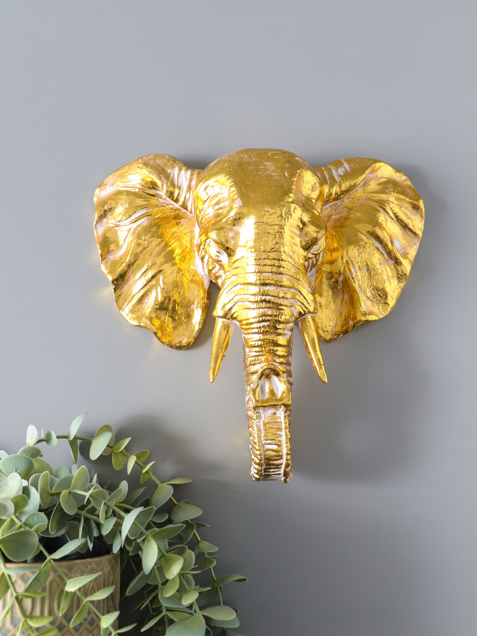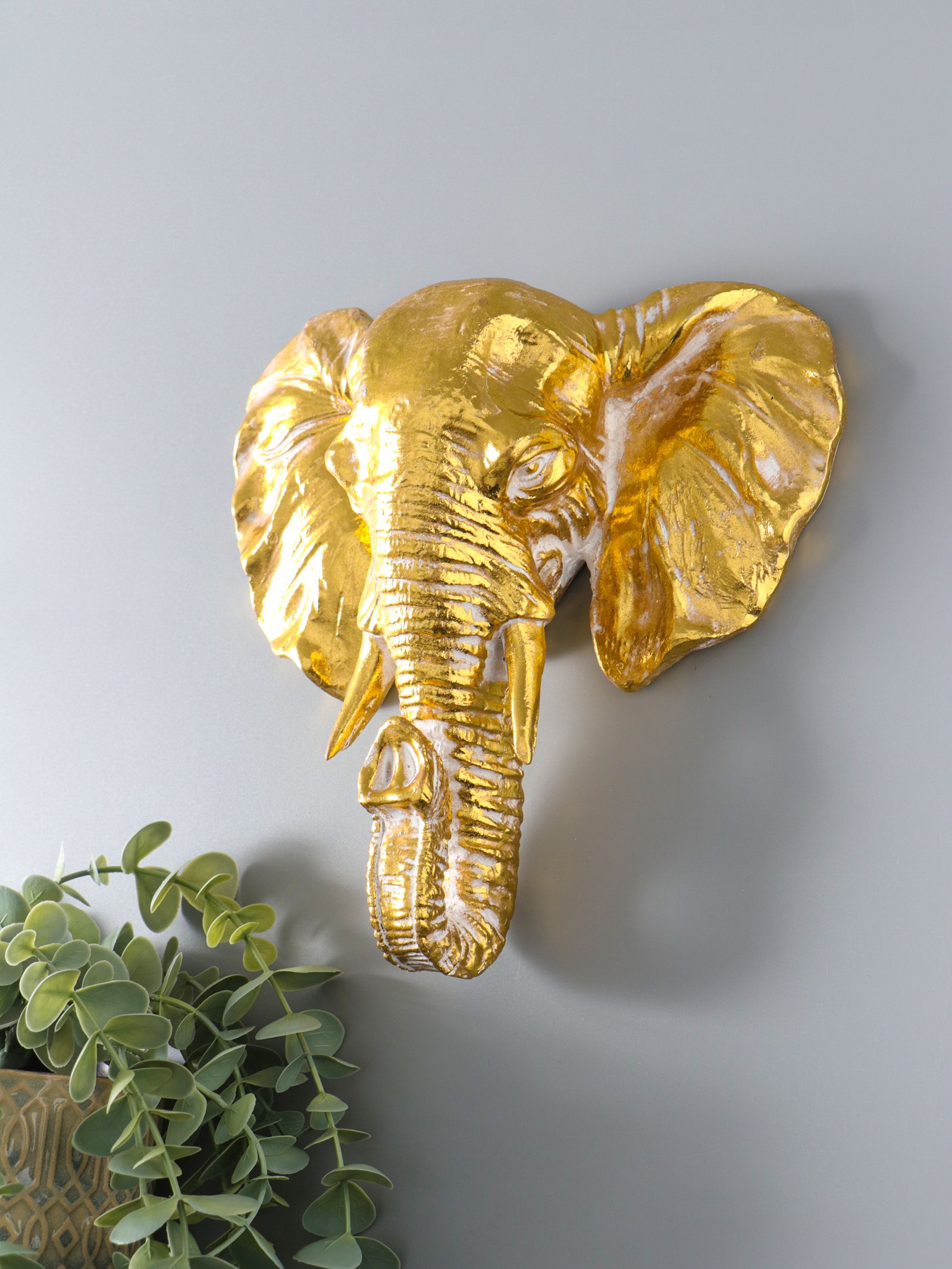 Панно интерьерное полистоун "Слон" золото с патиной 22х7.5х22 см, 7.5x22x22 см., Китай