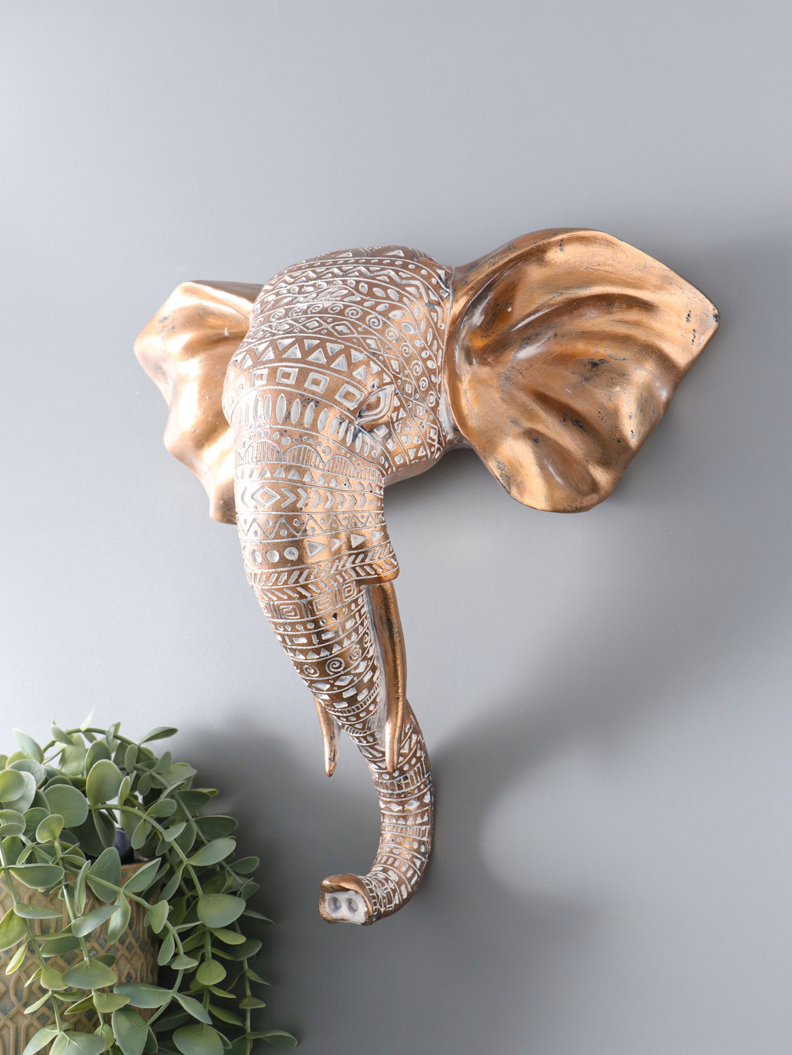 Панно интерьерное полистоун "Индийский слон с узорами" золото с патиной 30.5х13х29.5 см, 13x30.5x29.5 см., Китай