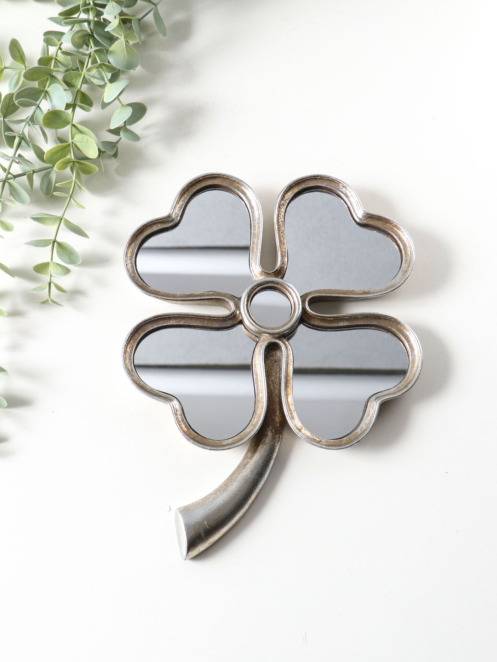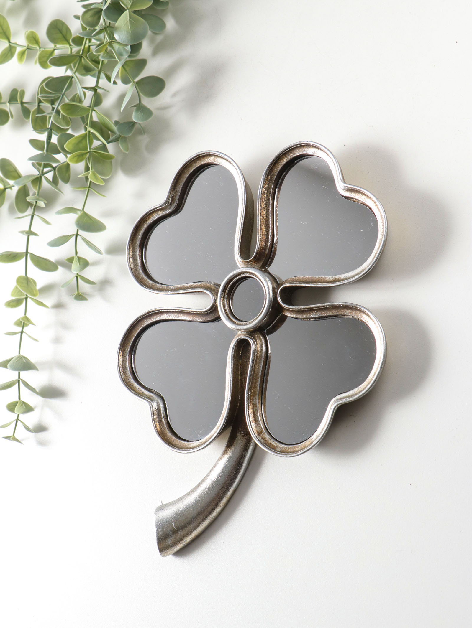 Панно настенное полистоун "Зеркальный клевер", под серебро, 19x2.5x26 см, 2.5x19x26 см., Китай