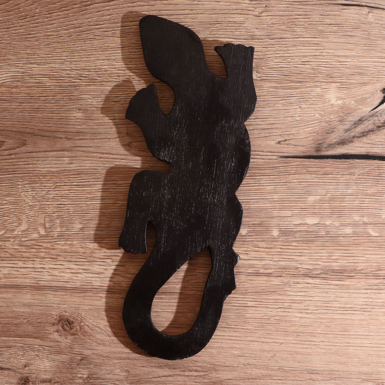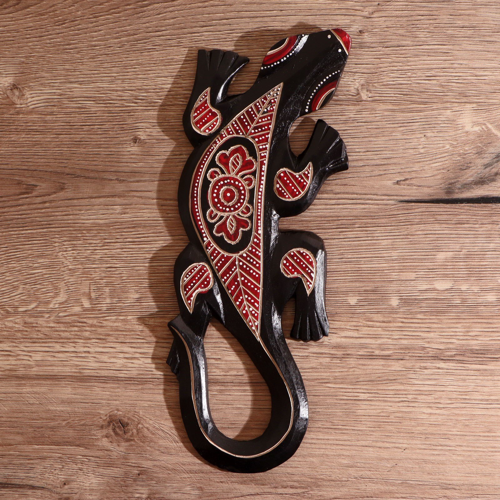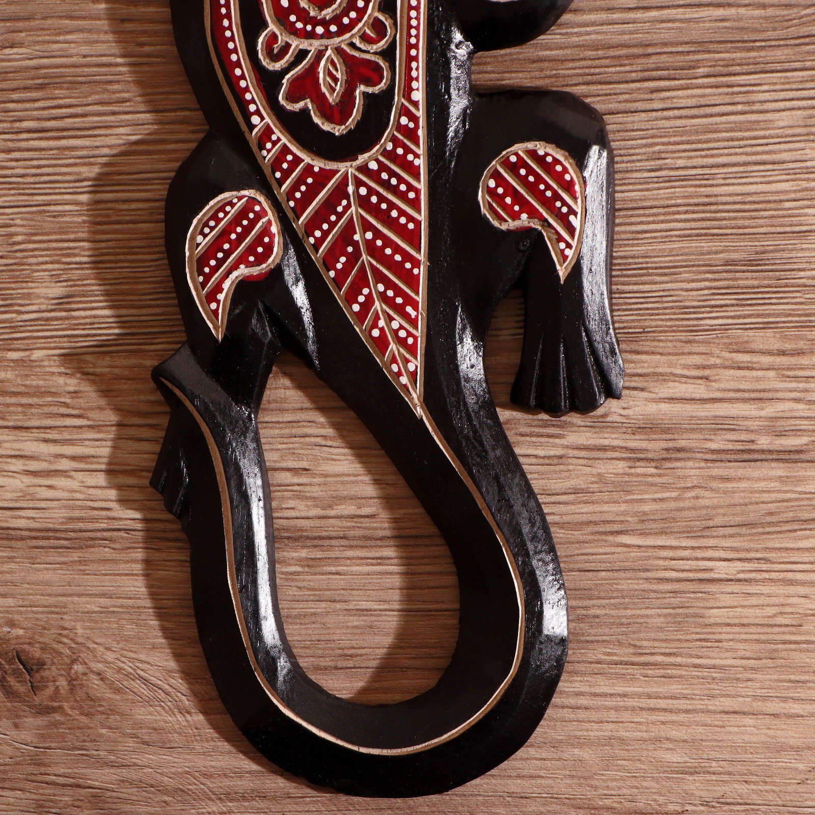 Панно настенное "Геккон черный с красным узором", 1x11x30 см, дерево, 11x1x30 см., Индонезия