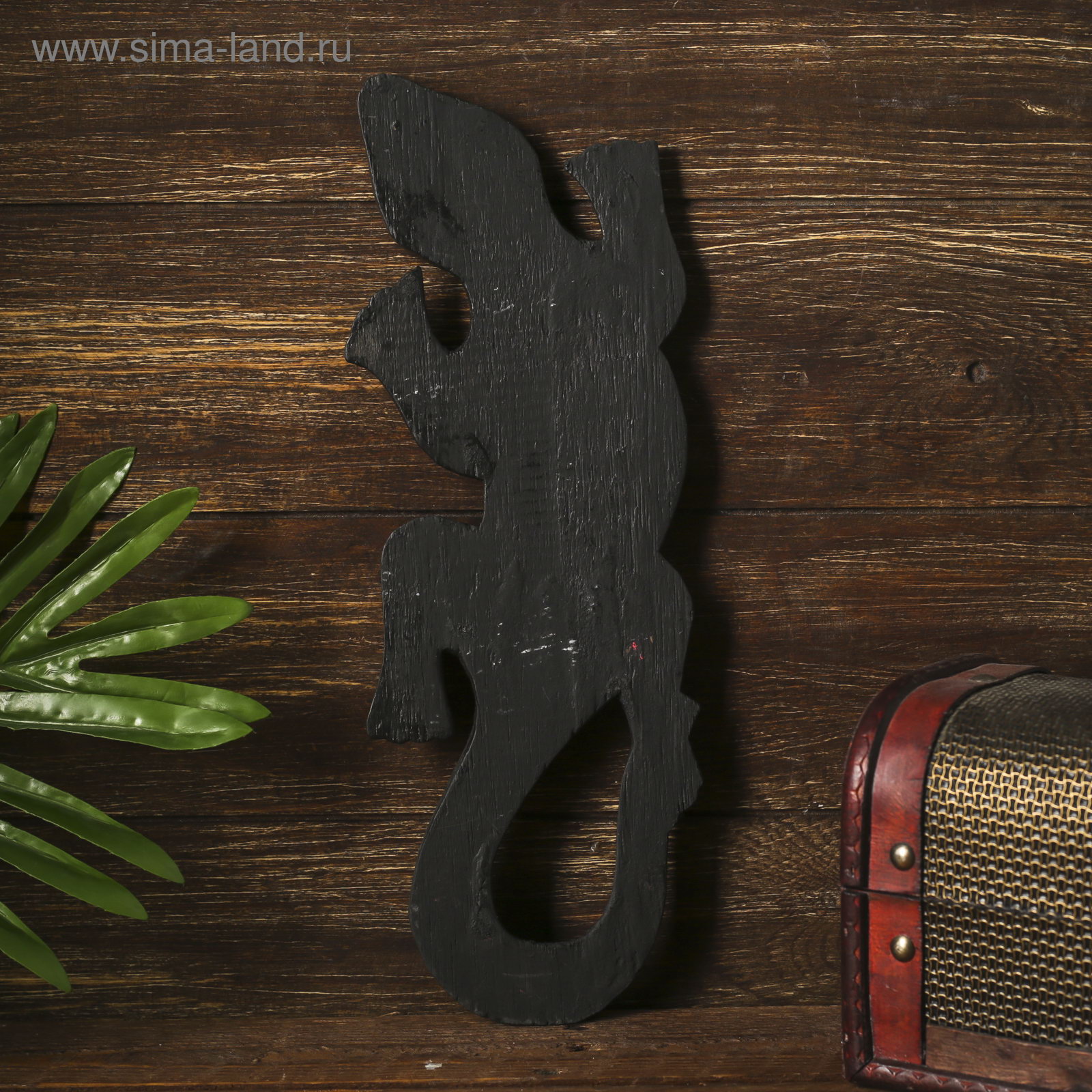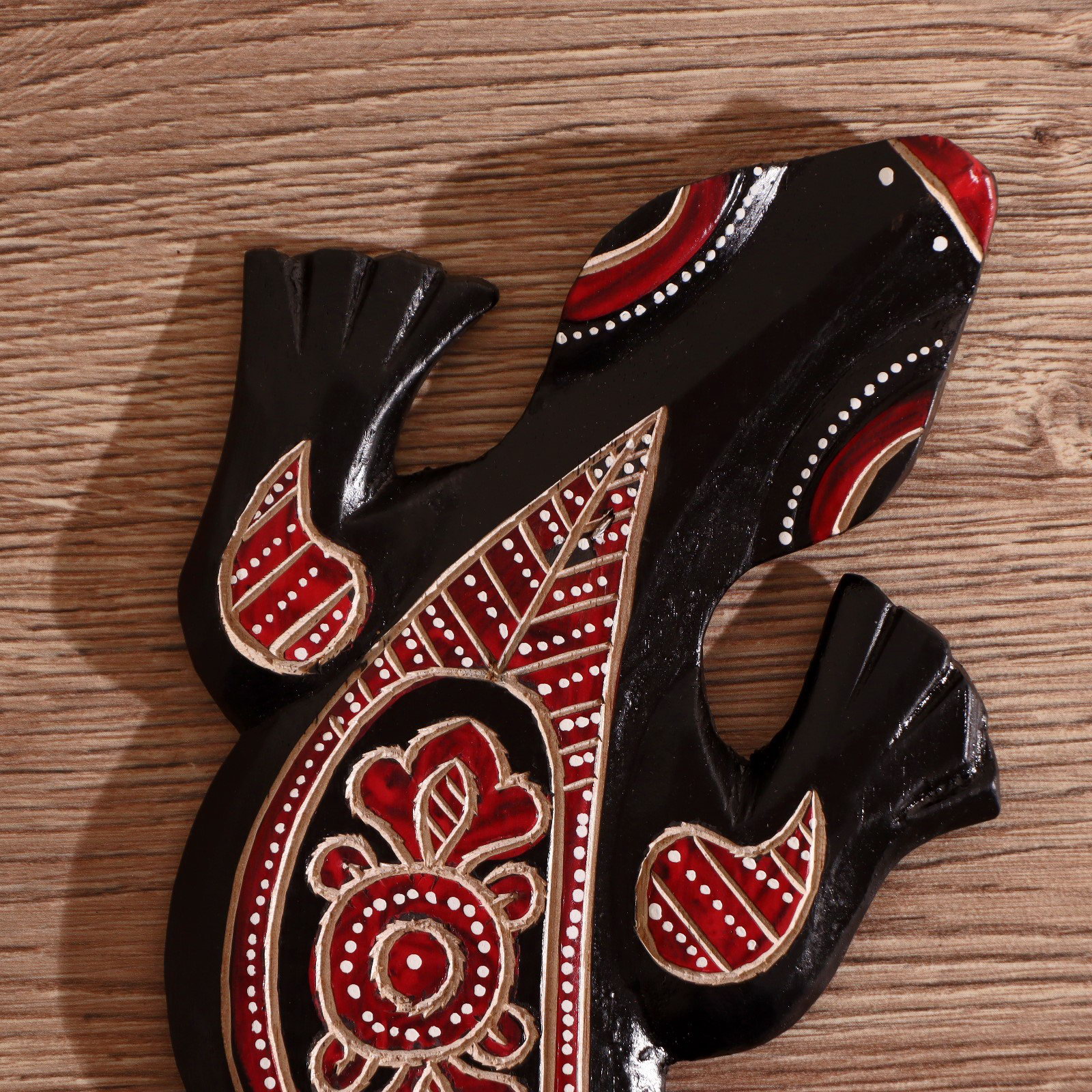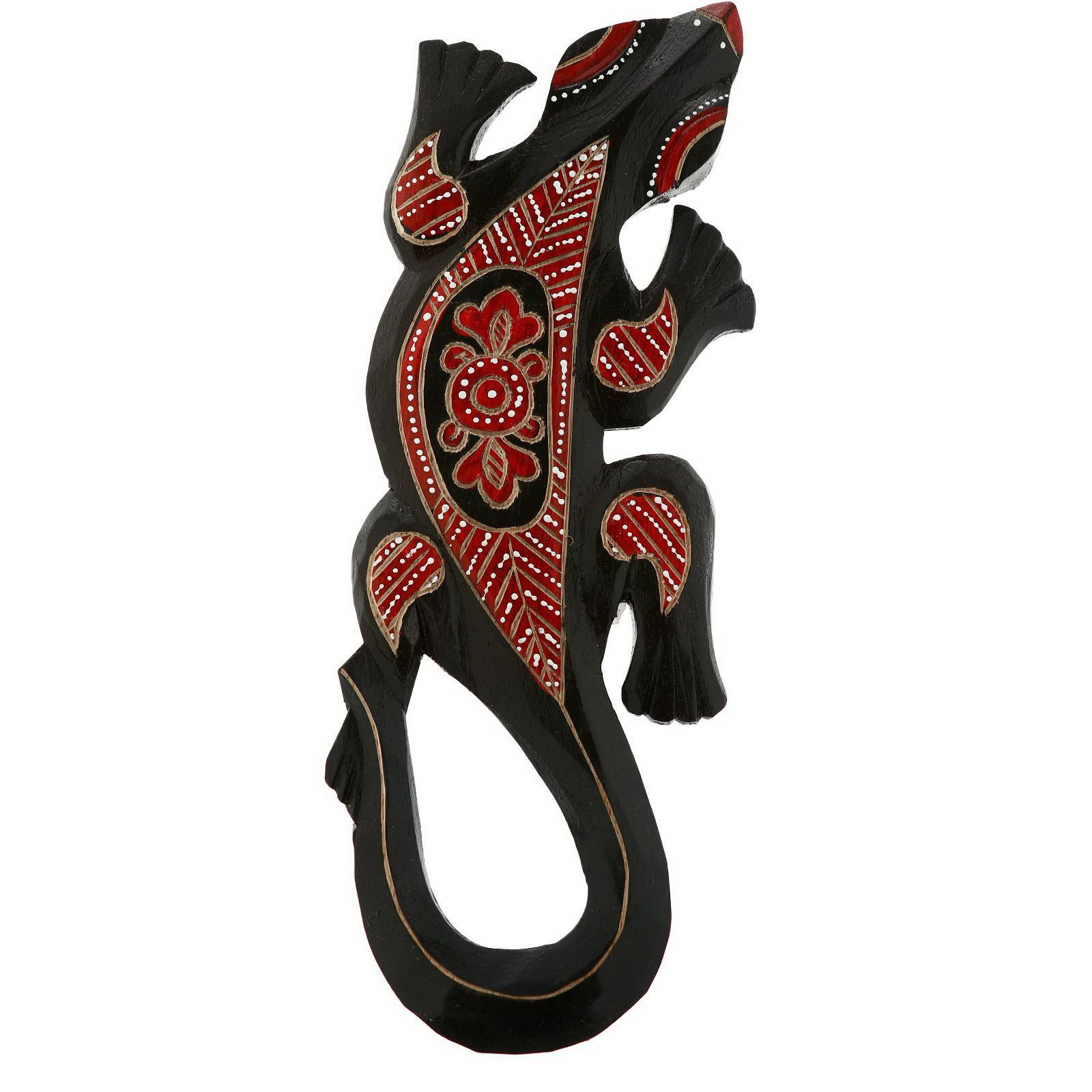Панно настенное "Геккон черный с красным узором", 1x11x30 см, дерево, 11x1x30 см., Индонезия