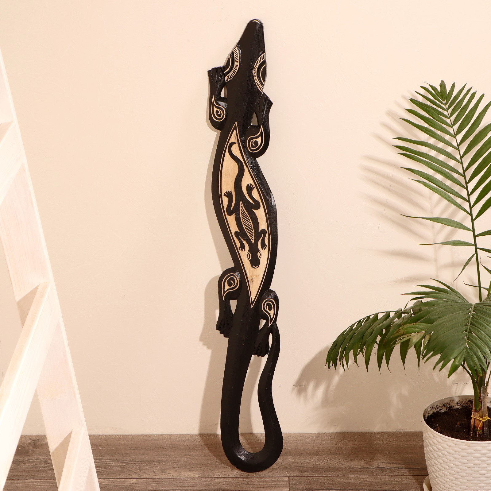 Панно настенное "Геккон на гекконе", 1.5x15x100 см, дерево, 15x1.5x100 см., Индонезия