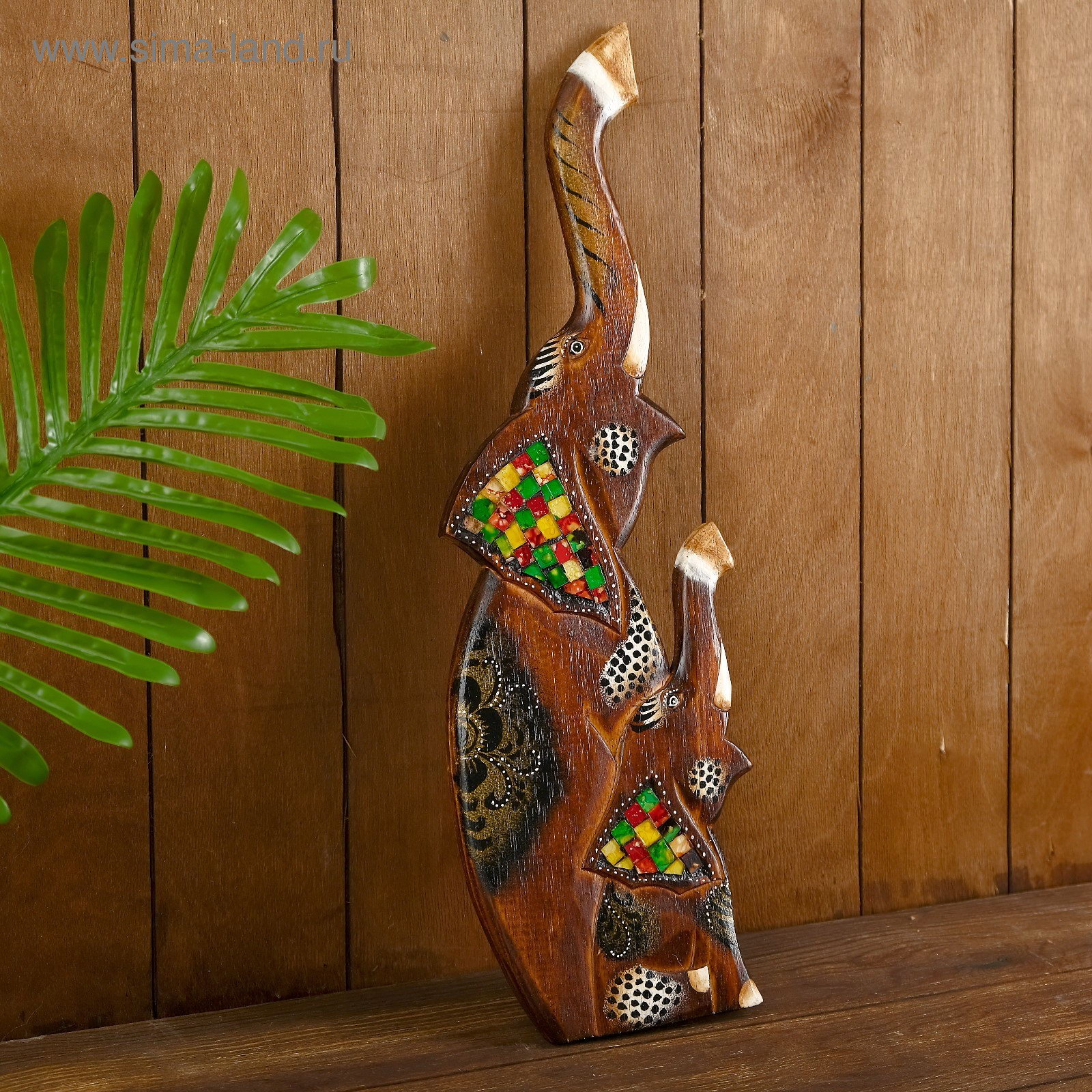 Панно "Слон и слоник", 16x1x50 см, дерево, 1x16x50 см., Индонезия