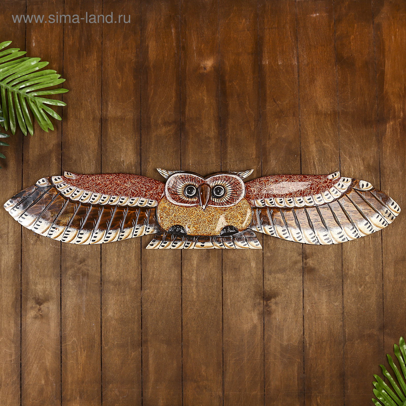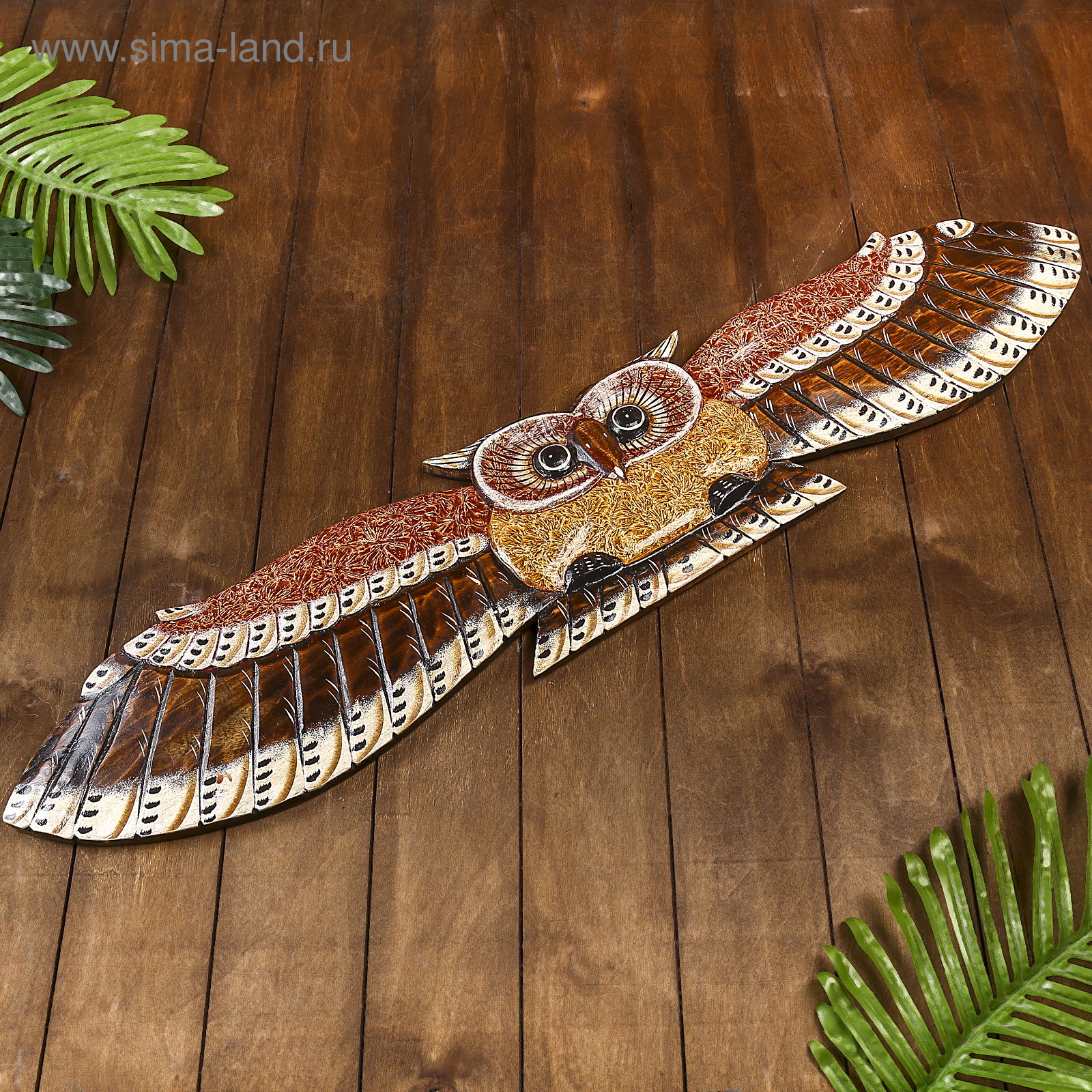 Настенное панно "Сова в полёте", 100x18.5x3 см, 100x3x18.5 см., Индонезия