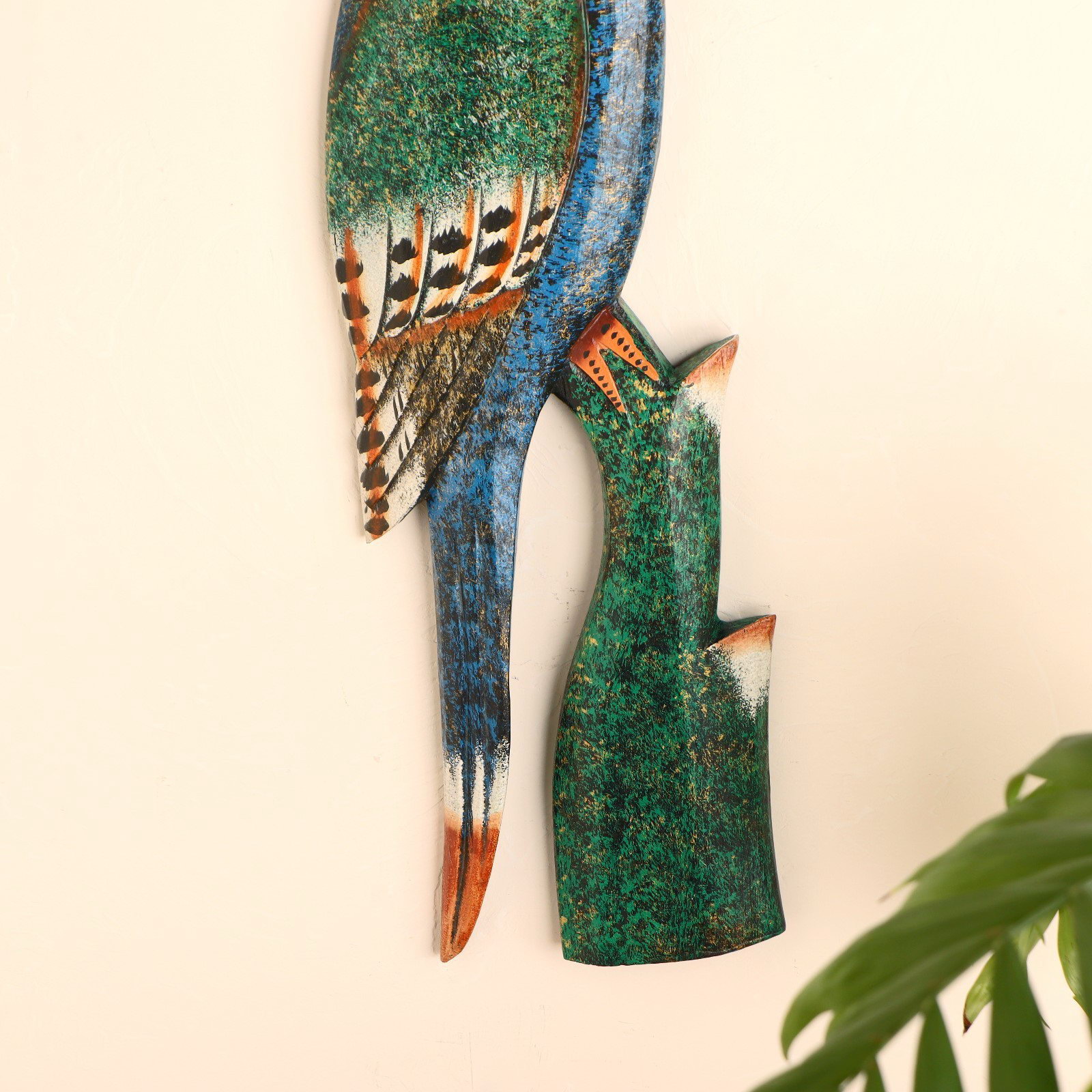 Настенное панно "Попугай на ветке", 50x18x2 см, 18x2x50 см., Индонезия