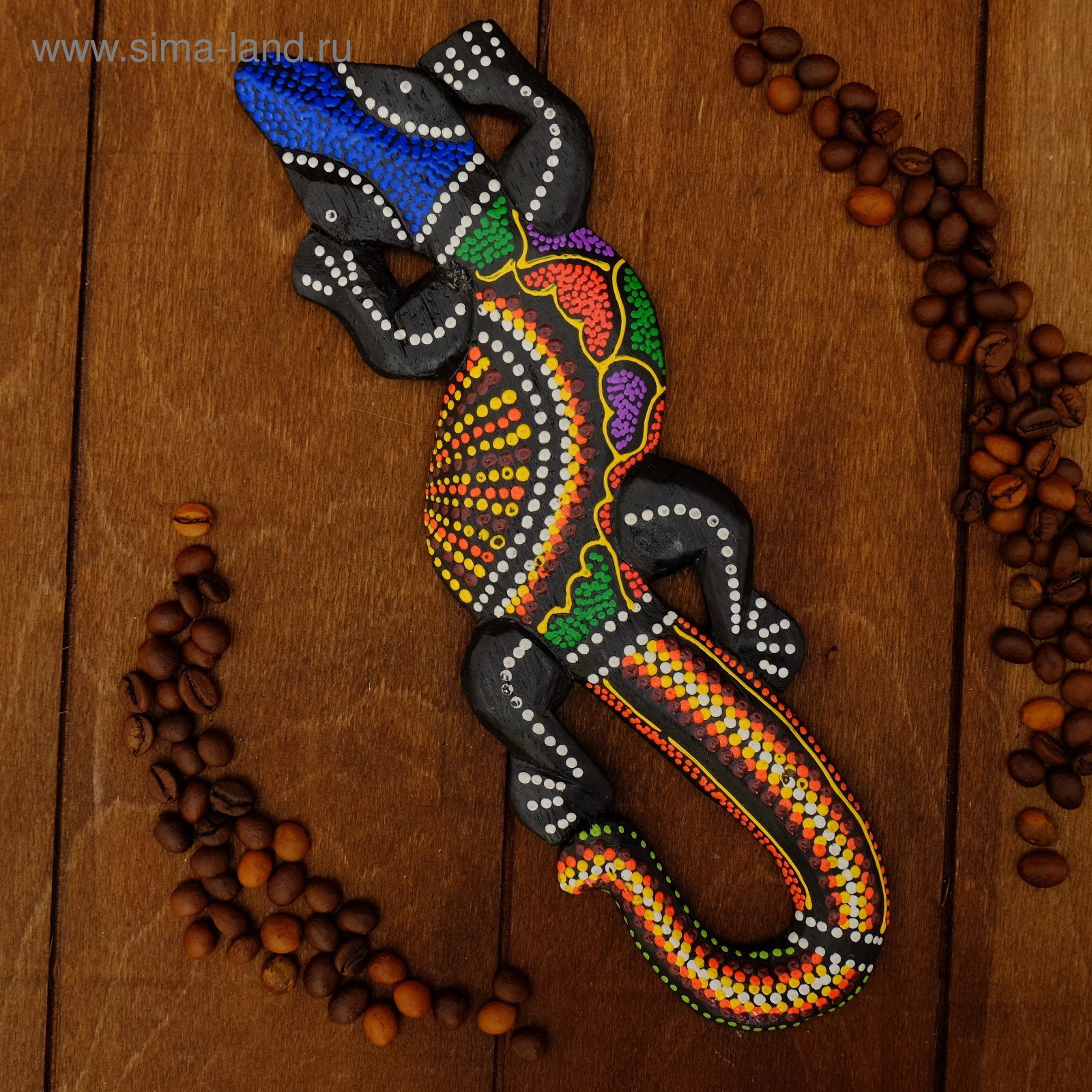 Панно декоративное "Ящерица геккон", 24x7.5x1 см, МИКС, 24x7.5x1 см., Индонезия