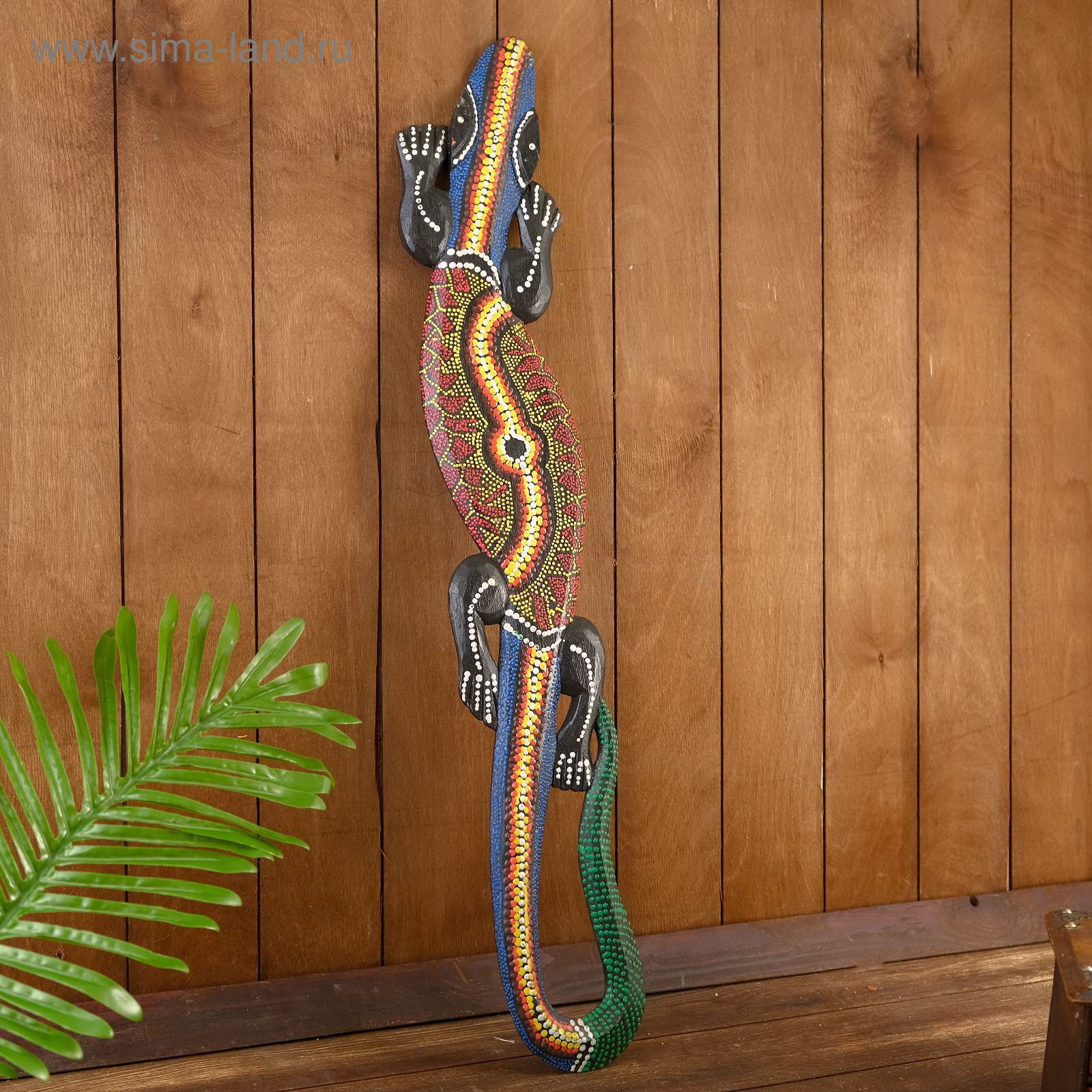Размер упаковки: 78 x 1.5 x 13 см. Тематика: Животный мир Высота, см: 78 Ширина, см: 13 Ширина, см: 13 tnved: 4420190000 Способ крепления: Без крепежа Не каждый осмелится разместить такое панно в своем интерьере. Ведь порой кажется, что это настоящая живая рептилия. Искусные индонезийские мастера изобразили все настолько детализировано четко, что хочется прикоснуться к панно декоративное "Ящерица геккон", 78x13x1.5 см, МИКС, чтобы ощутить тонкие линии изгибов этого животного. | ||