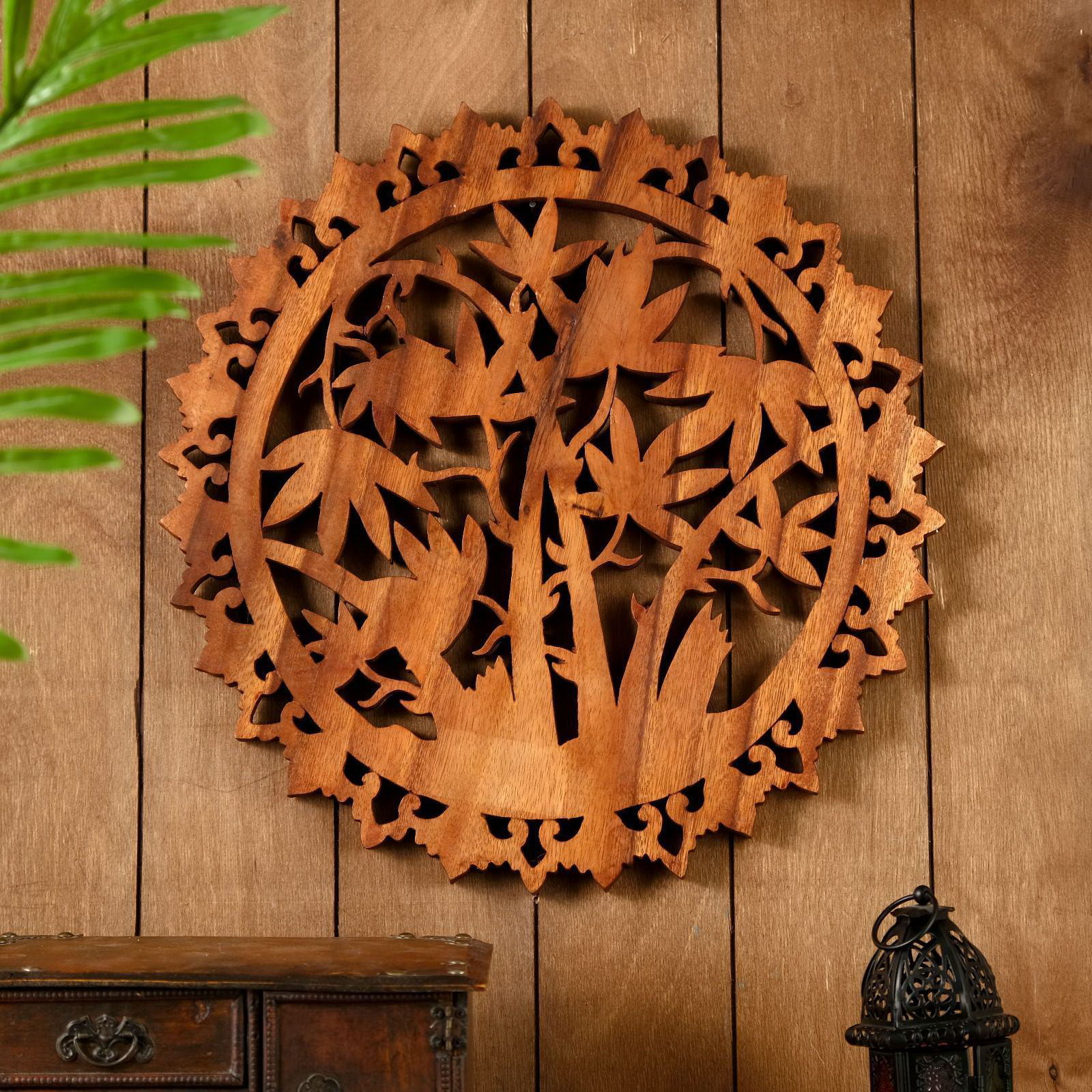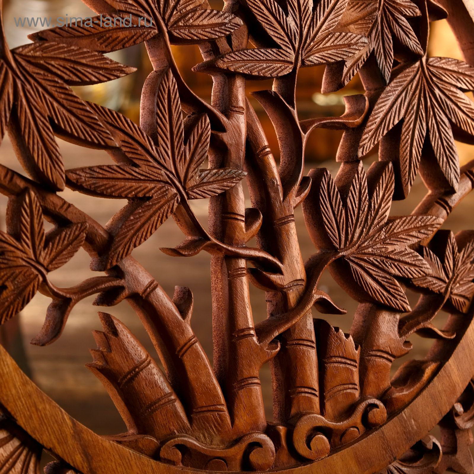 Панно "Райский лес", 40x40x2 см, резное дерево, 40x40x2 см., Индонезия