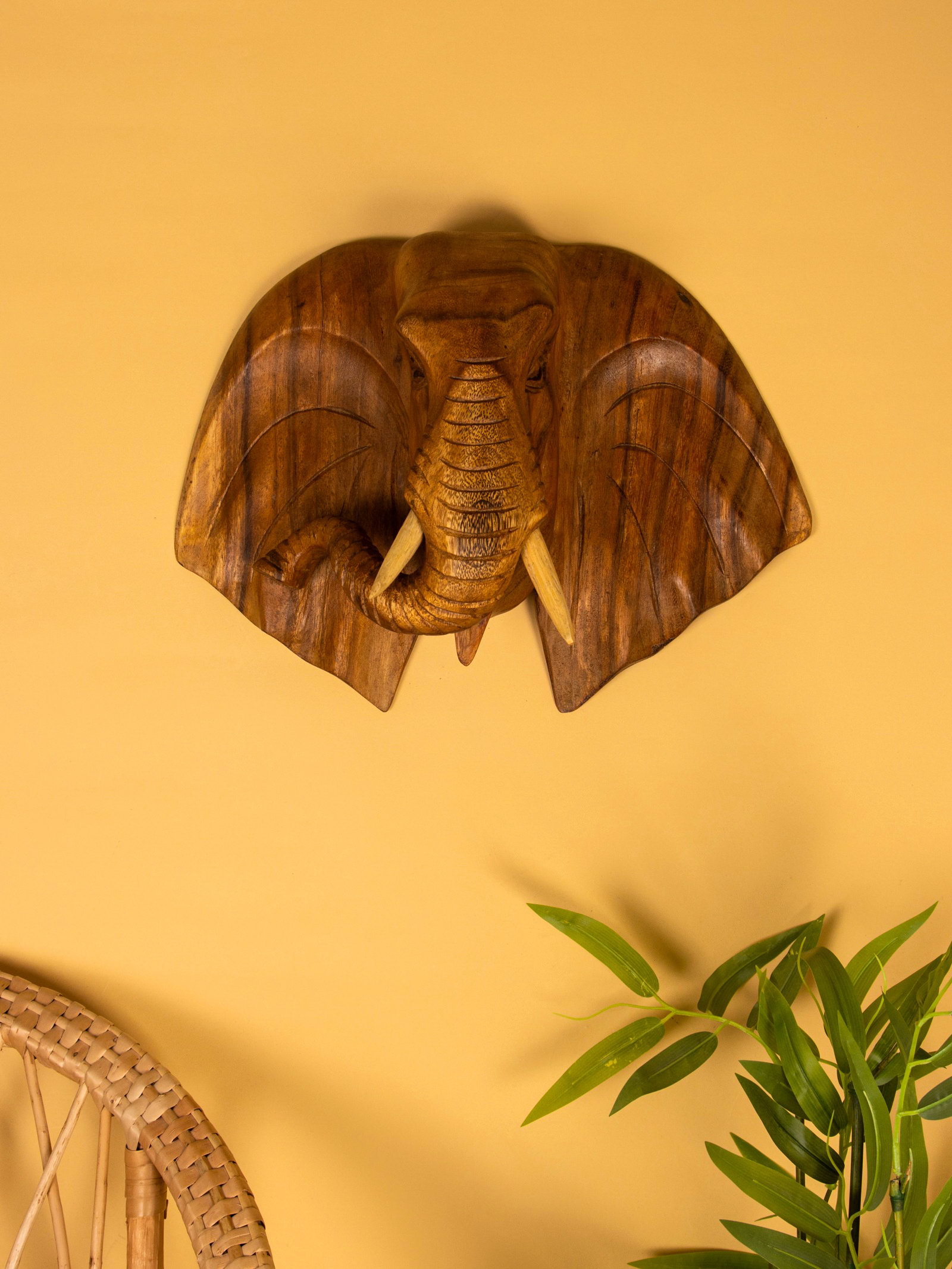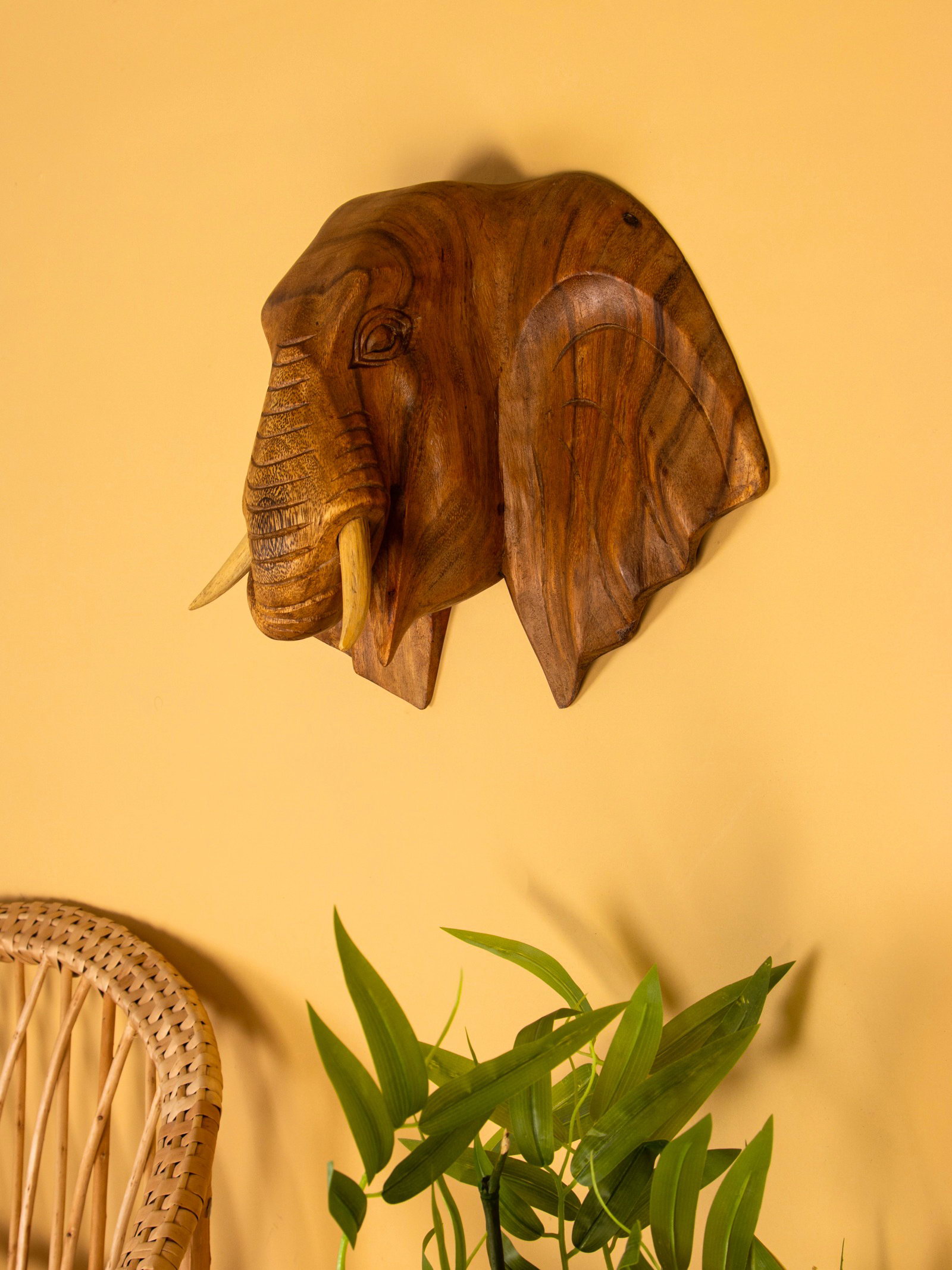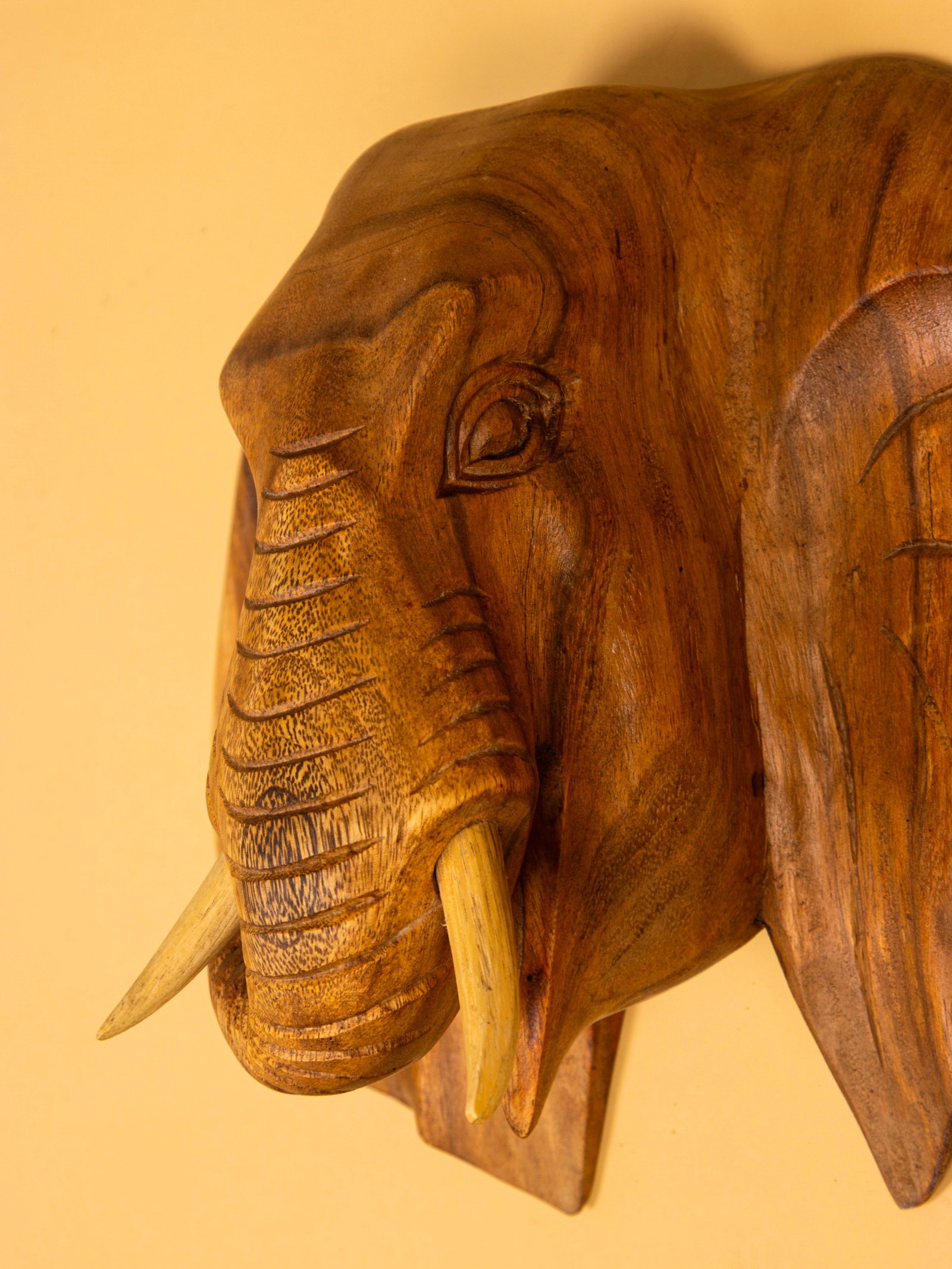 Панно "Голова слона", 40x15x30 см, дерево суар, коричневое, 15x40x30 см., Индонезия
