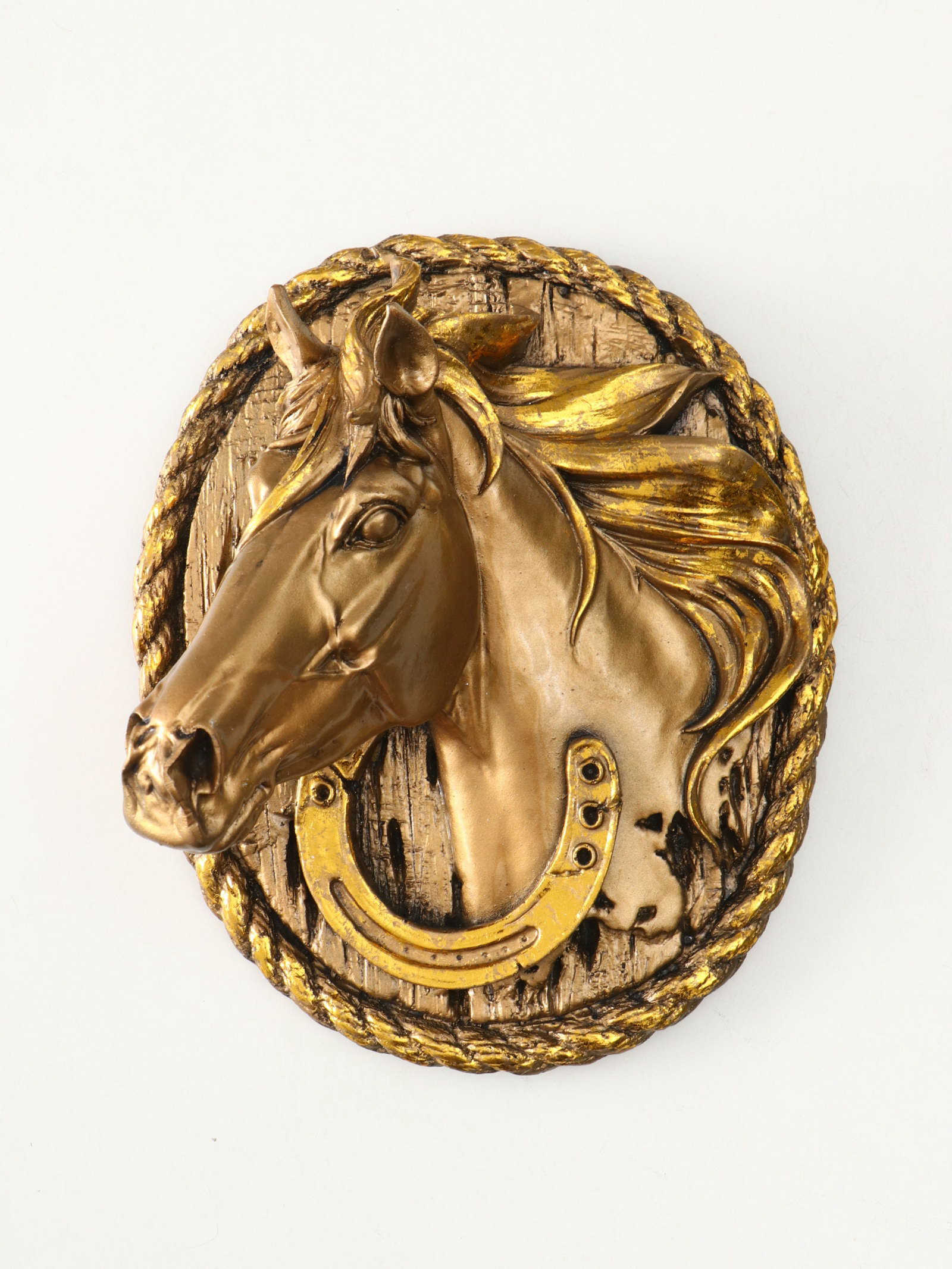 Панно настенное "Голова Лошади", декор интерьерный, 12x25x21 см, бронза с позолотой, Хорошие сувениры, Россия