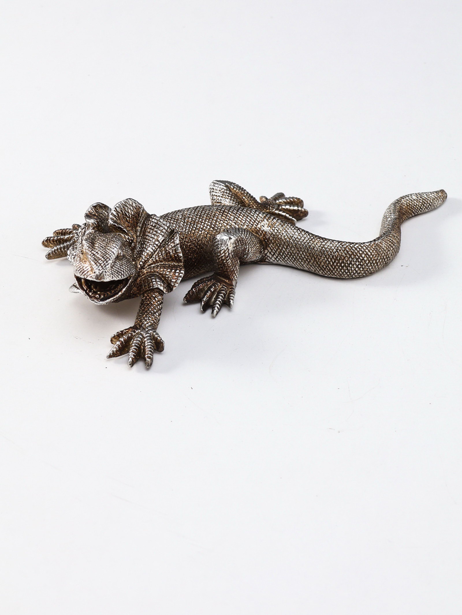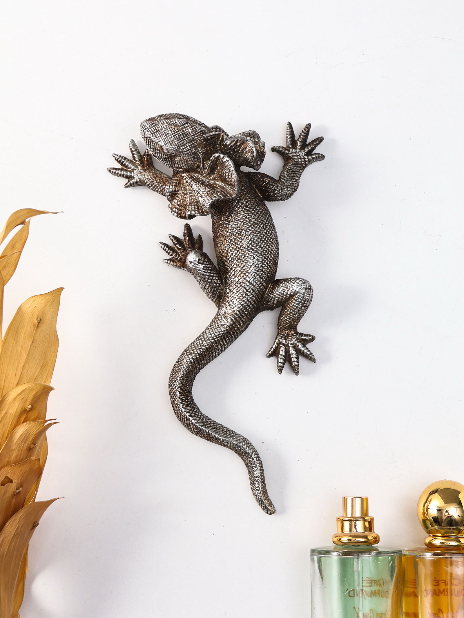 Панно настенное полистоун "Плащеносная ящерица", под чернённое серебро, 21x11.5x4.5 см, 11.5x21x4.5 см., Китай