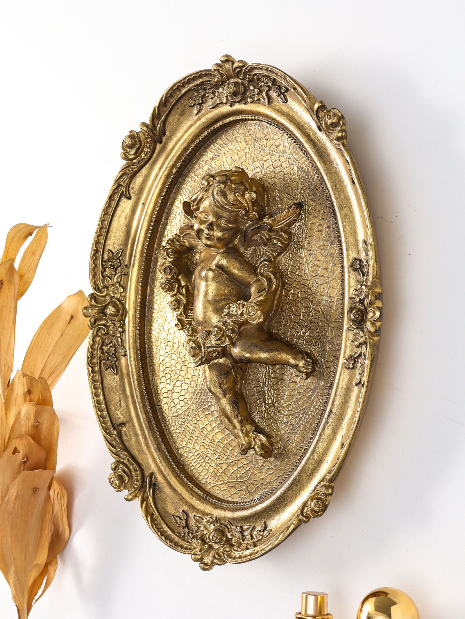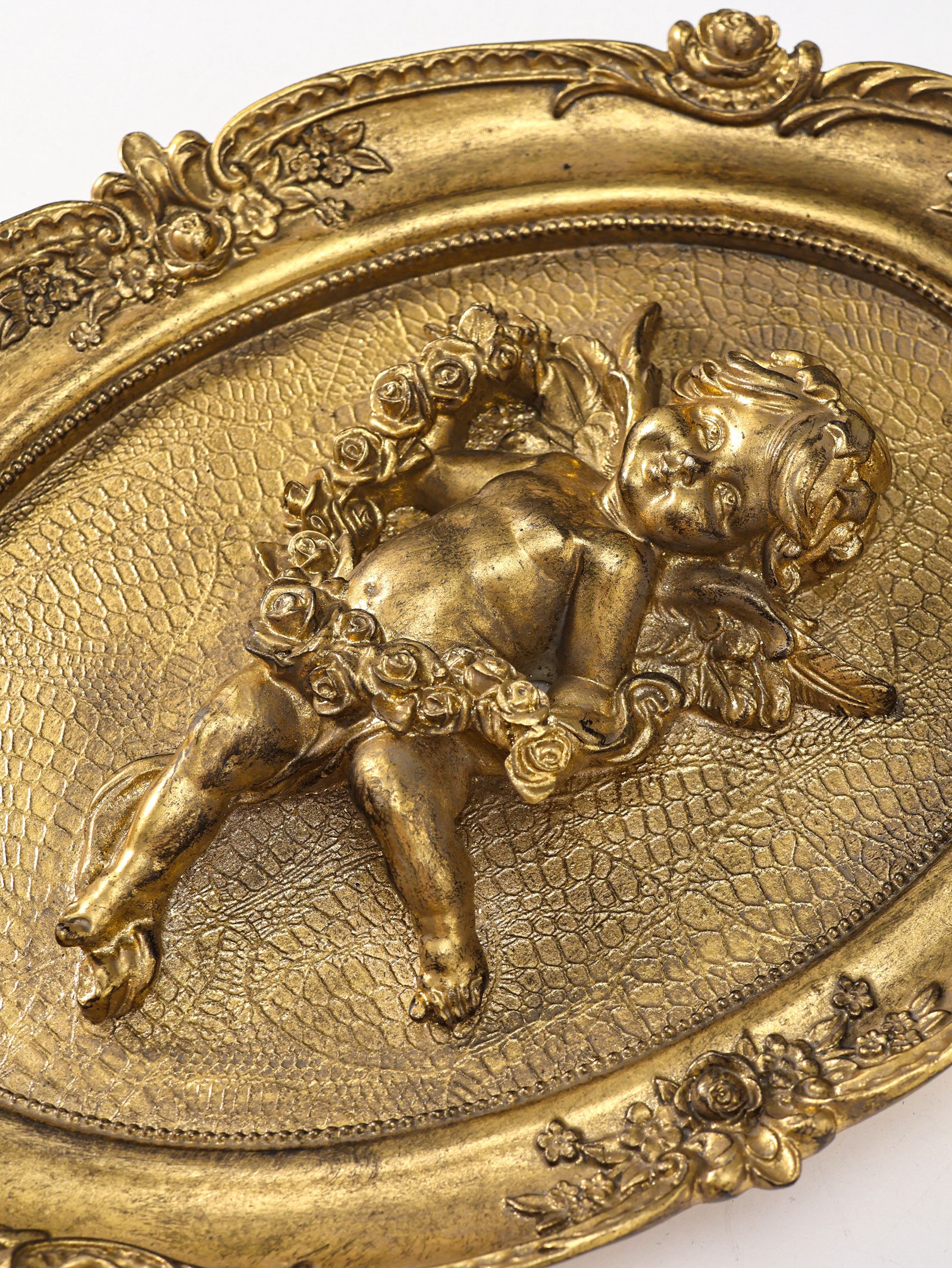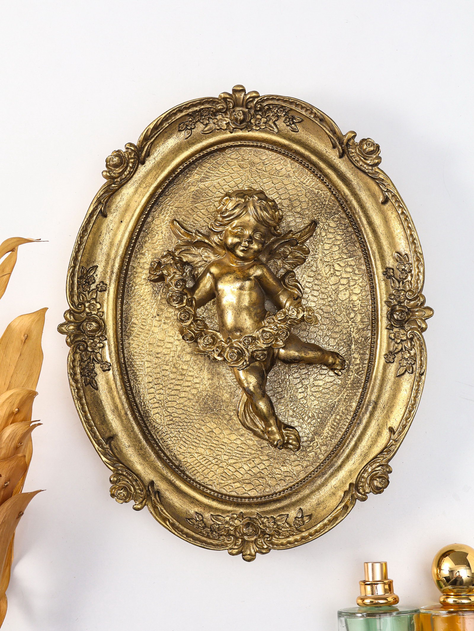 Панно настенное полистоун "Ангел с венком из роз", под золото, 21.5x4x27 см, 4x21.5x27 см., Китай