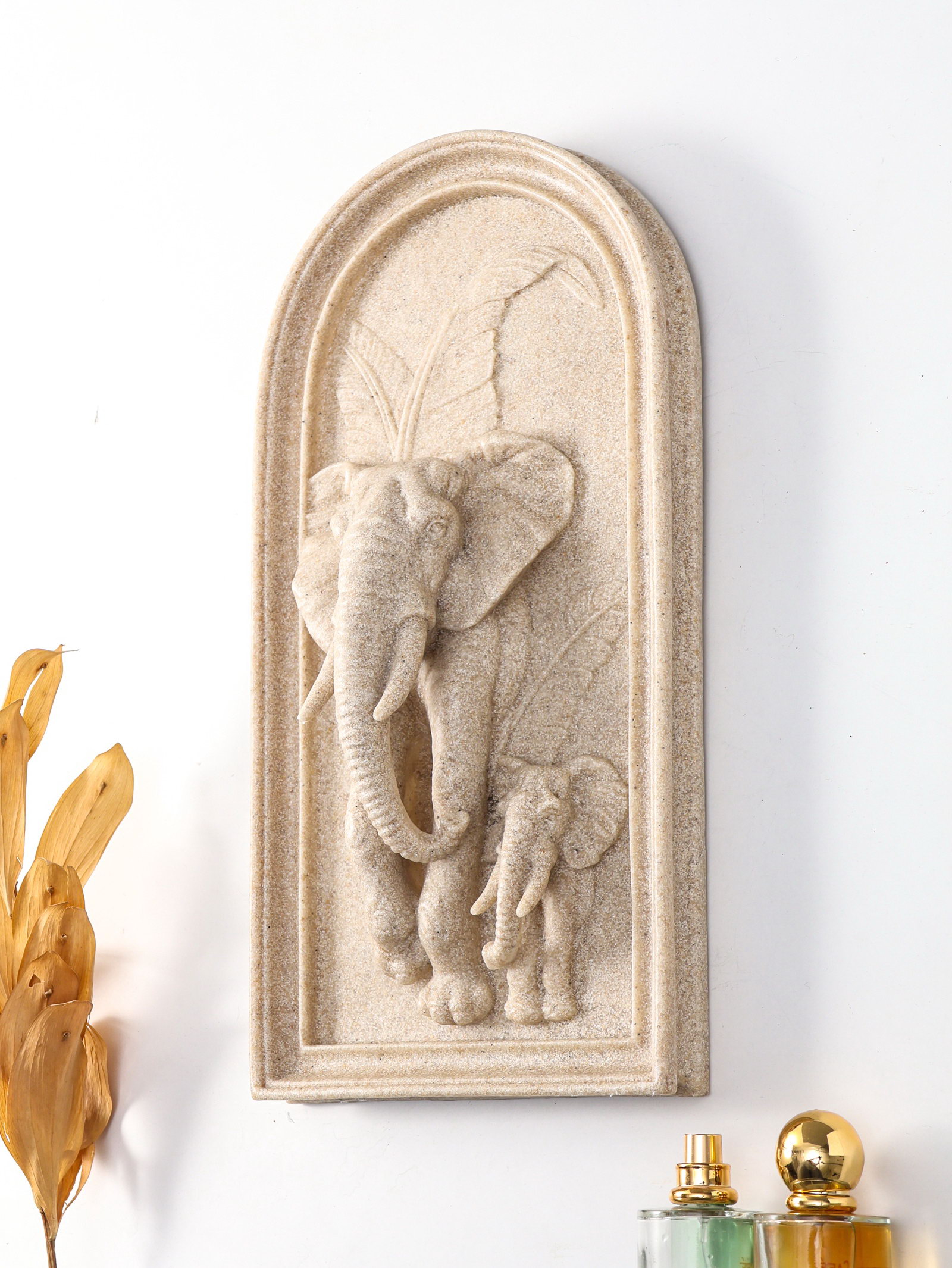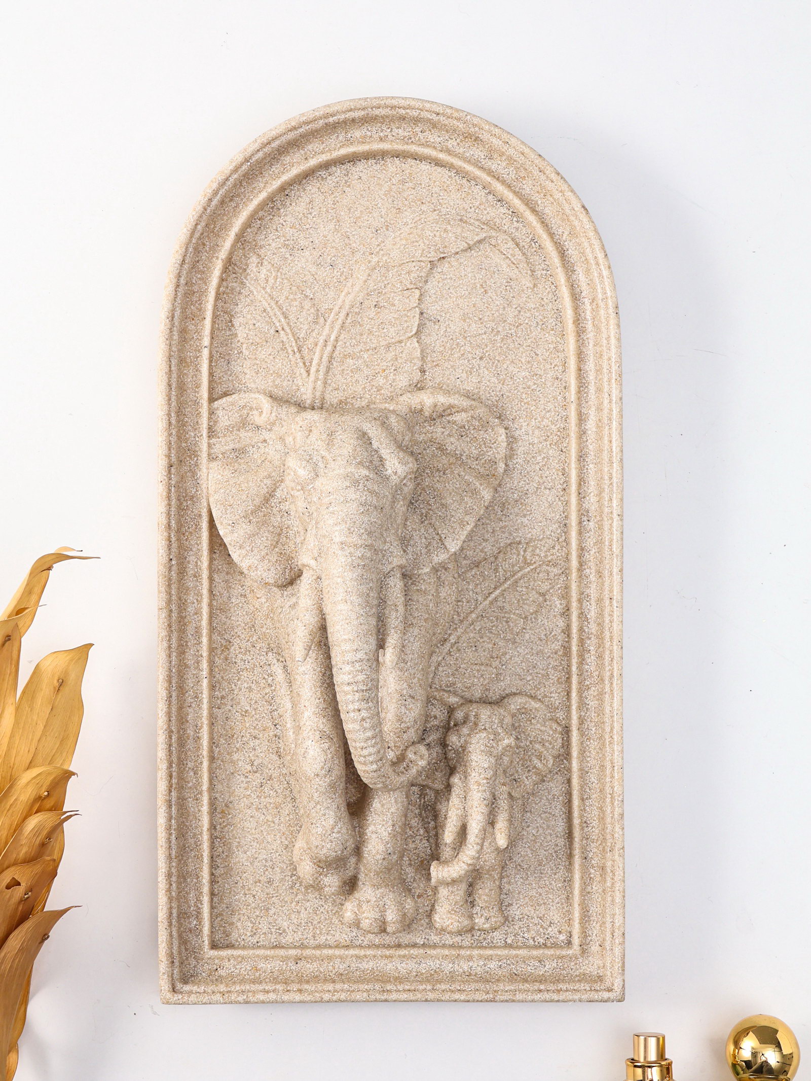 Панно настенное полистоун "Слон со слонёнком в джунглях", песочный, 19.2x7.4x37.2 см, 7.4x19.2x37.2 см., Китай