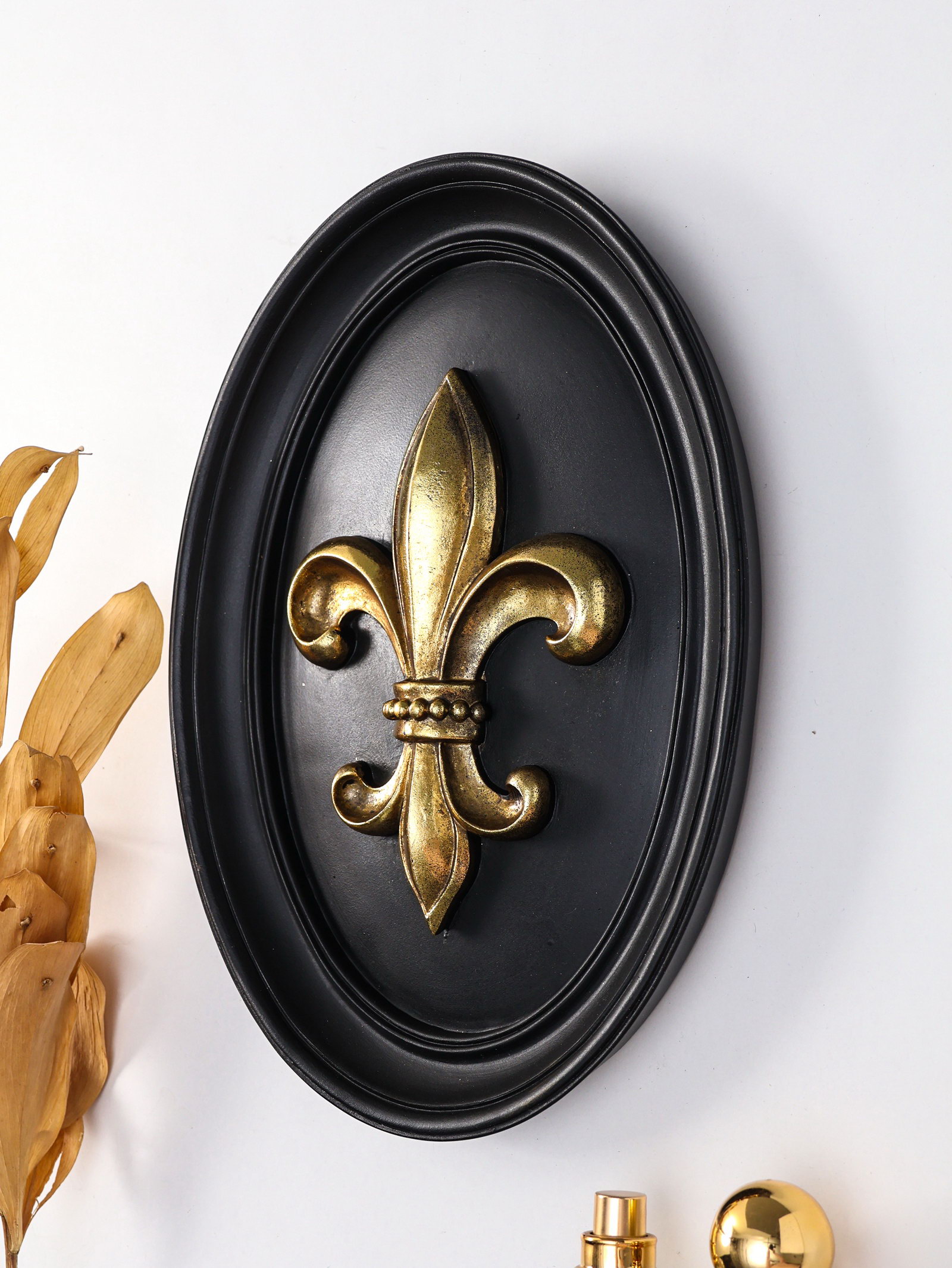 Панно настенное полистоун "Геральдическая лилия", чёрный с золотом, 20x2.5x26.2 см, 2.5x20x26.2 см., Китай