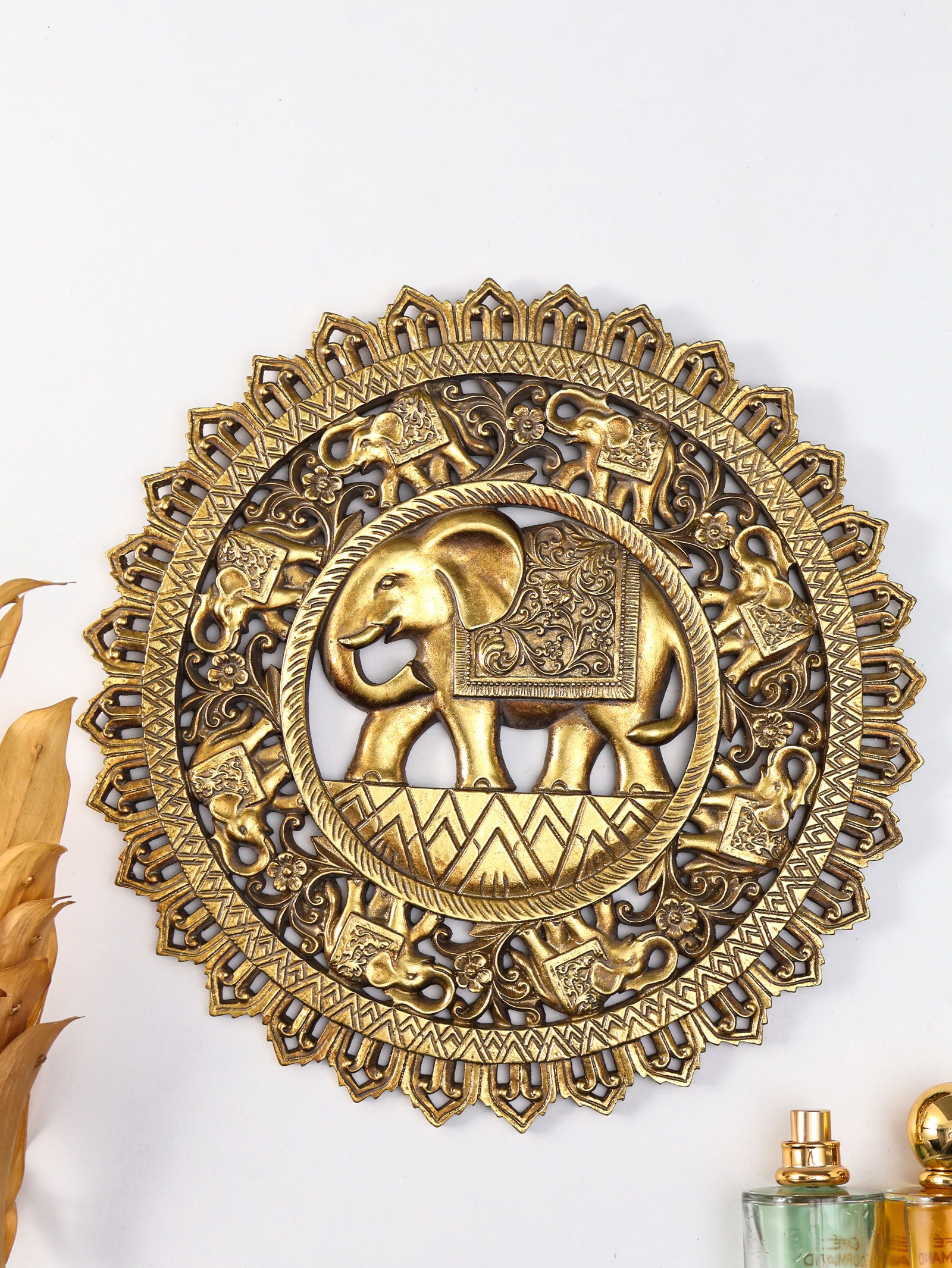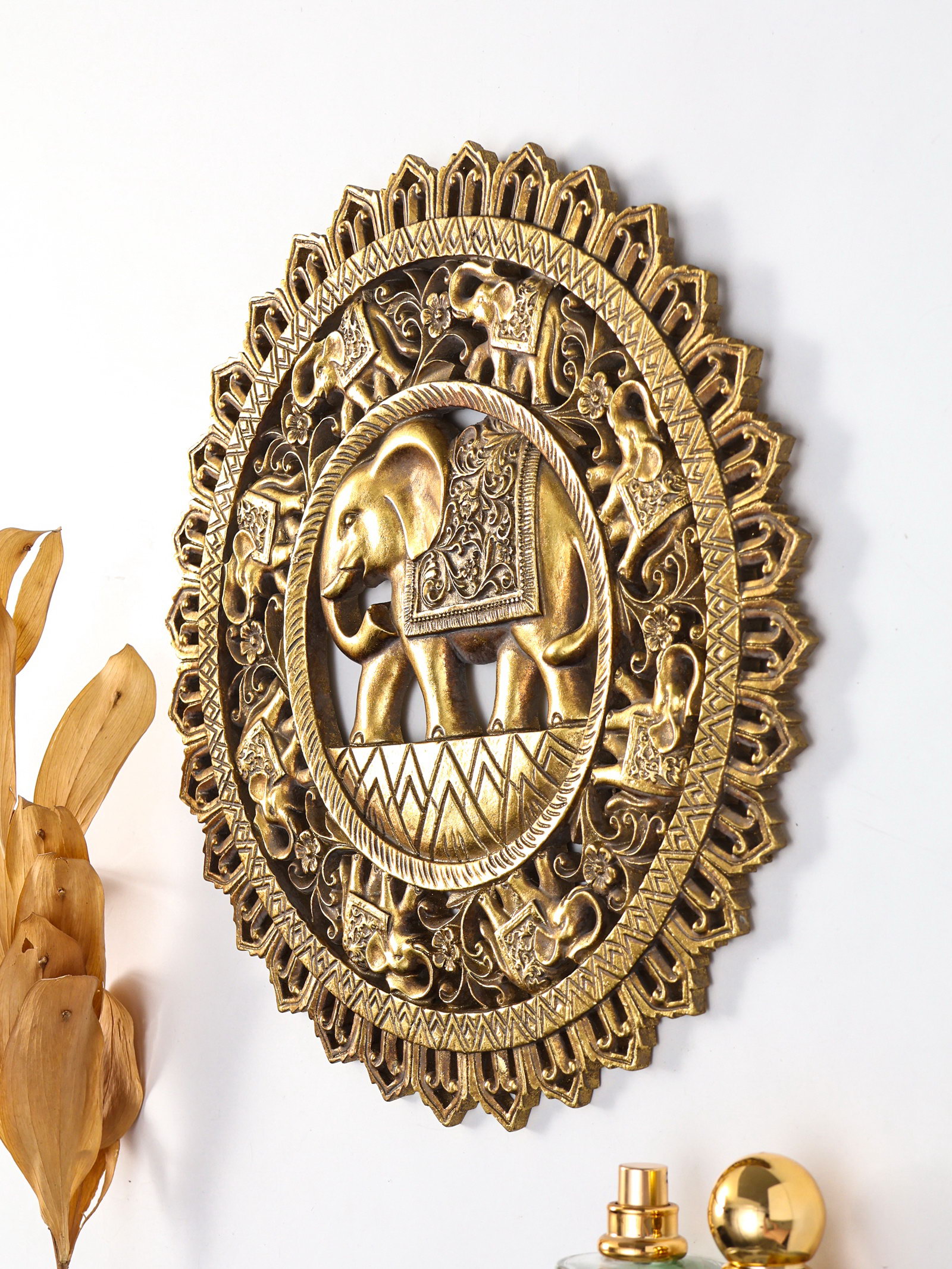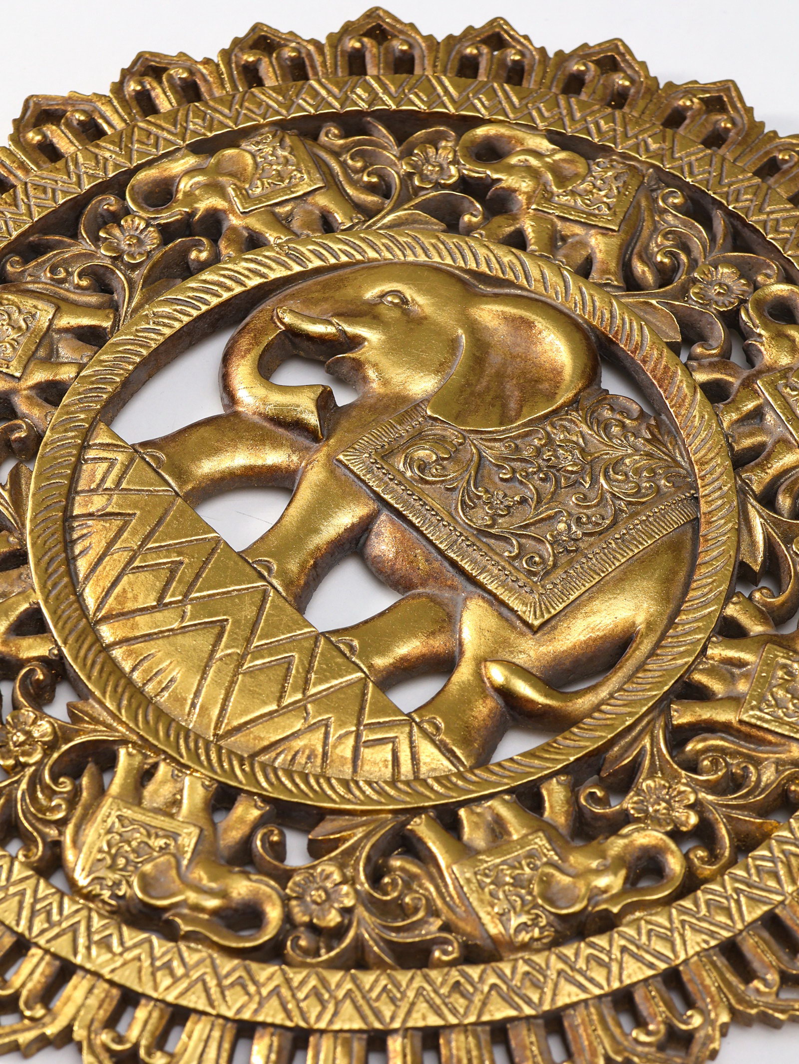 Панно настенное полистоун "Индийский слон. Мандала", под золото, 30x4.6x30 см, 1.6x30x30 см., Китай