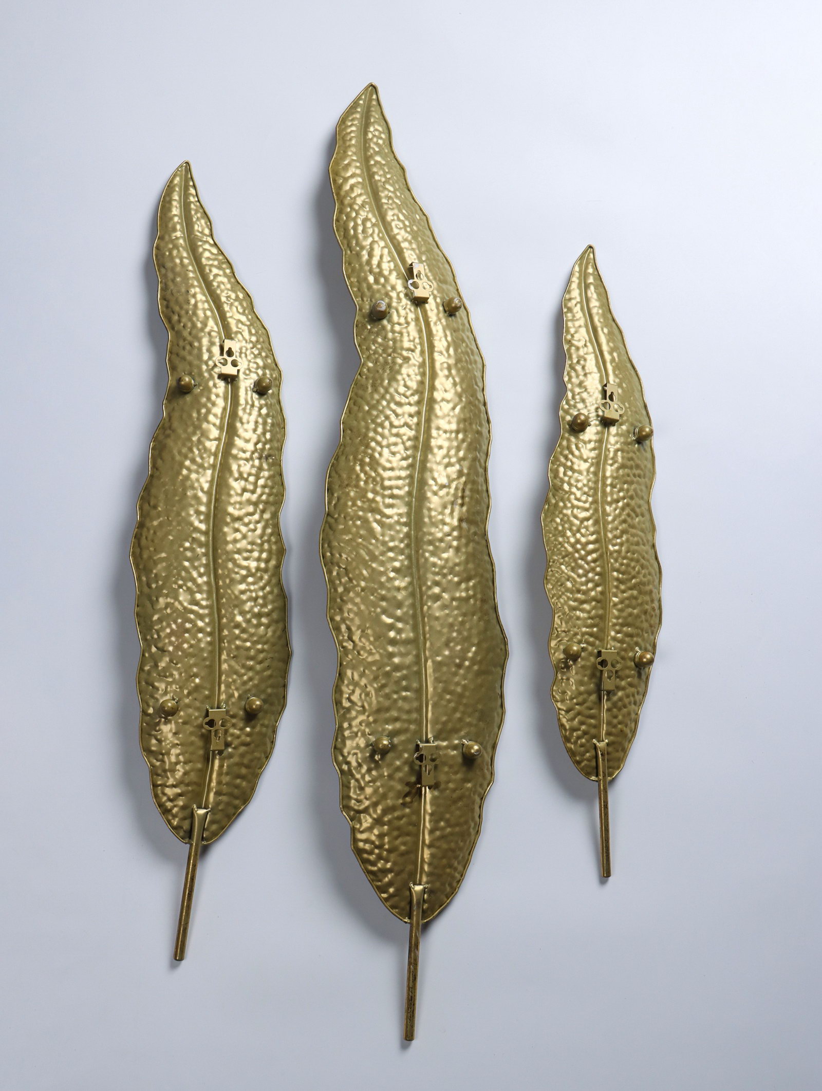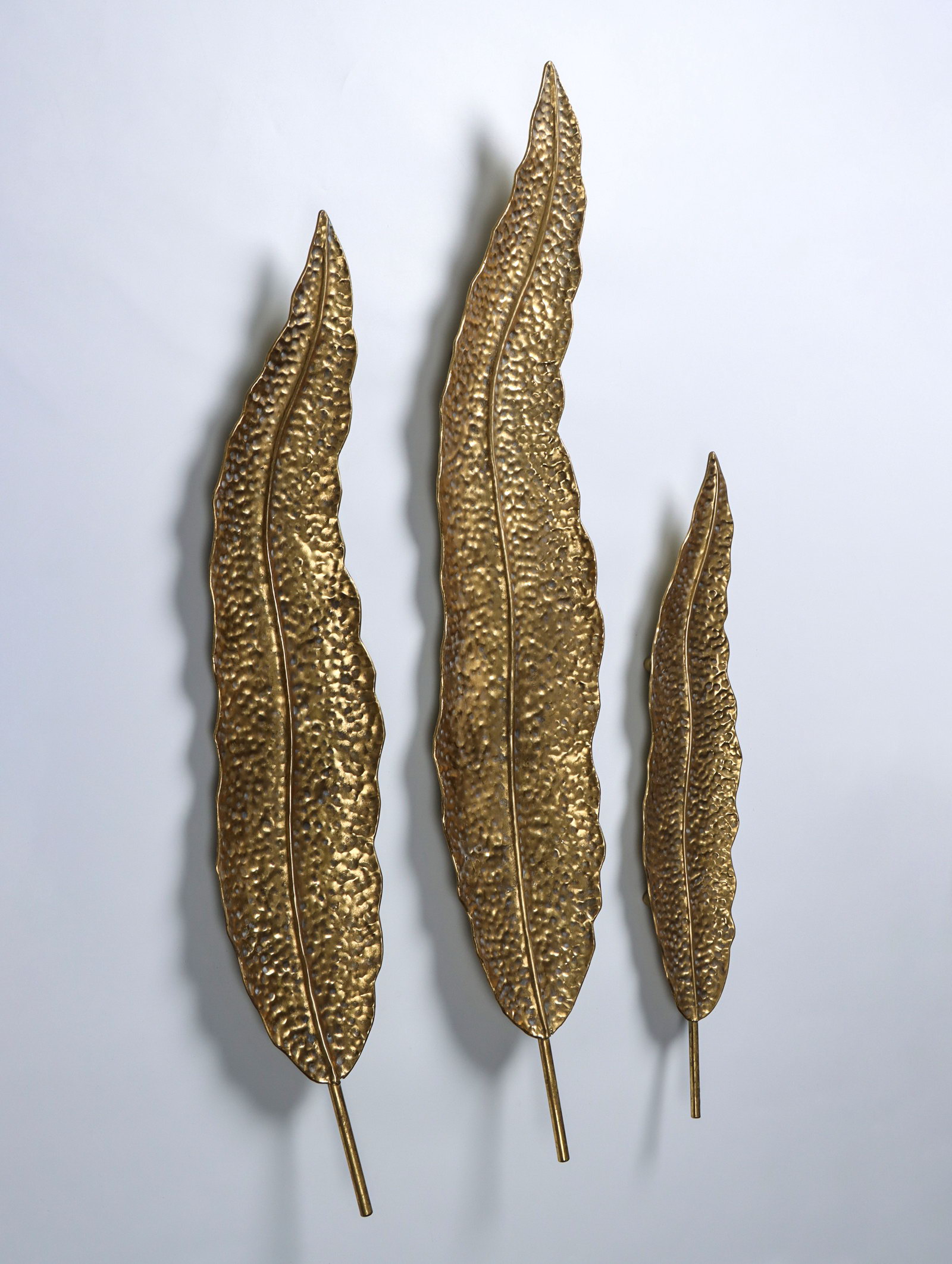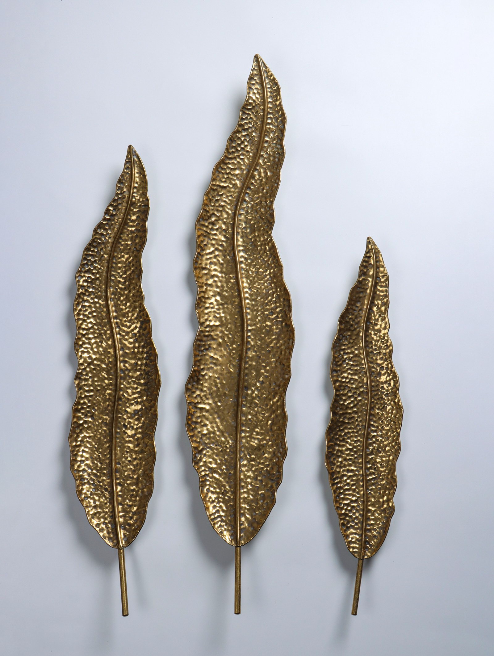 Ширина, см: 16.5, 19, 23.5 Высота, см: 80, 101, 123 Размер упаковки: 23 x 8 x 122 см. tnved: 8306290000 Тематика: Цветочно-растительная Способ крепления: Подвес Цвет: Золотистый Этот набор из трёх металлических панно с листьями привносит в интерьер лёгкость и динамику природных линий. Композиция из изогнутых стеблей и листвы создаёт ощущение движения, застывшего в воздухе. Она подходит для акцентного декора гостиной, спальни или офисного пространства, где хочется добавить ноту утончённости без перегруженности деталями. Что делает эти настенные панно особенными