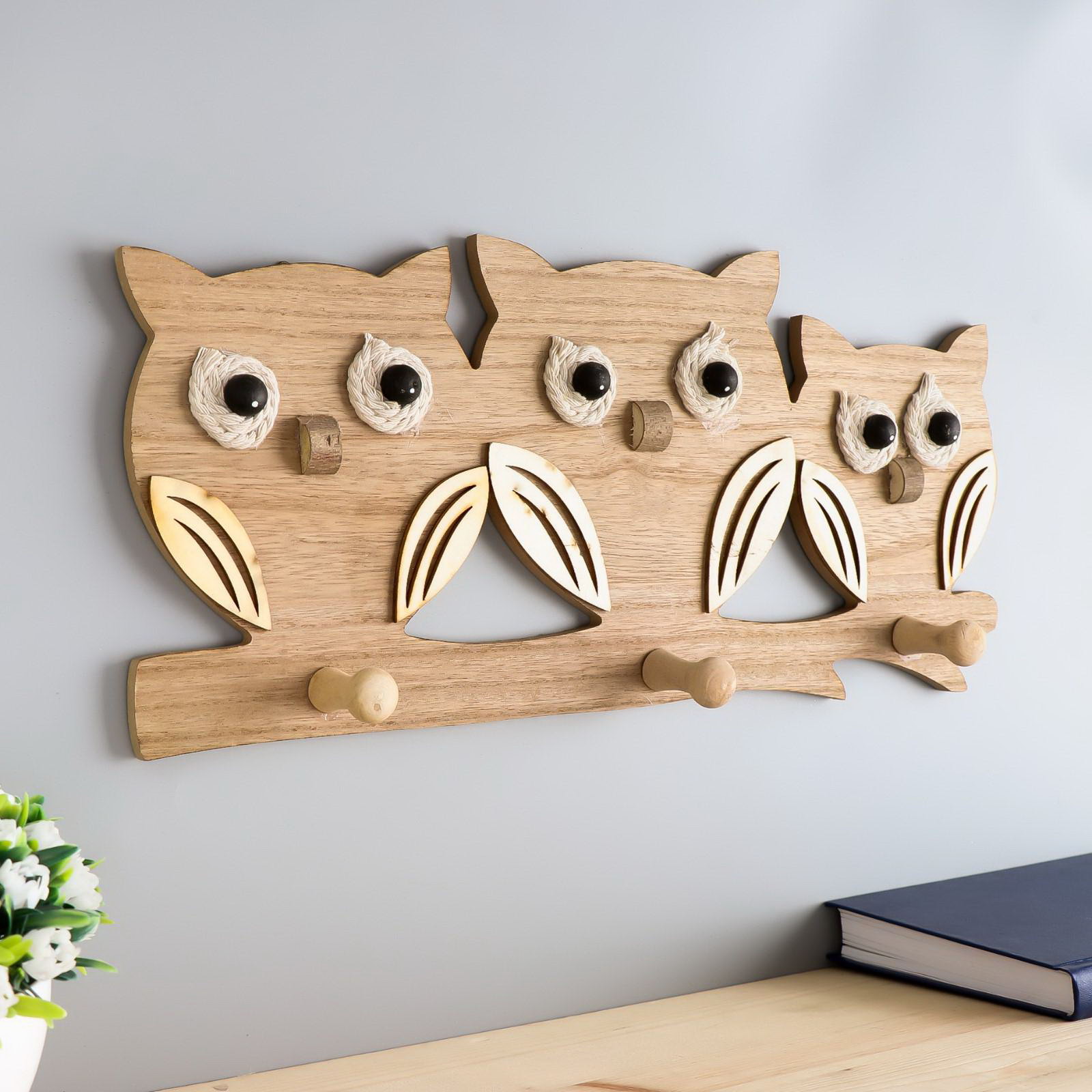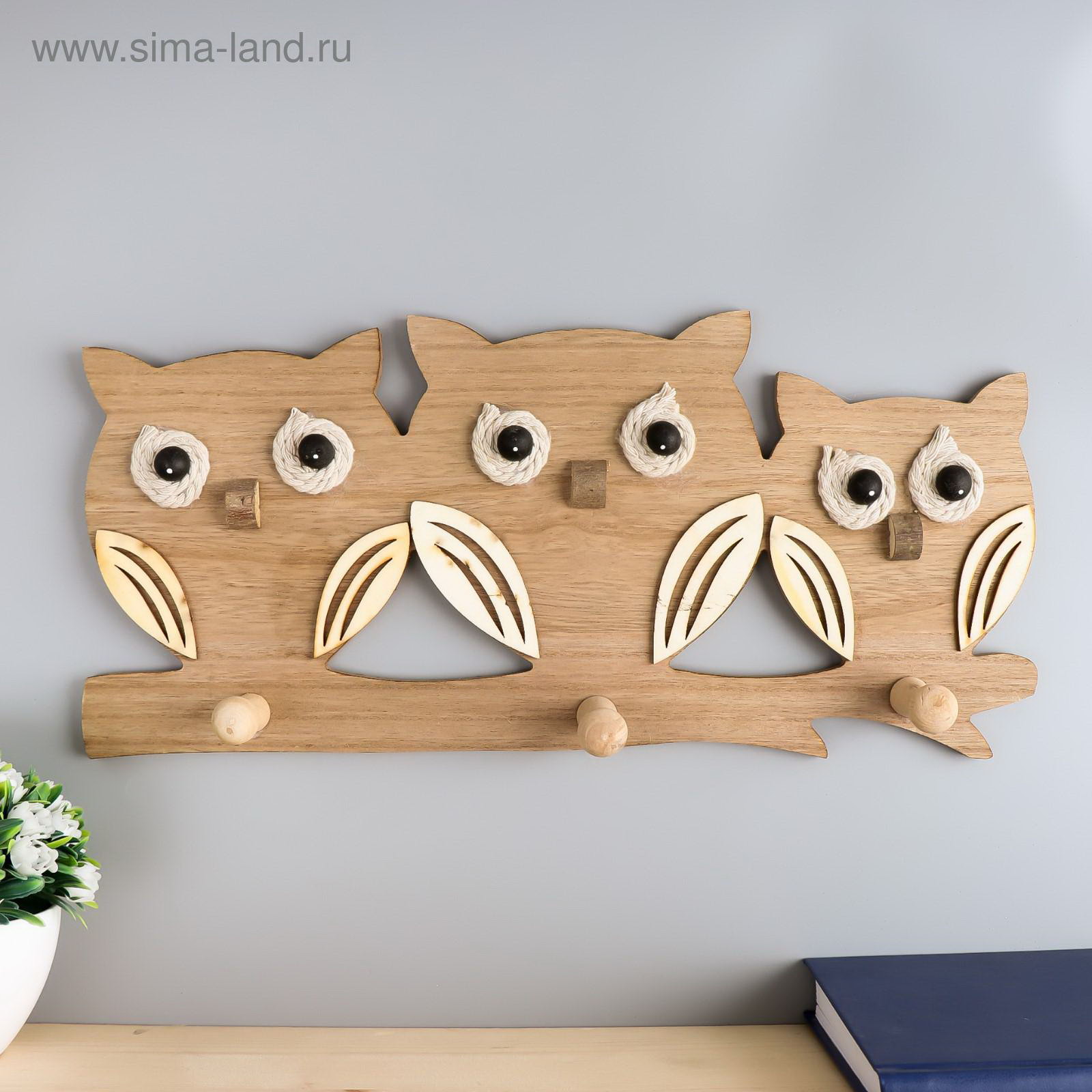 Крючки декоративные дерево "Совы очковые на ветке" 18.5х39.5х4.7 см, 39.5x4.7x18.5 см., Китай