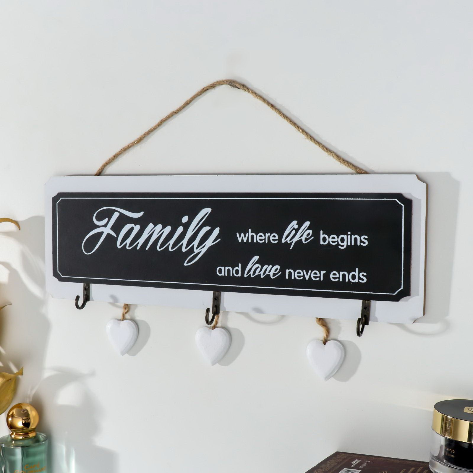 Крючки декоративные дерево "Семья" с сердечками 22х34.2х0.8 см, 0.8x34.2x22 см., Китай