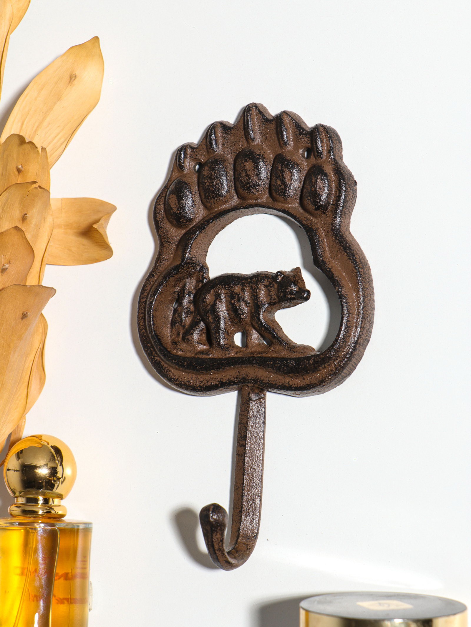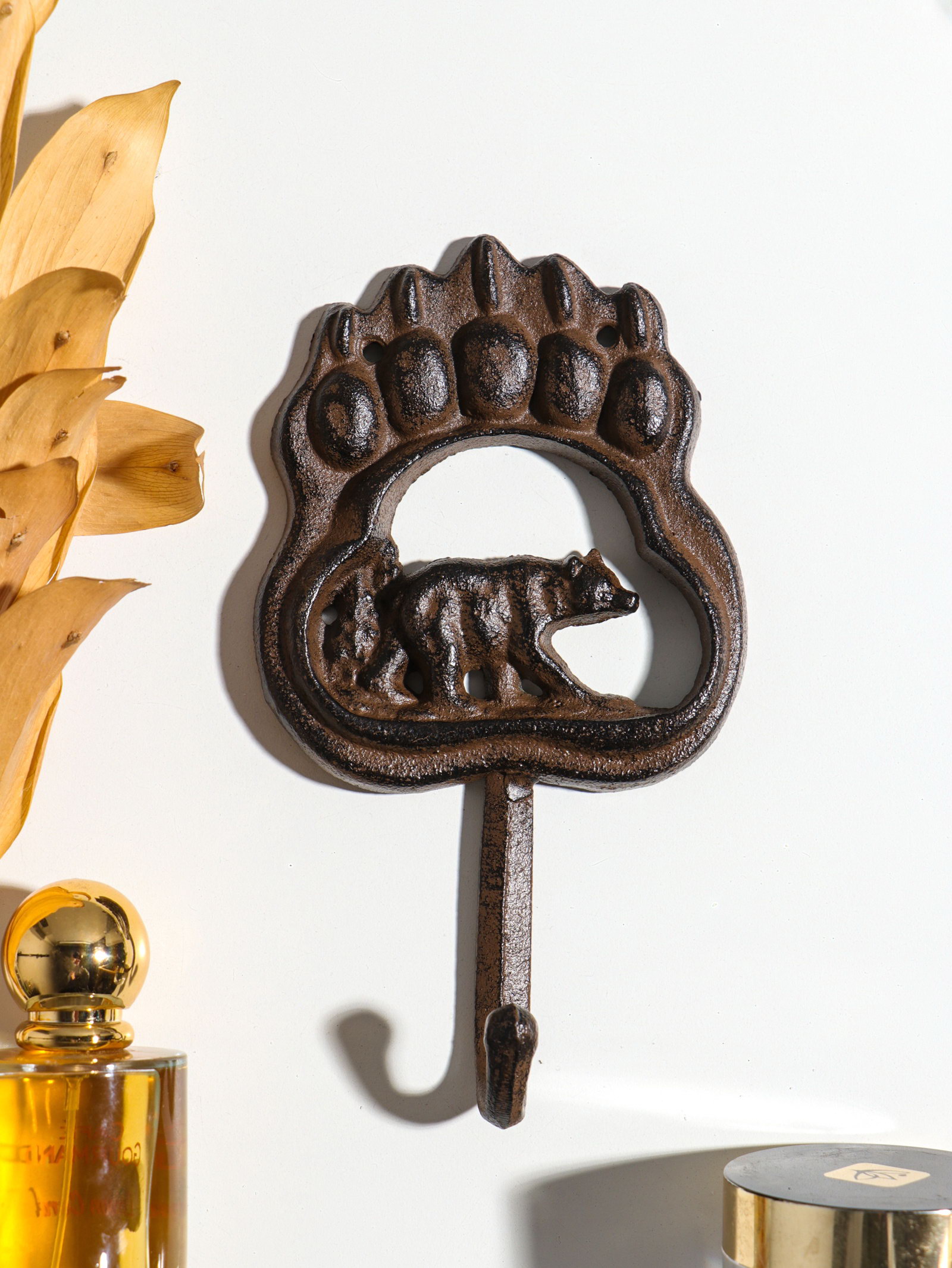 Крючок настенный "След медведя и медведь", ключница декоративная, чугун, 18.5x10.5x3.5 см, 10.5x18.5x3.5 см., Китай