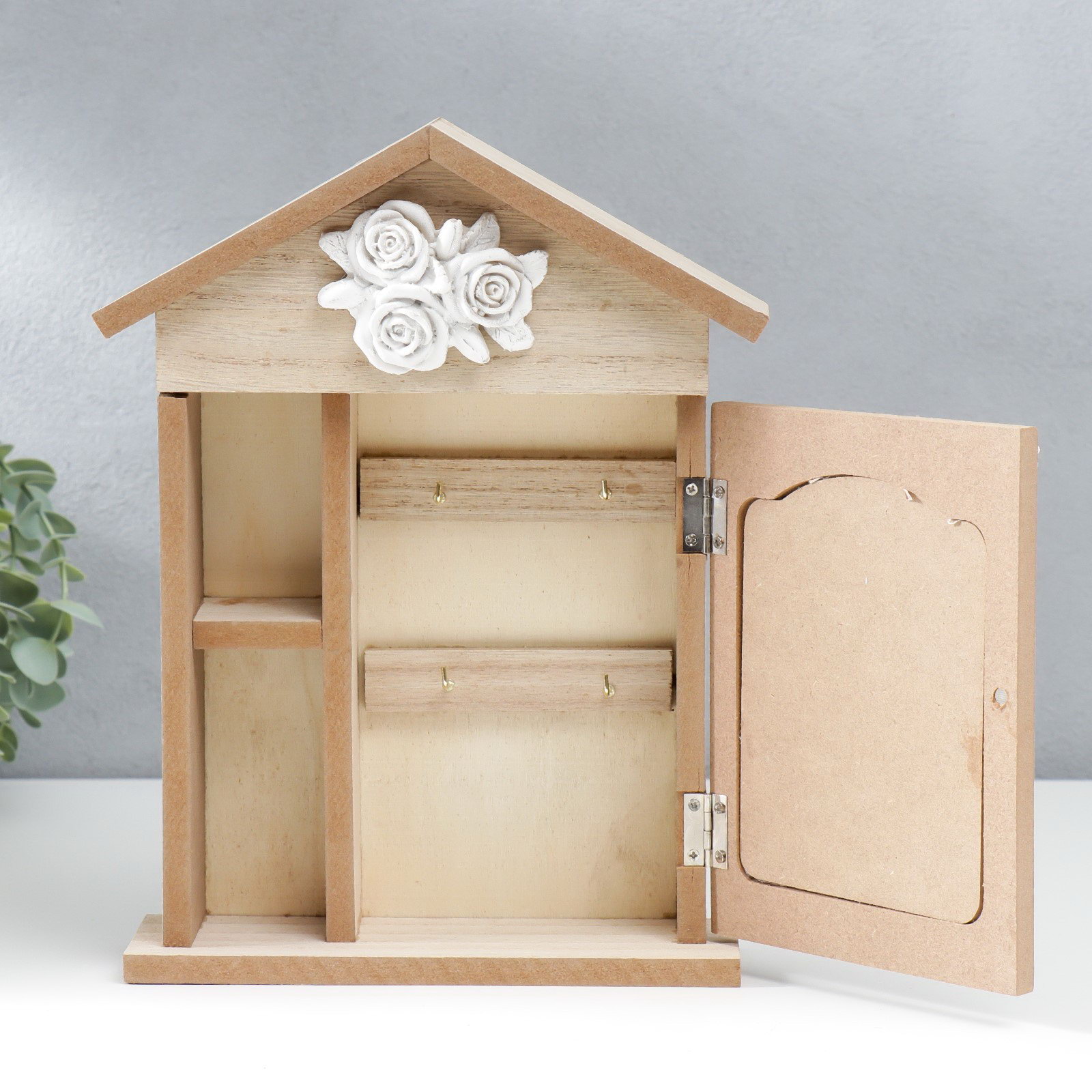 Ключница настенная "Фиалки в горшочке", панно, дерево, 4 крючка, 26.5x19x6 см, 19x6x26.5 см., Китай