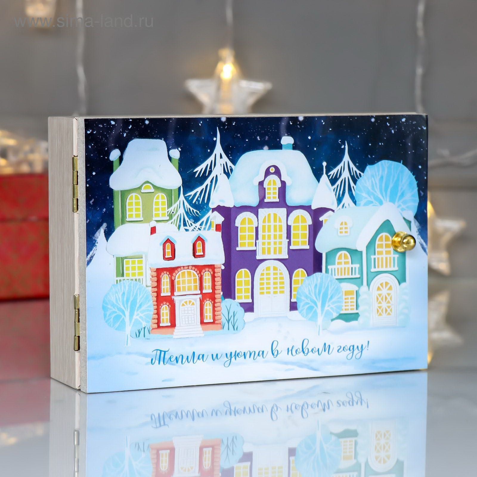 Ключница настенная "Новогодние домики, ночь", панно декоративное, 17x12 см, Россия