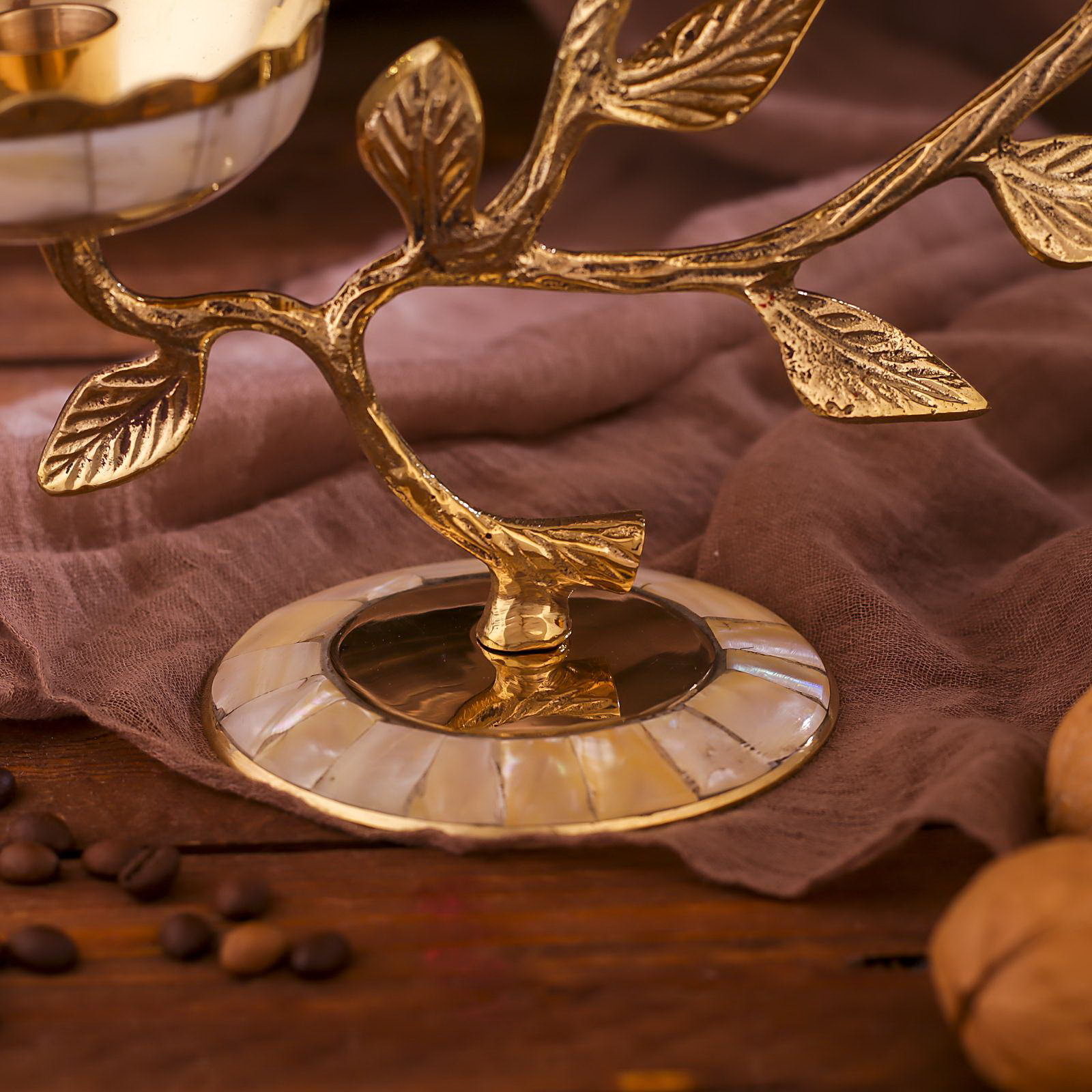 Подсвечник на 3 свечи "Три бутона", 25.5x10x18.5 см, латунь, с перламутром, 16x10x27 см., Индия