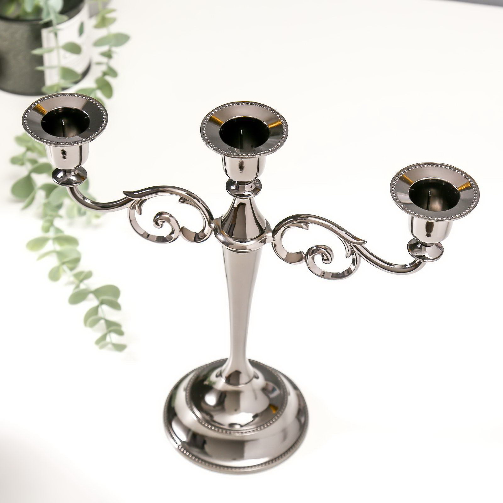 Металлический подсвечник на 3 свечи "Канделябр. Лаконичность", чёрный хром, 25.5x27x10 см, 27x10x25.5 см., Китай