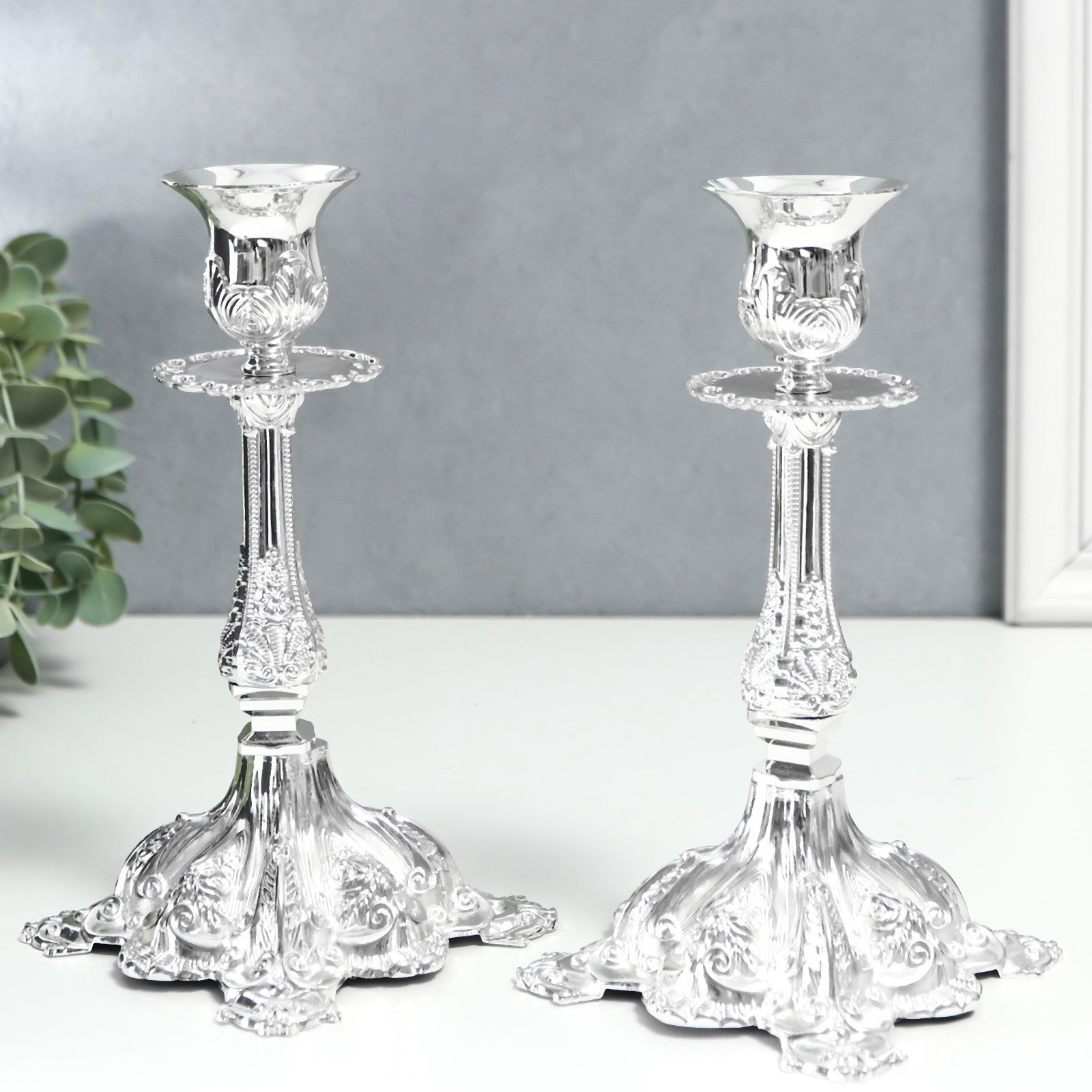 Набор подсвечников на 1 свечу "Людвиг", 2 шт., металл под серебро, 19x10x10 см, 10x10x19 см., Китай