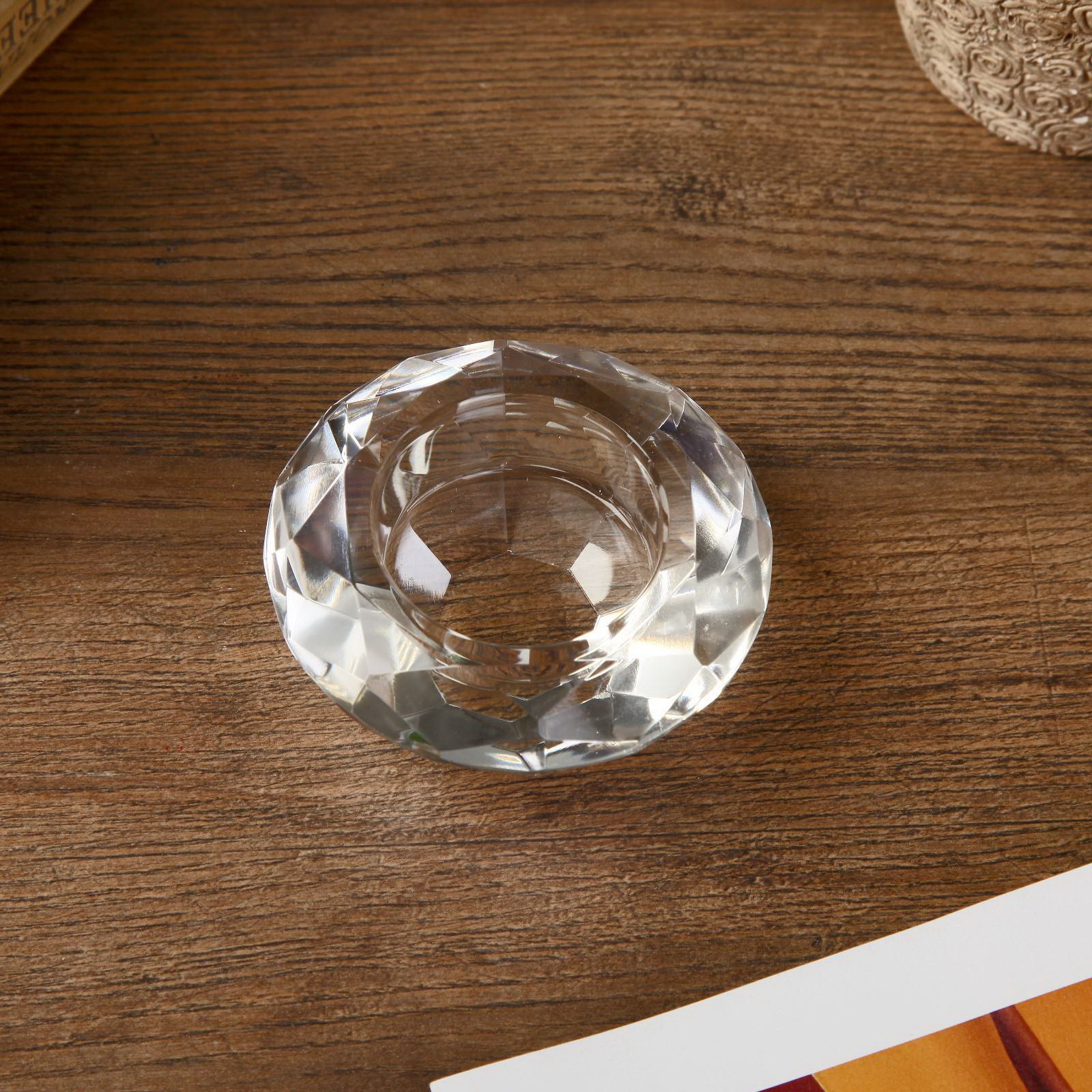Стеклянный подсвечник на 1 свечу "Кристалл круг", прозрачный, 3.7x7.5x7.5 см, 7.5x7.5x3.7 см., Китай
