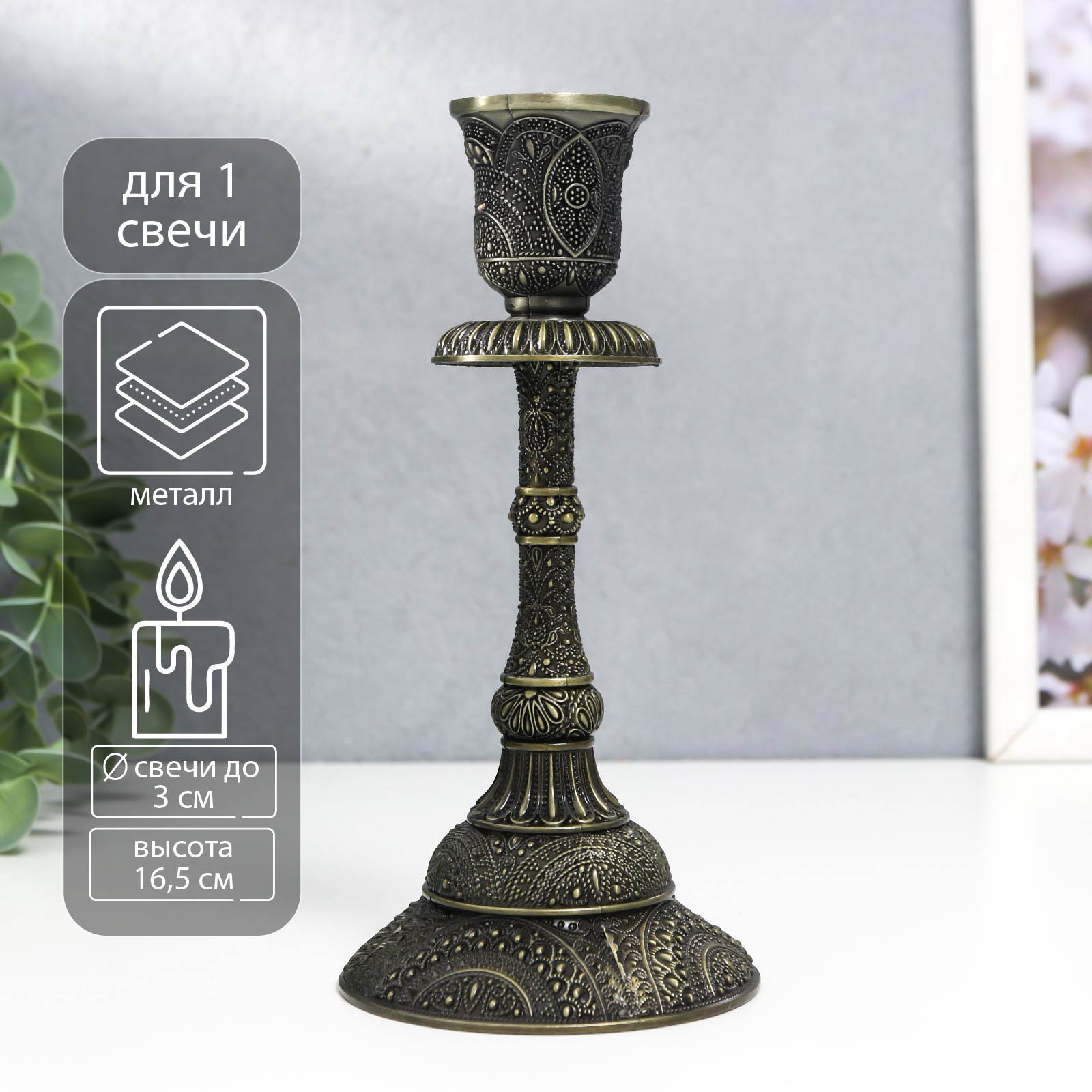 Металлический подсвечник на 1 свечу "Раджа", бронза, 16.5x8x8 см, 8x8x16.5 см., Китай