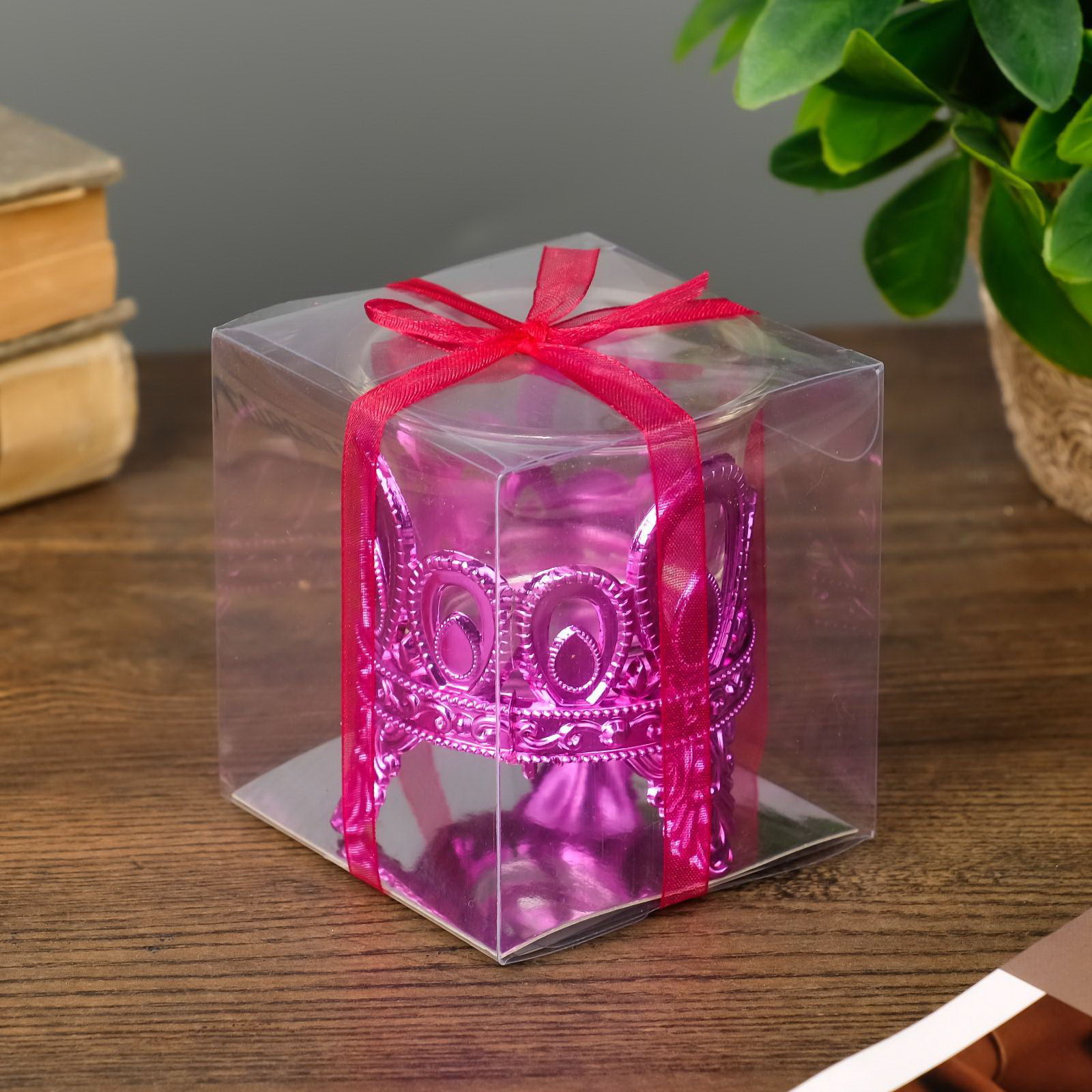 Подсвечник на 1 свечу "Капельки", пластик, стекло, розовый, 7x6x6 см, 6x6x7 см., Китай