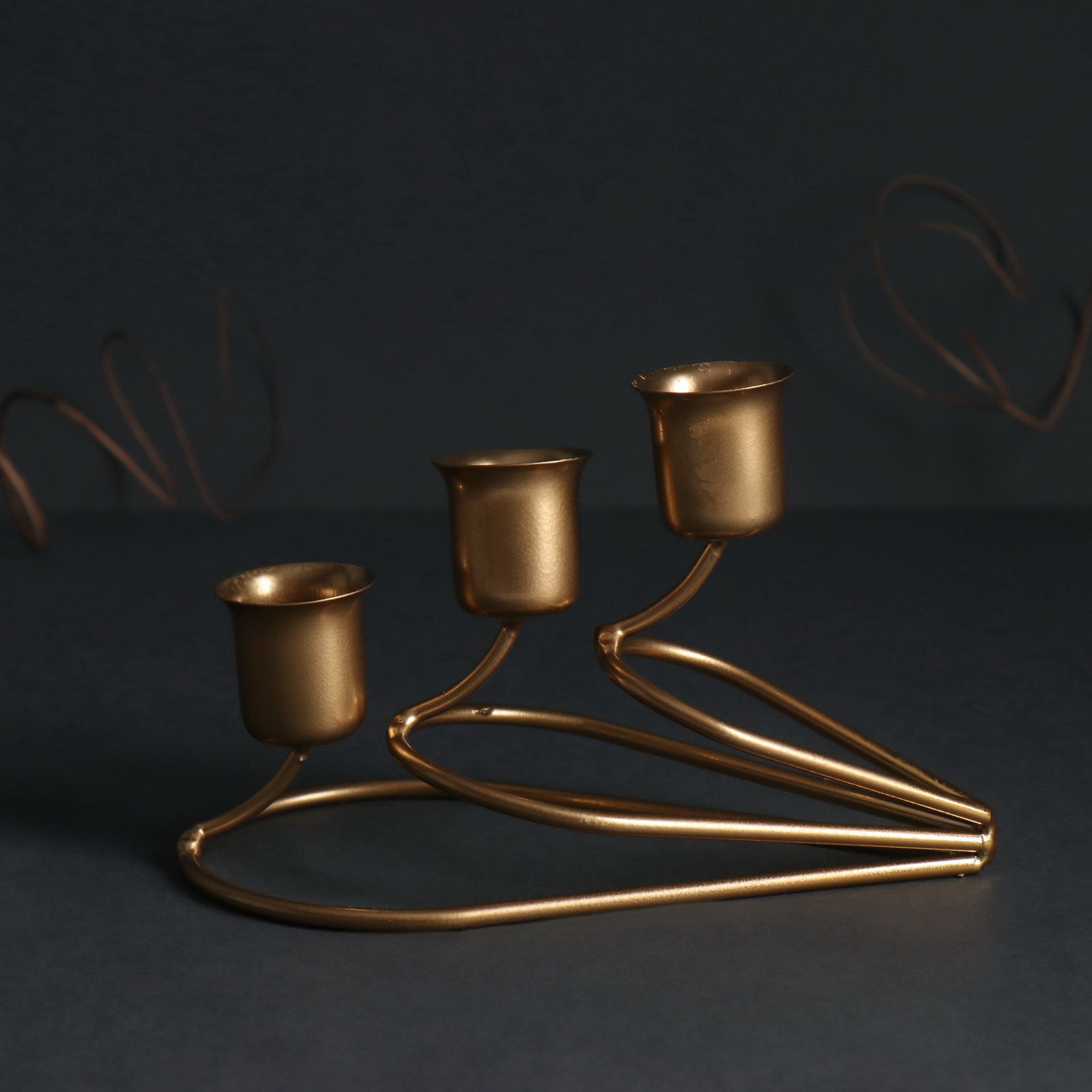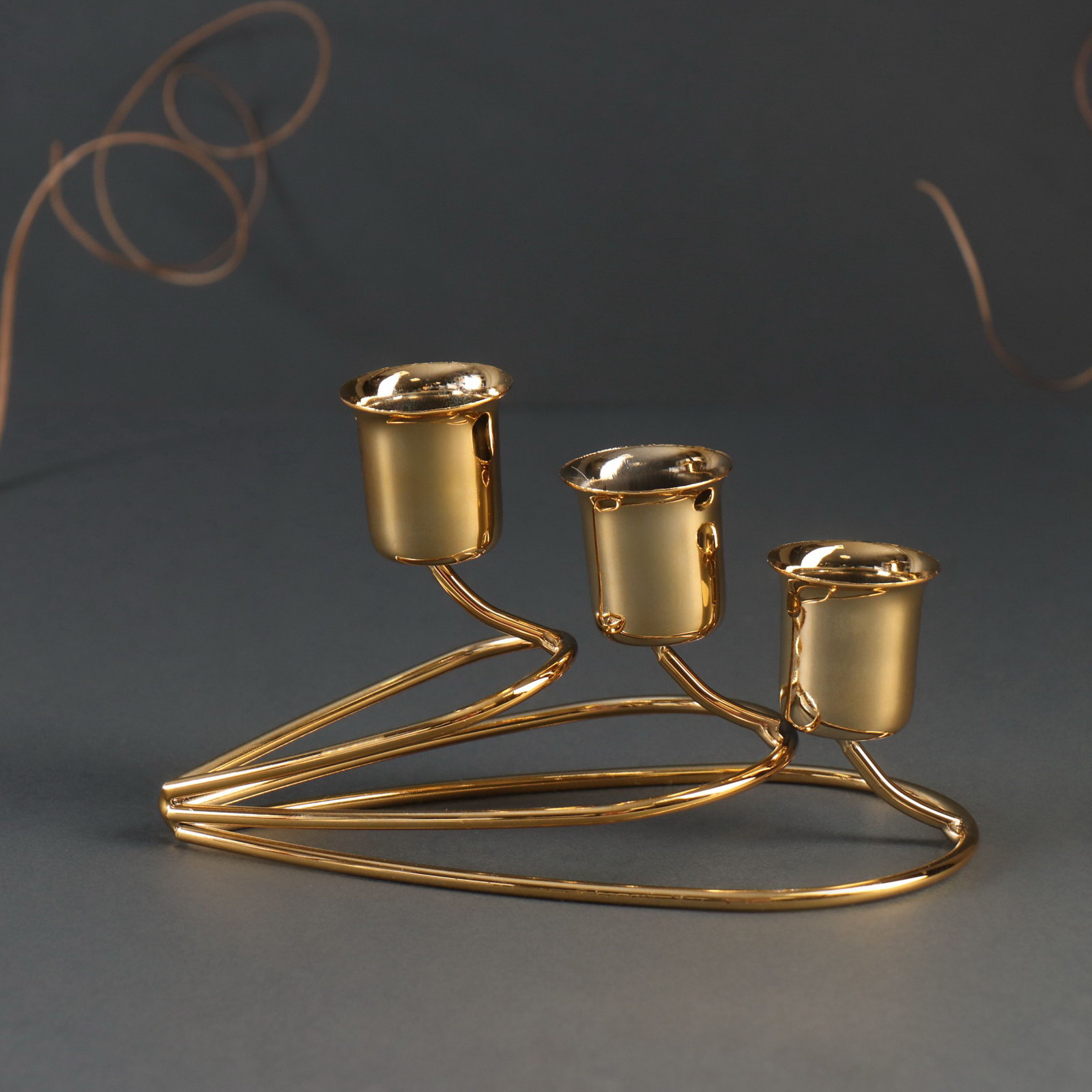 Металлический подсвечник на 3 свечи "Капли", золото, 14x8x8 см, 9x15x9 см., Китай